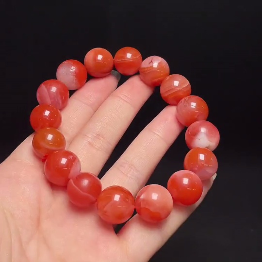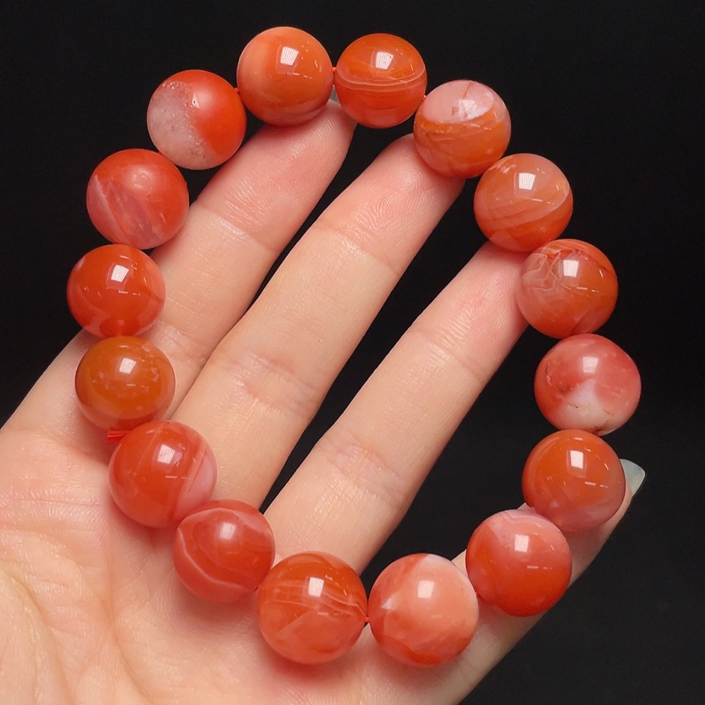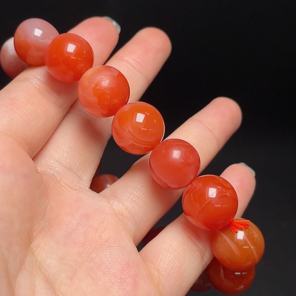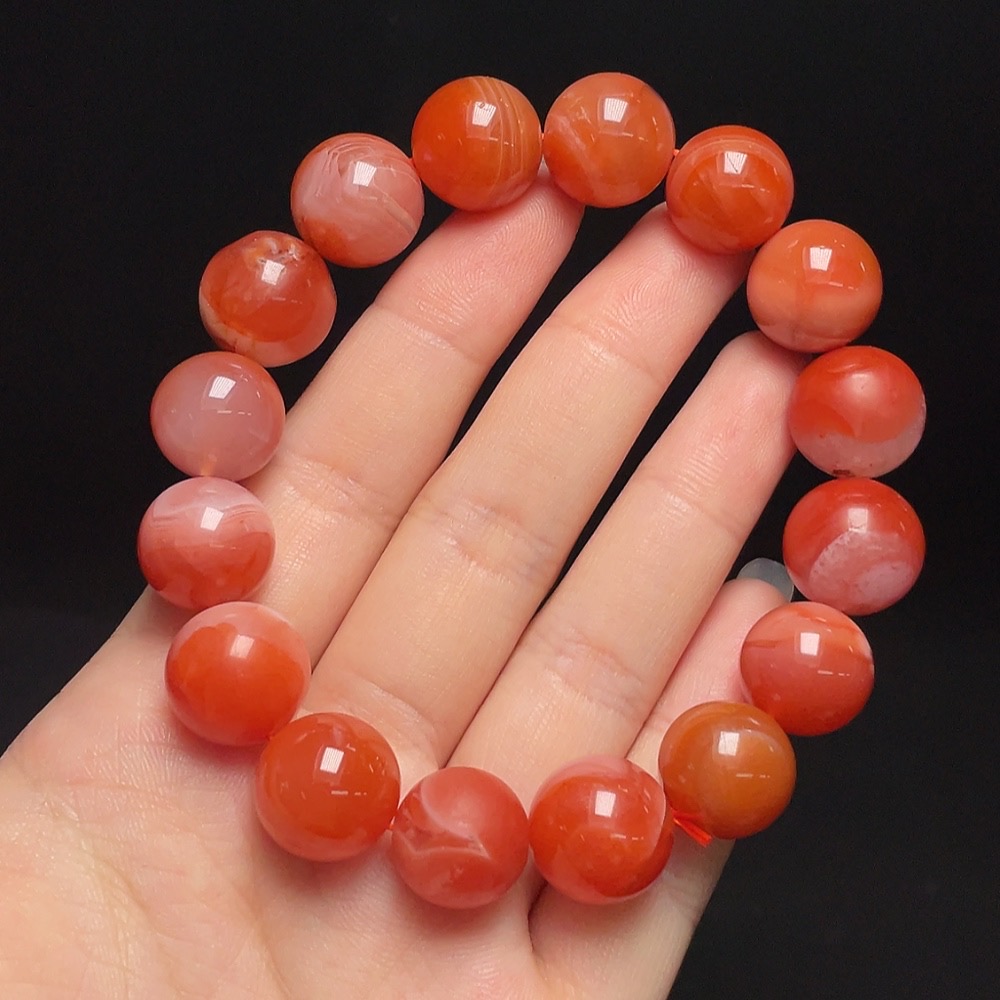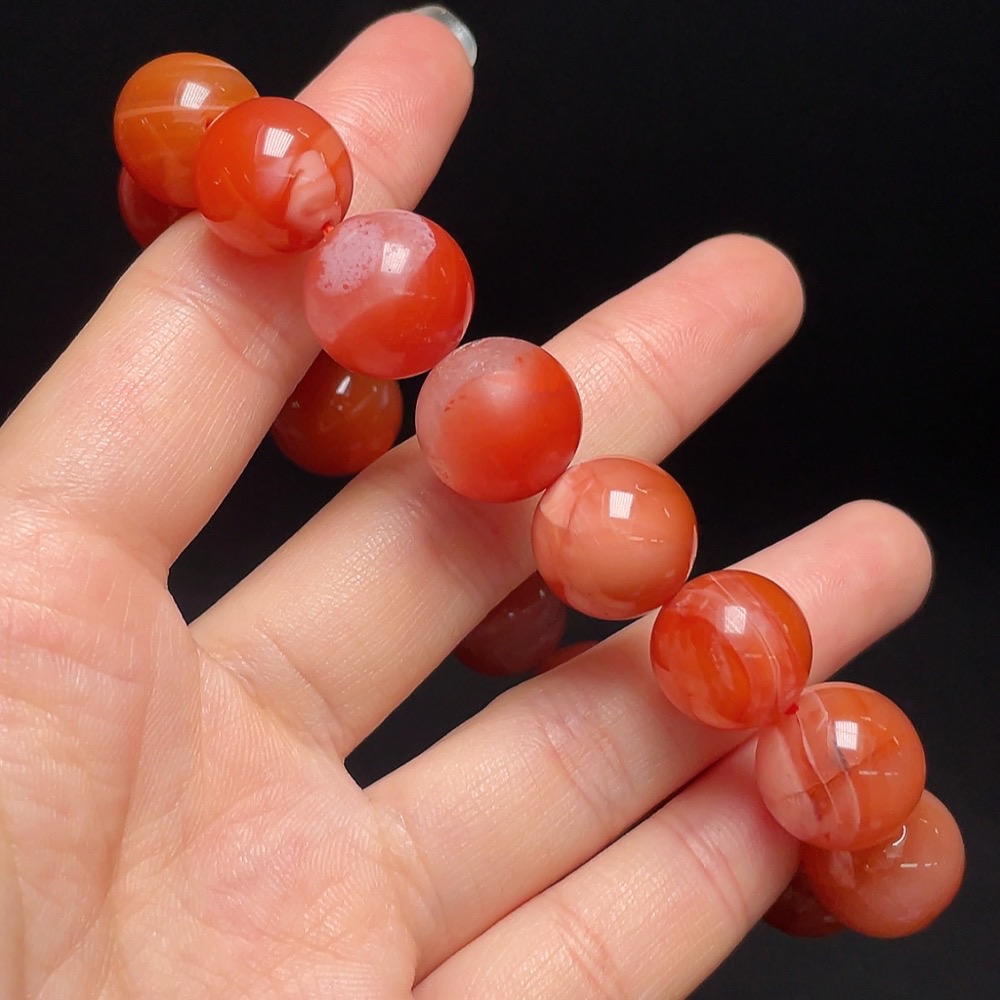Red Agate Bracelet with Visible Organic Matter, Total Weight Approx. 54.2g, Size About 13.4mm