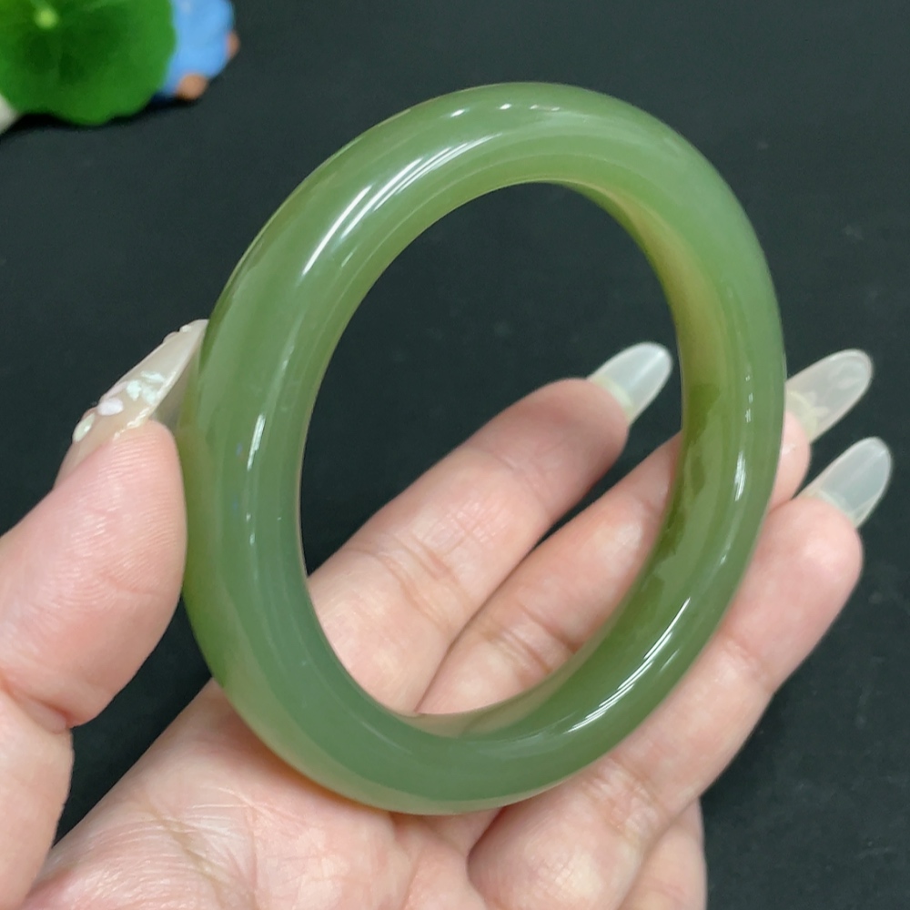 Hetian Jade Round Bracelet, Size 58.9, Total Weight Approx. 67.2g