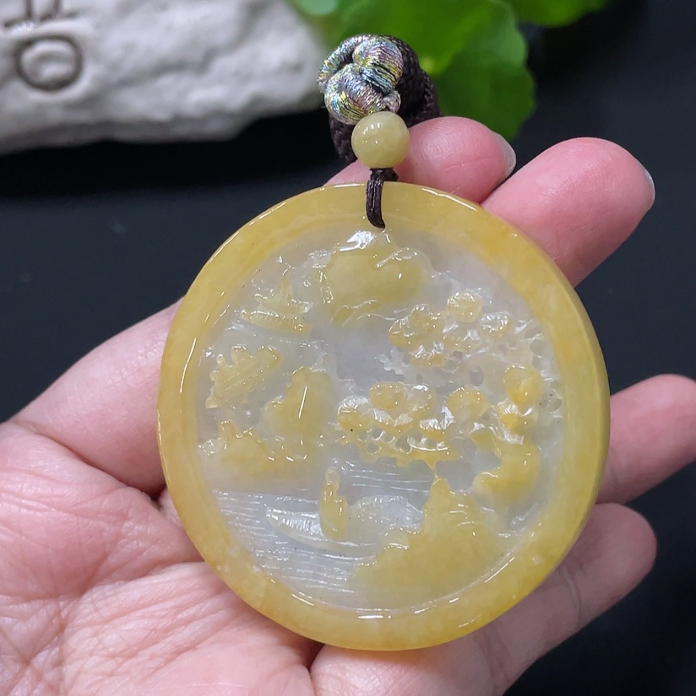 Jadeite Landscape Pendant, Total Weight Approx. 39.42g, Color Origin Undetermined
