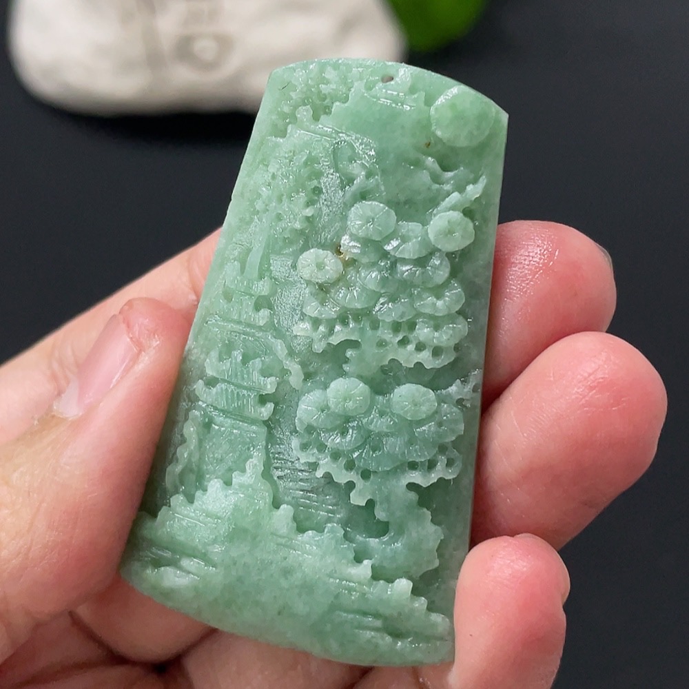 Jadeite Rough Landscape Pendant Total Weight Approx. 17.93g