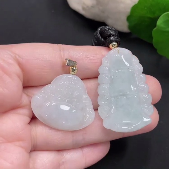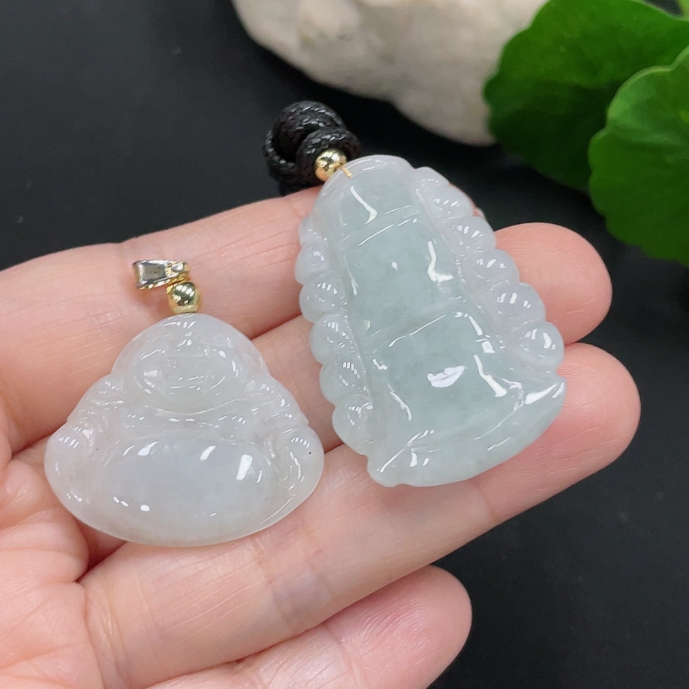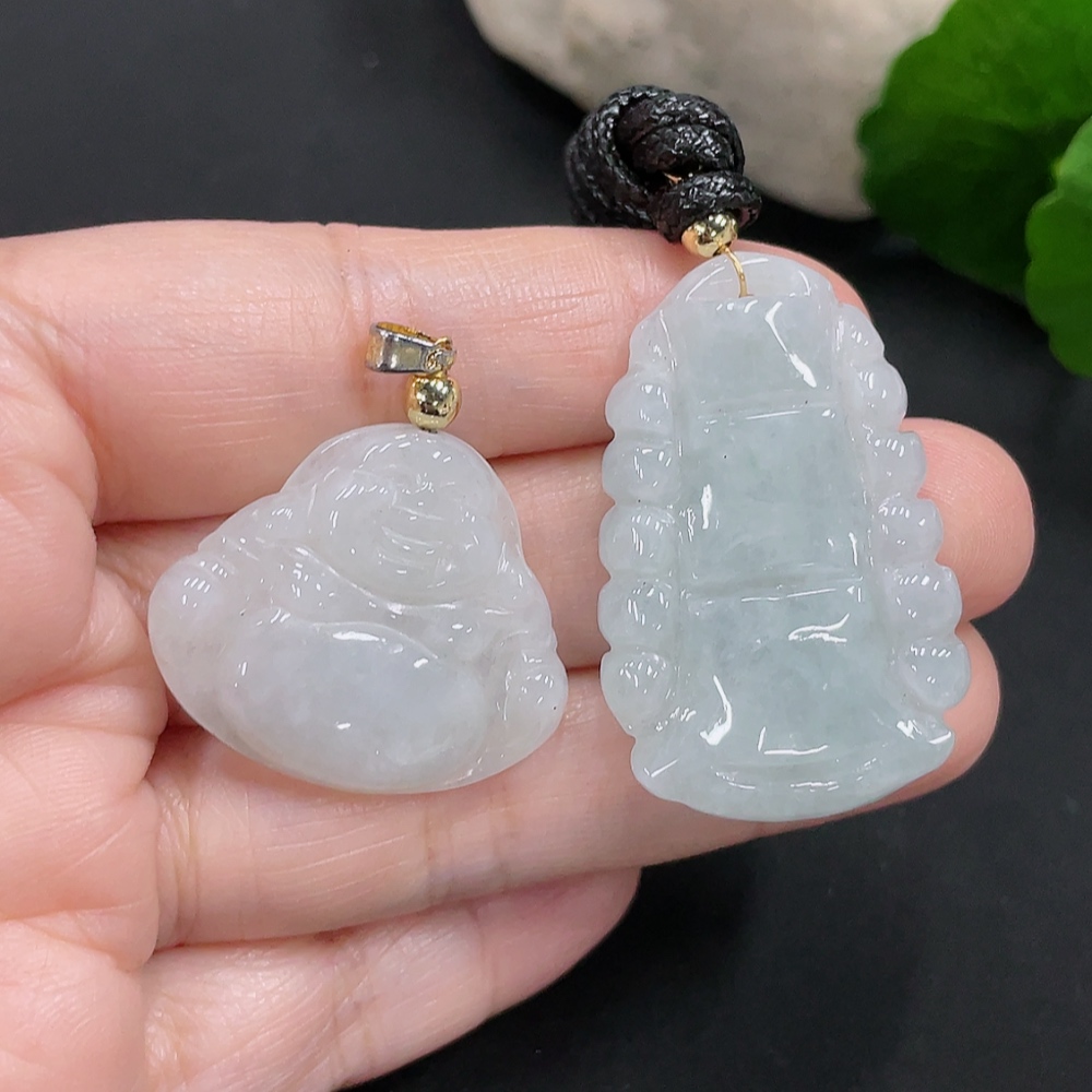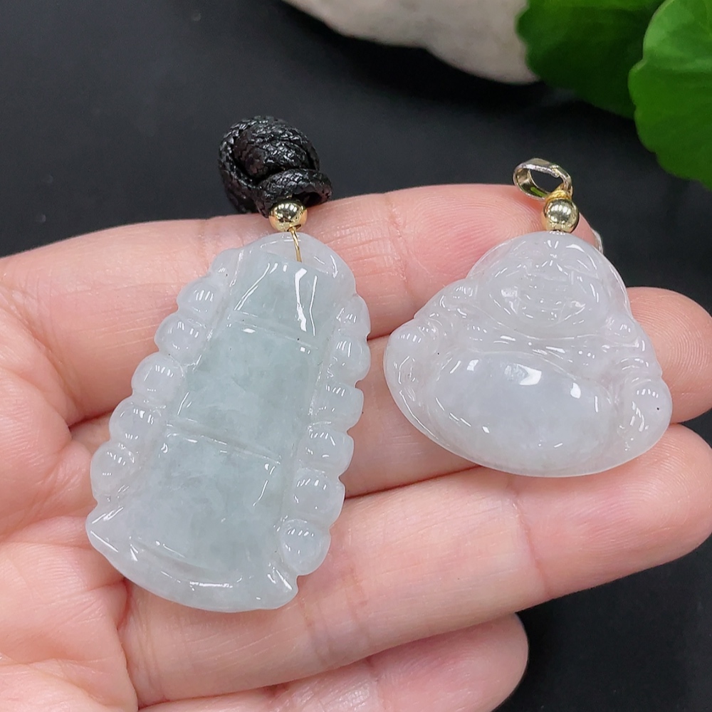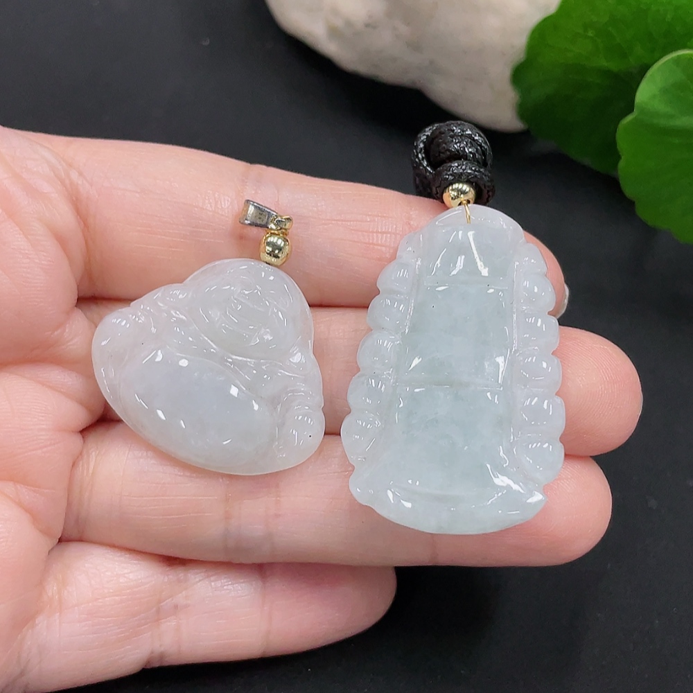 Jadeite Pendants Sell as a Lot Non-Gold Clasp