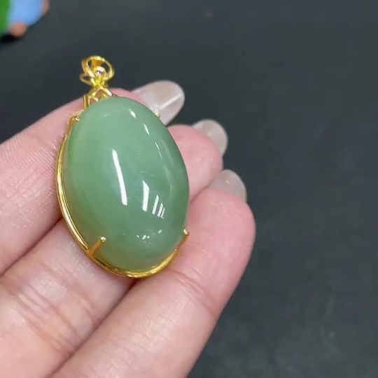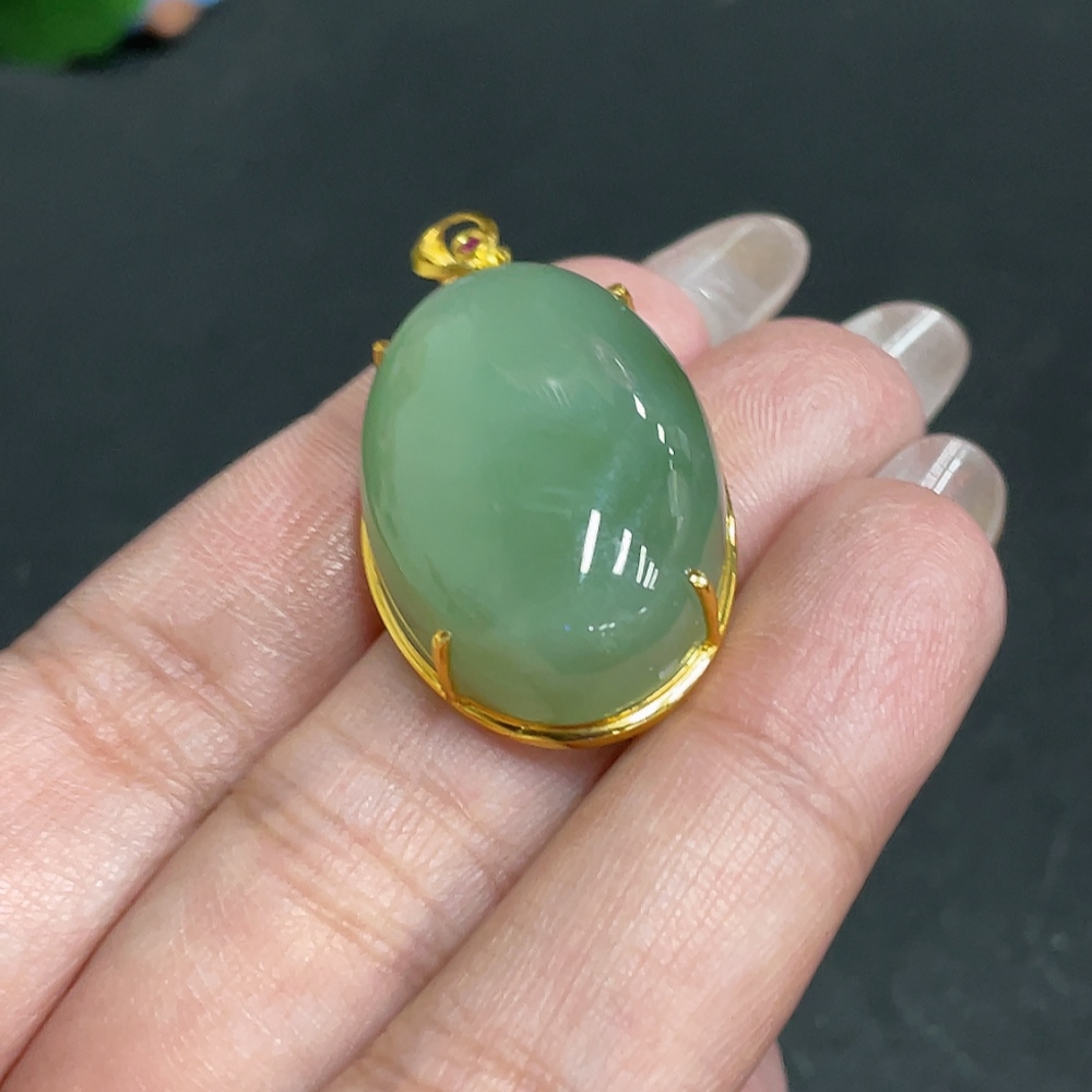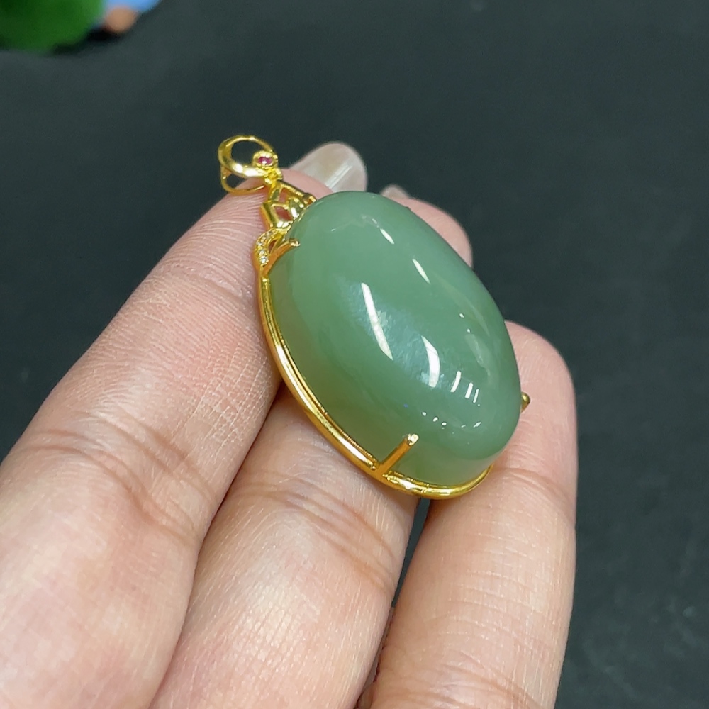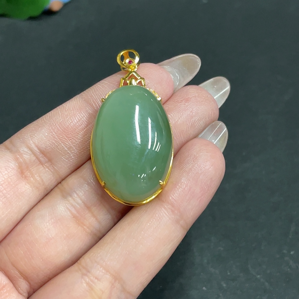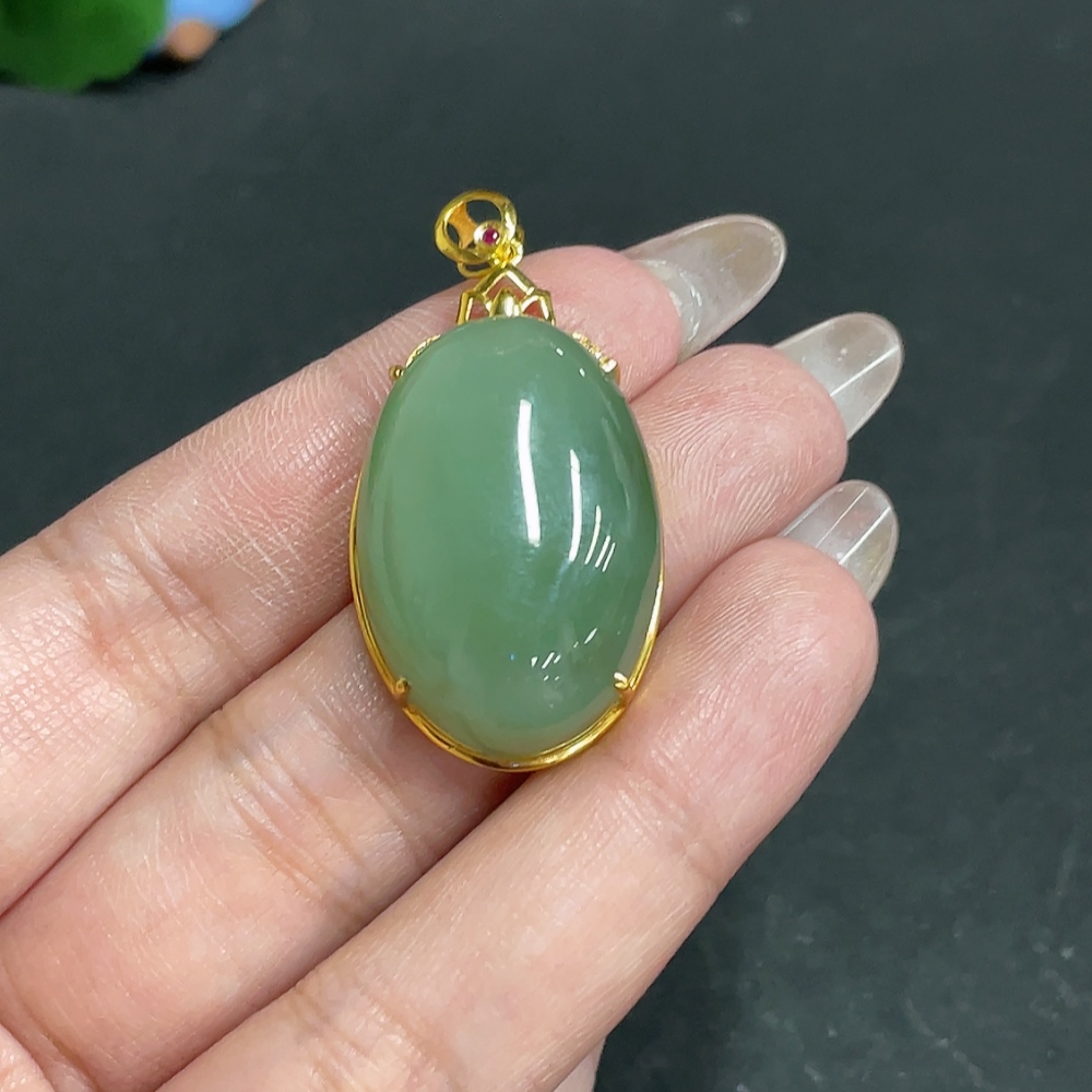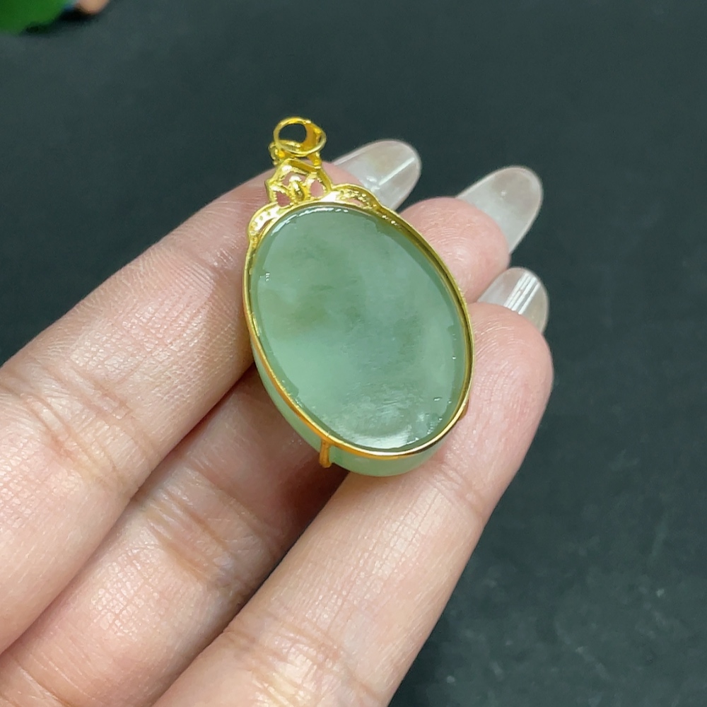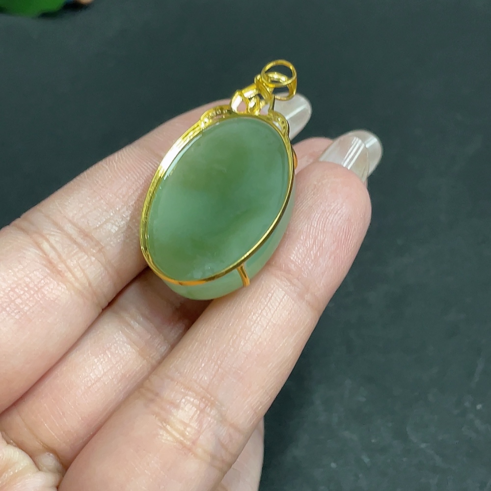 Hetian Jade Inlaid Pendant Cabochon 18k Total Weight Approx. 12g