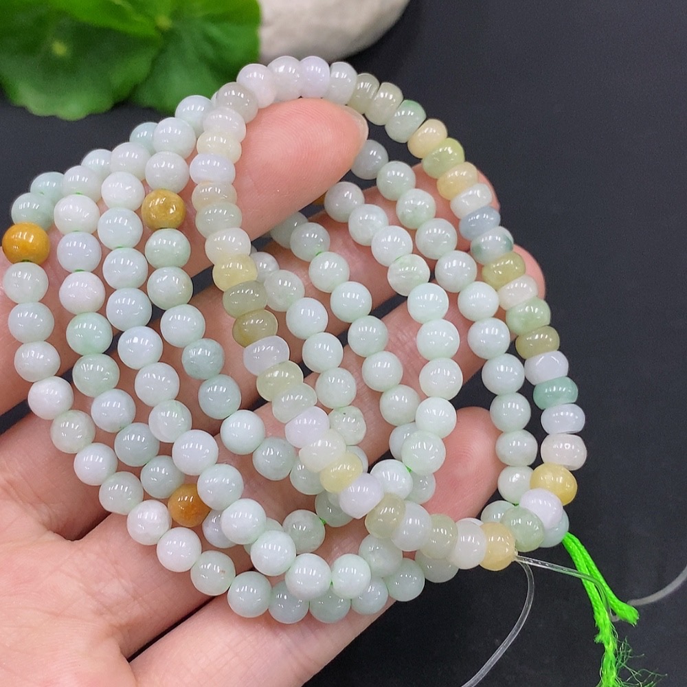 Jadeite Bead Necklace + Bracelet, Color Origin Undetermined