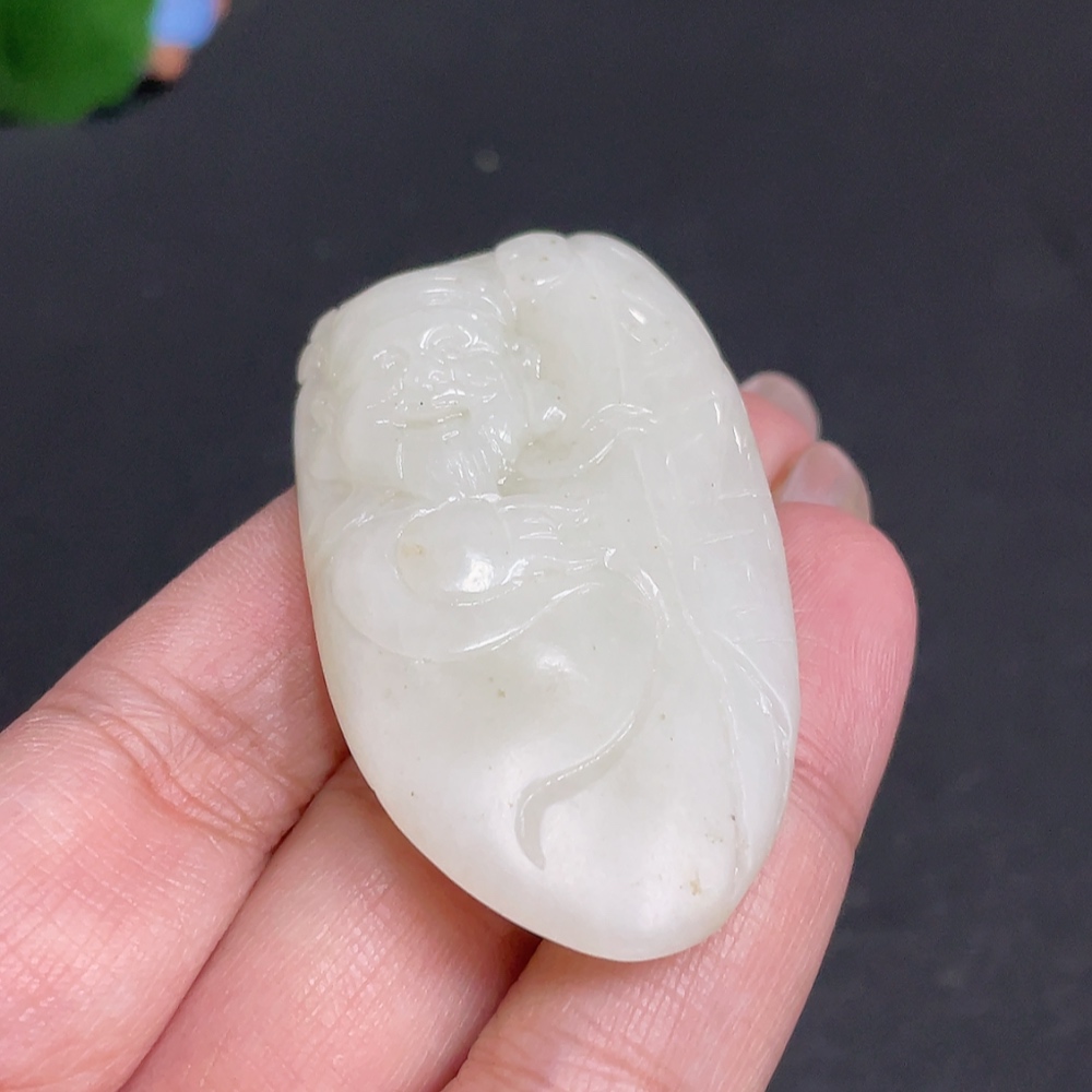 Hetian Jade Pendant God of Wealth Undetermined Skin Color Cause Total Weight About 27.5g