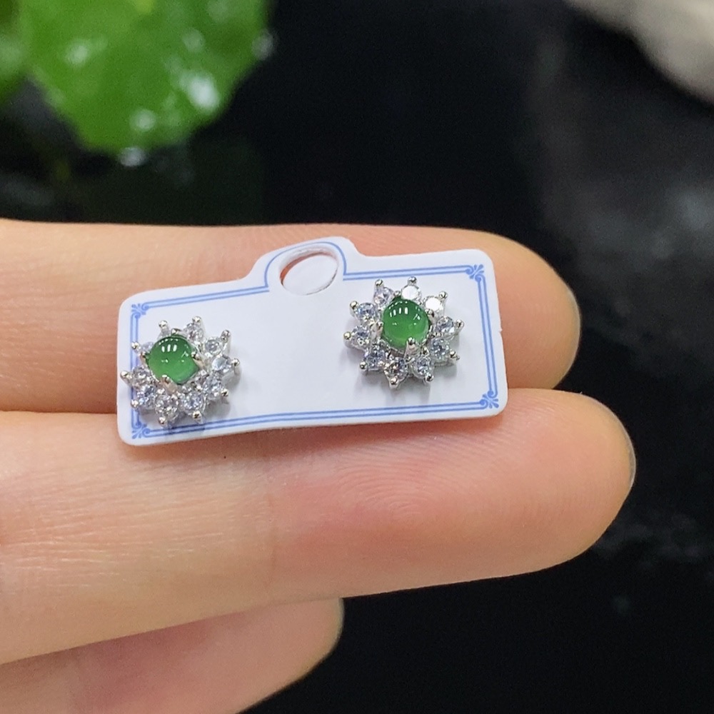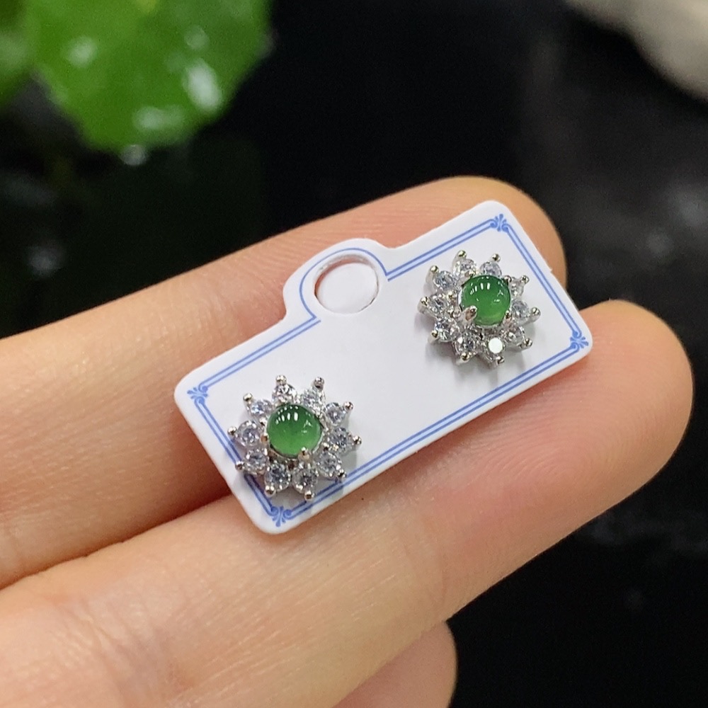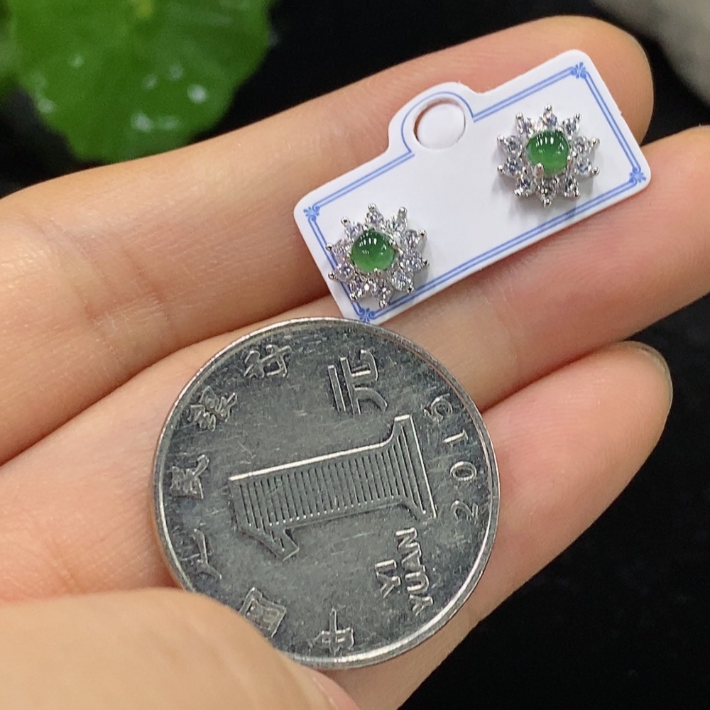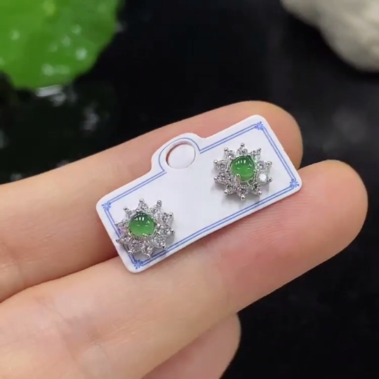 Jadeite Inlaid Earrings Non-Gold Total Weight Approx. g