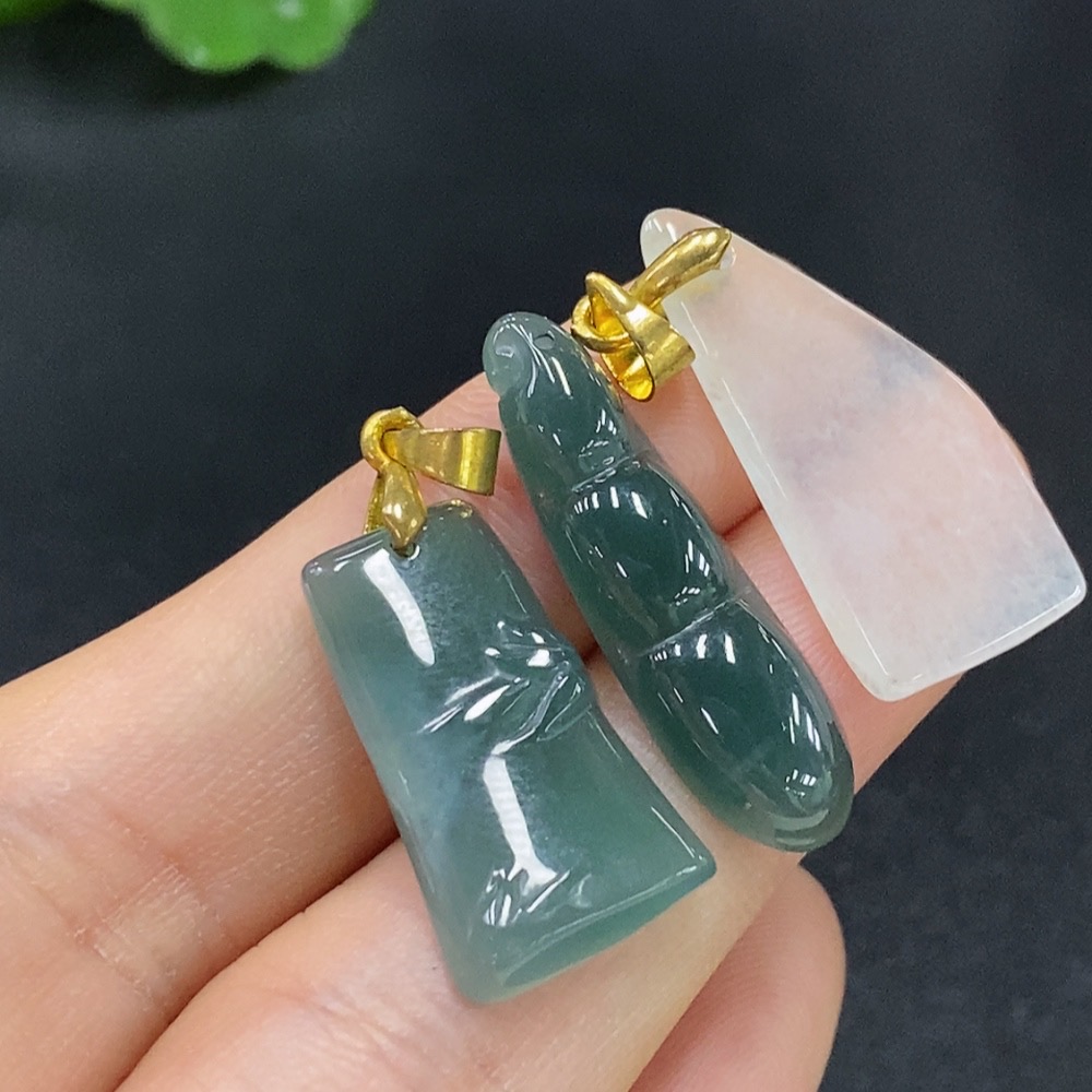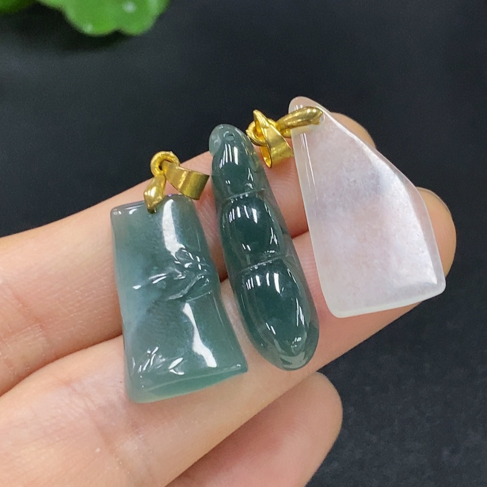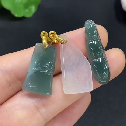 Jadeite Pendants Sell as a Lot Non-Gold Clasp