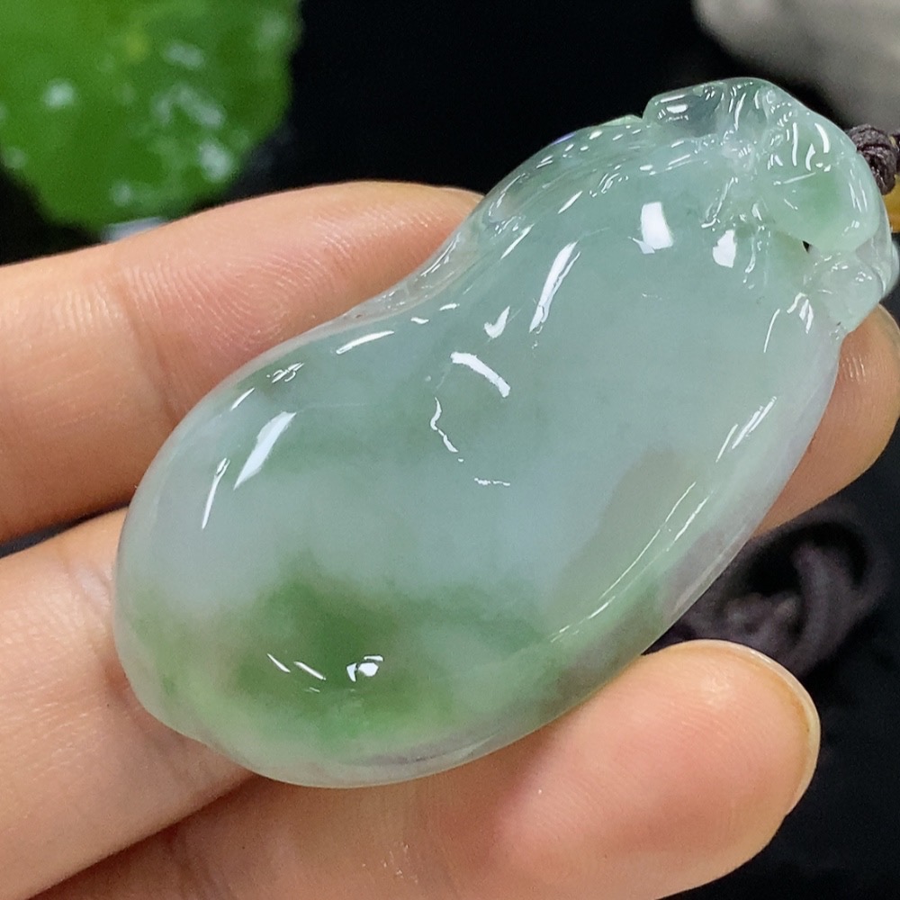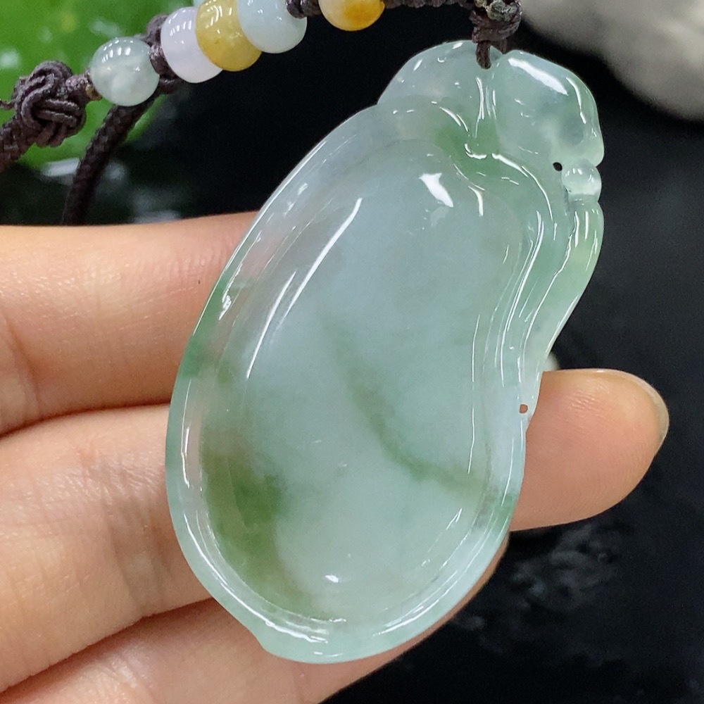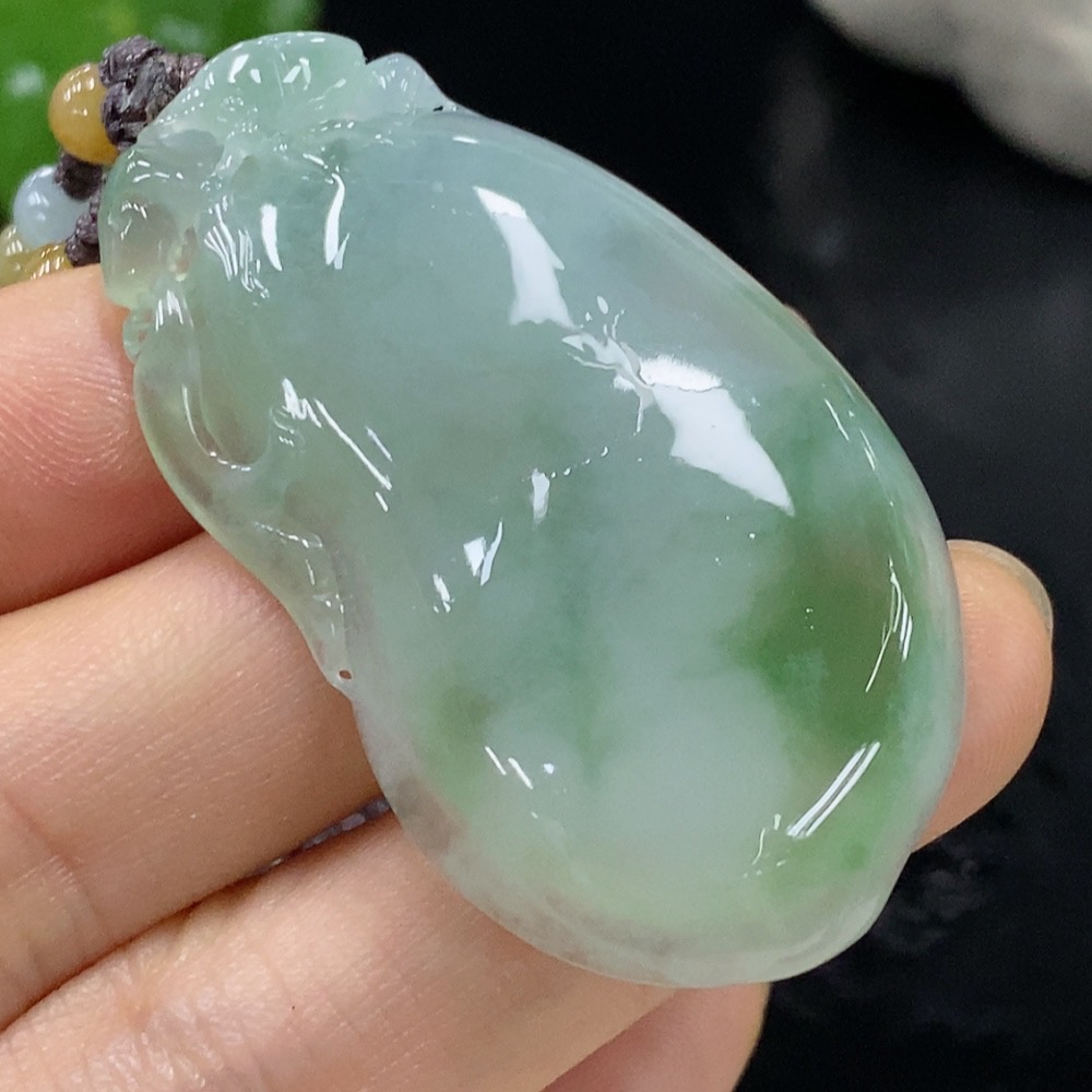 Jadeite Auspicious Gourd Pendant with a total weight of approximately 23.95 grams (including rope weight)