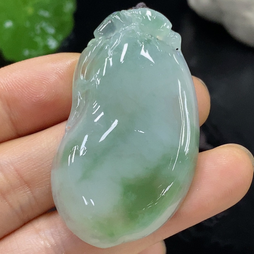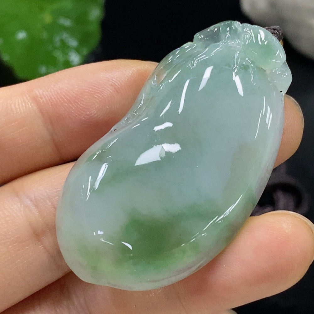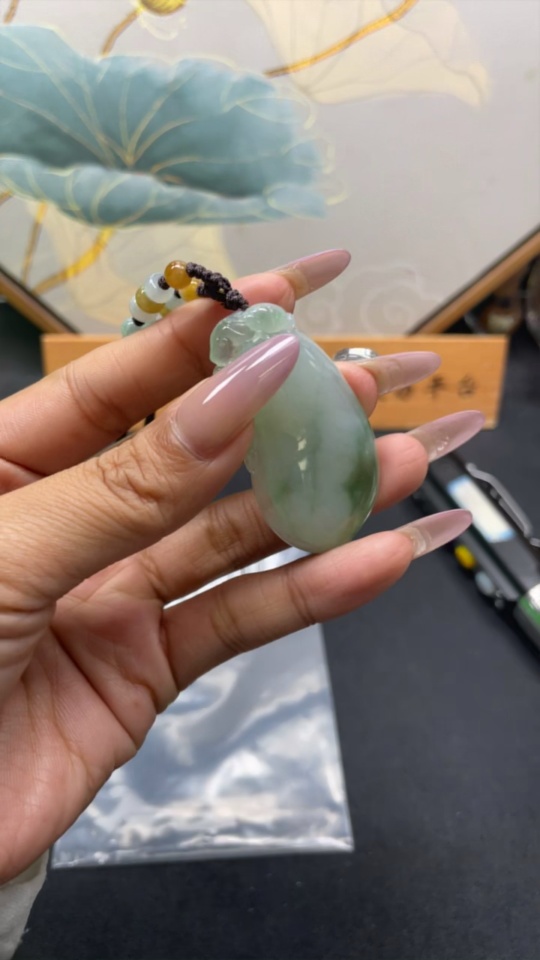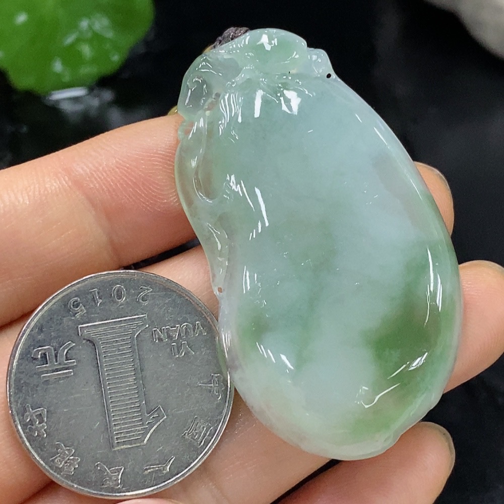 Jadeite Auspicious Gourd Pendant with a total weight of approximately 23.95 grams (including rope weight)