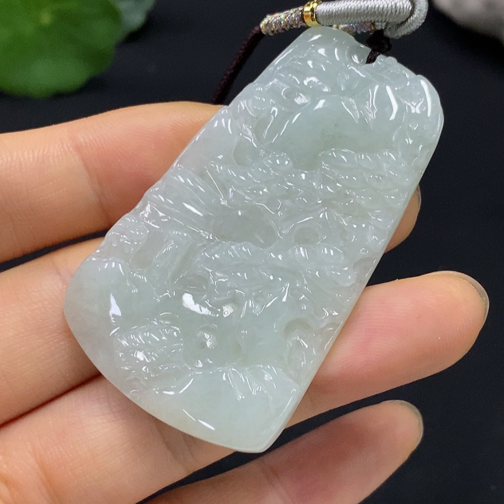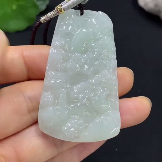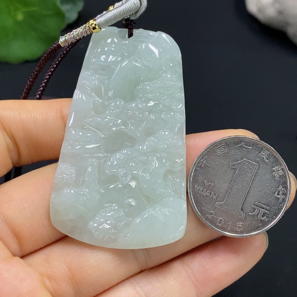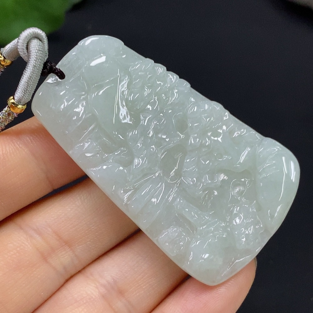 Jadeite Landscape Pendant Total Weight Approximately 22.06g (Including Cord Weight)