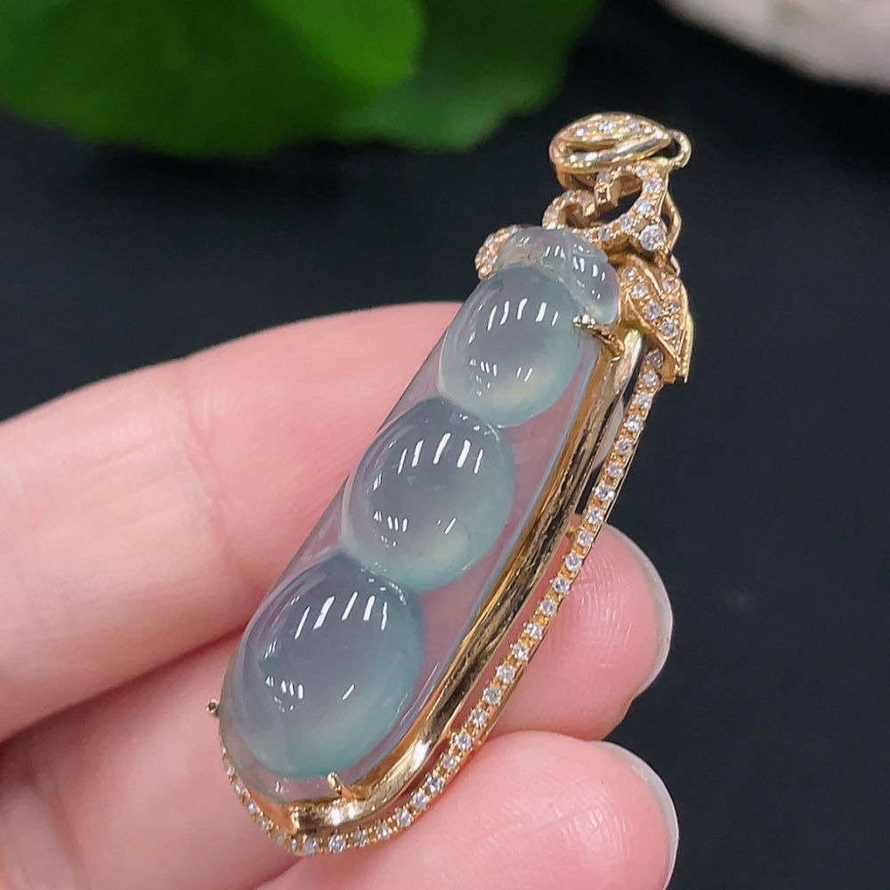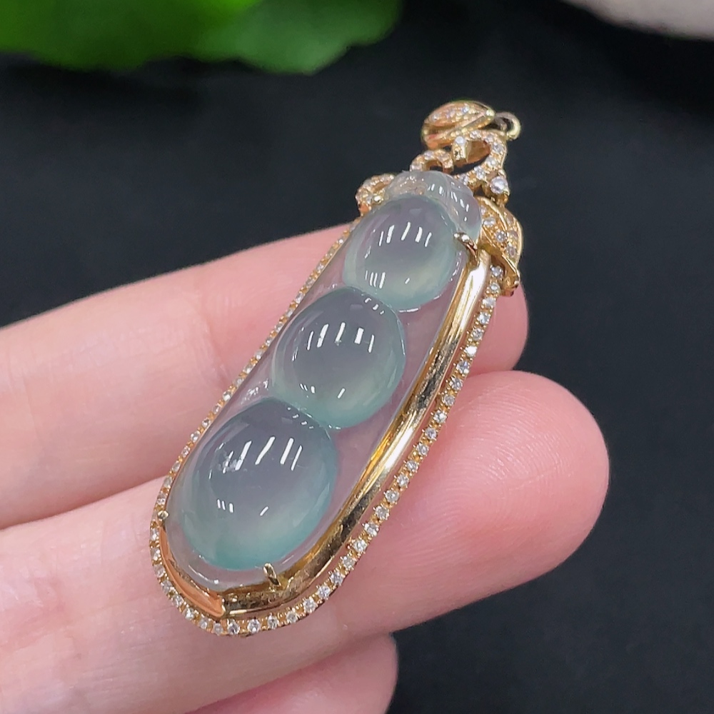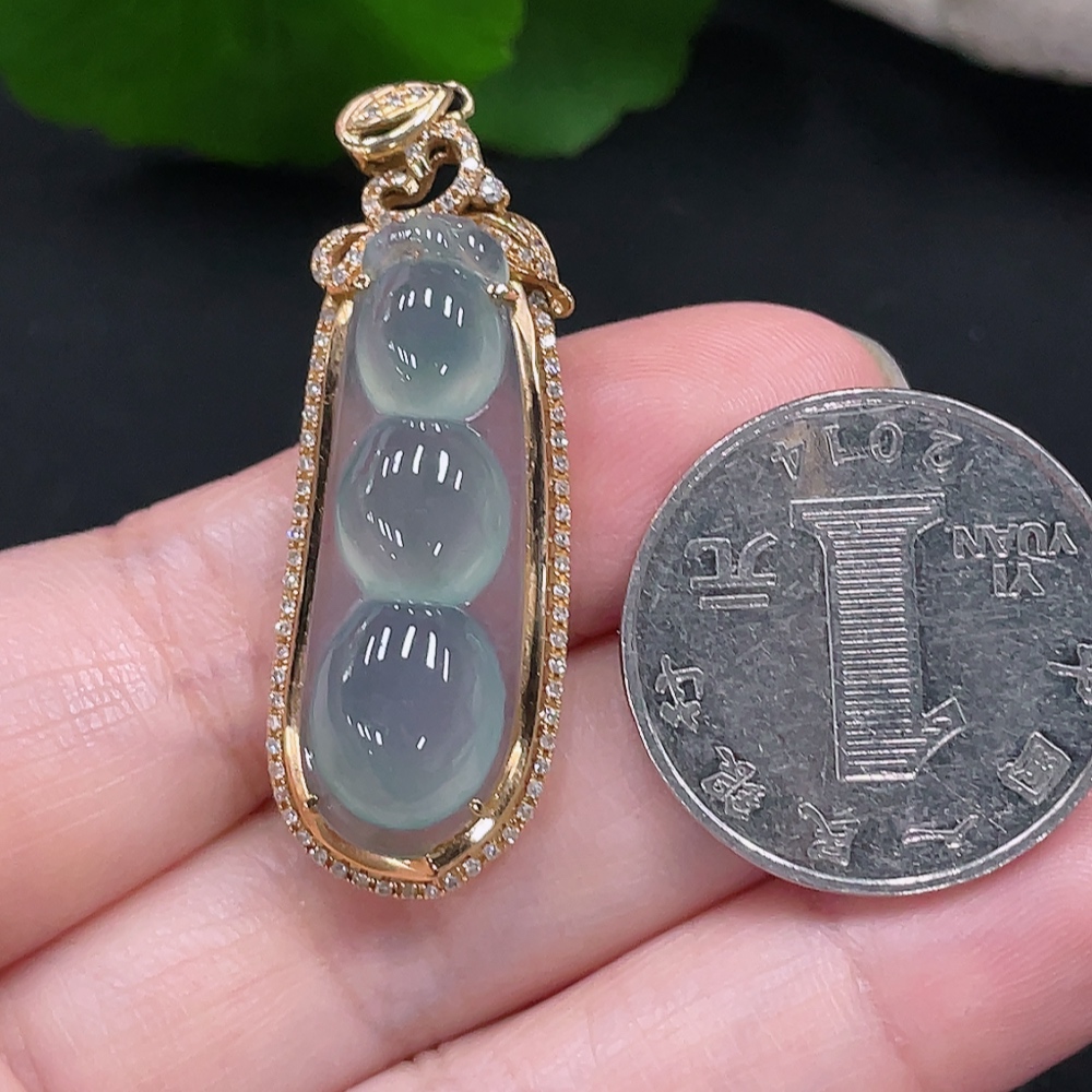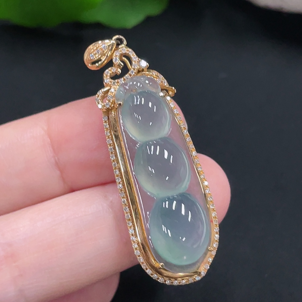Jadeite Lucky Bean Pendant with 18K Gold Setting, Total Weight Approximately 5.9g