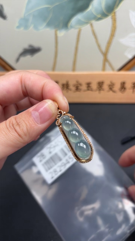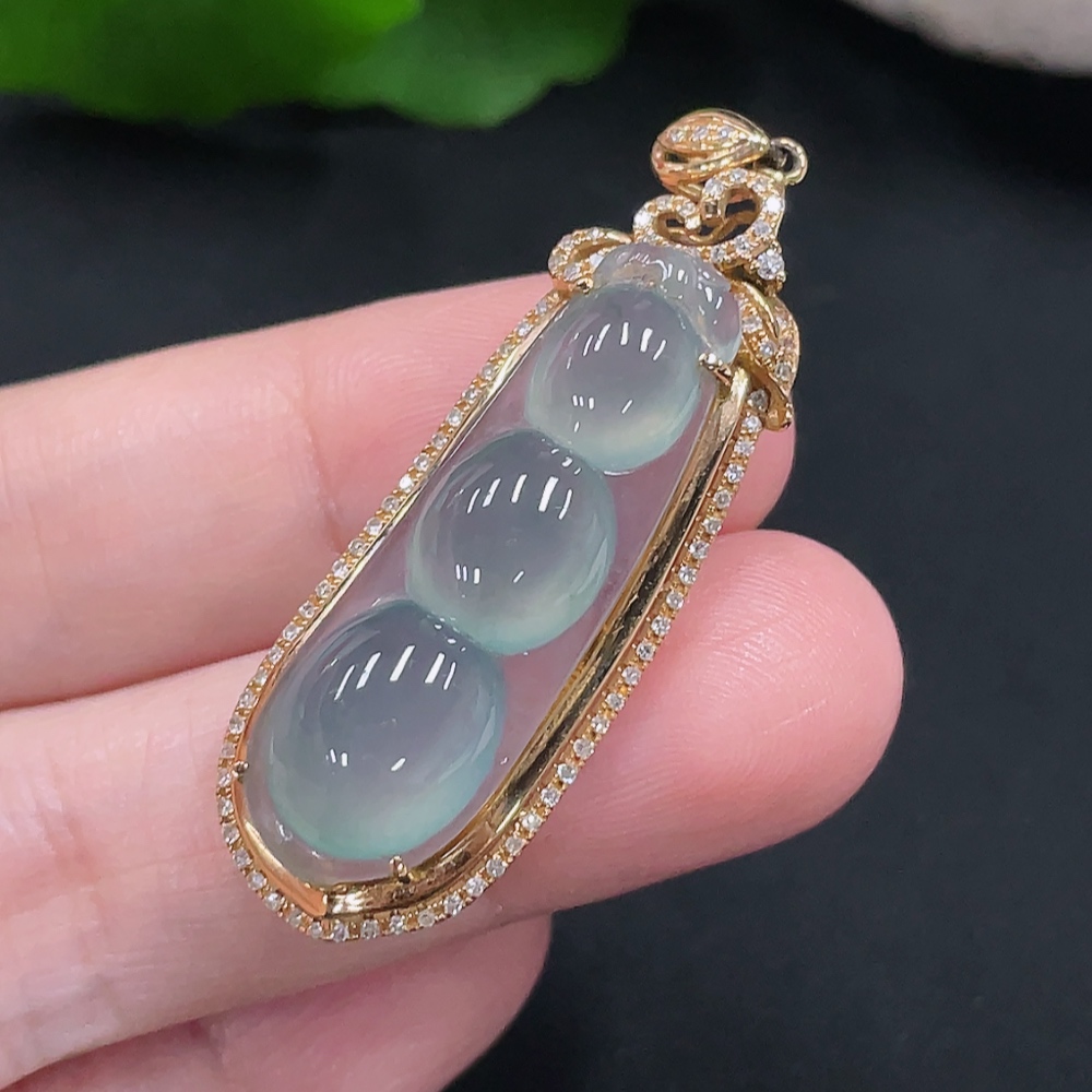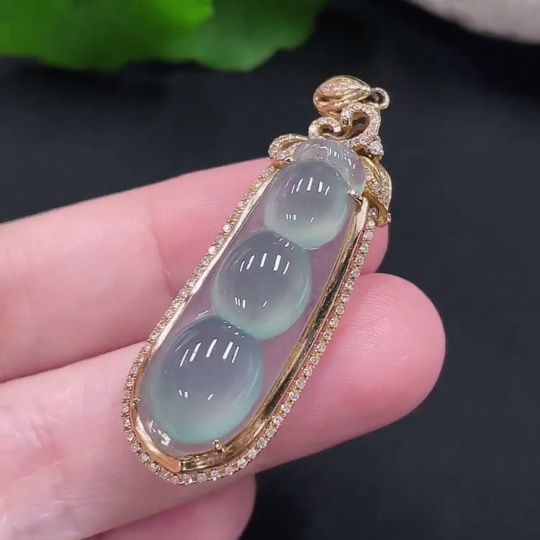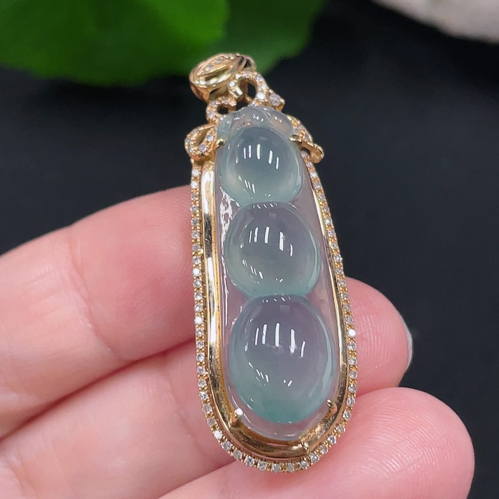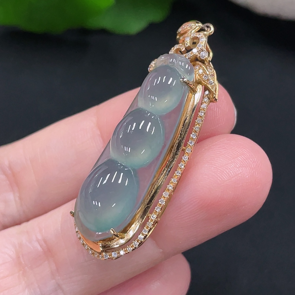 Jadeite Lucky Bean Pendant with 18K Gold Setting, Total Weight Approximately 5.9g