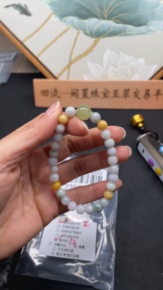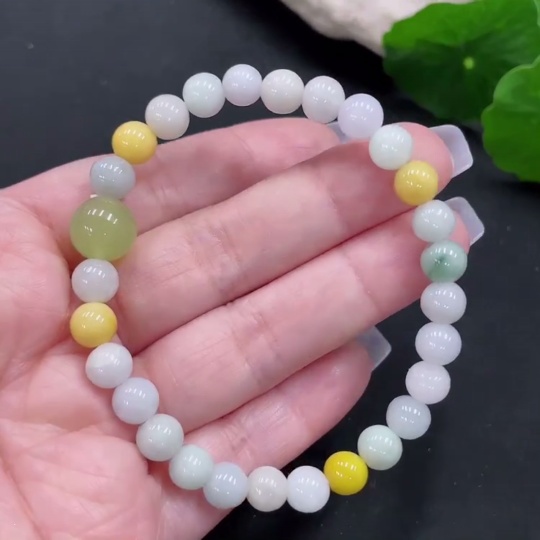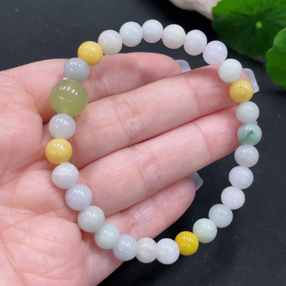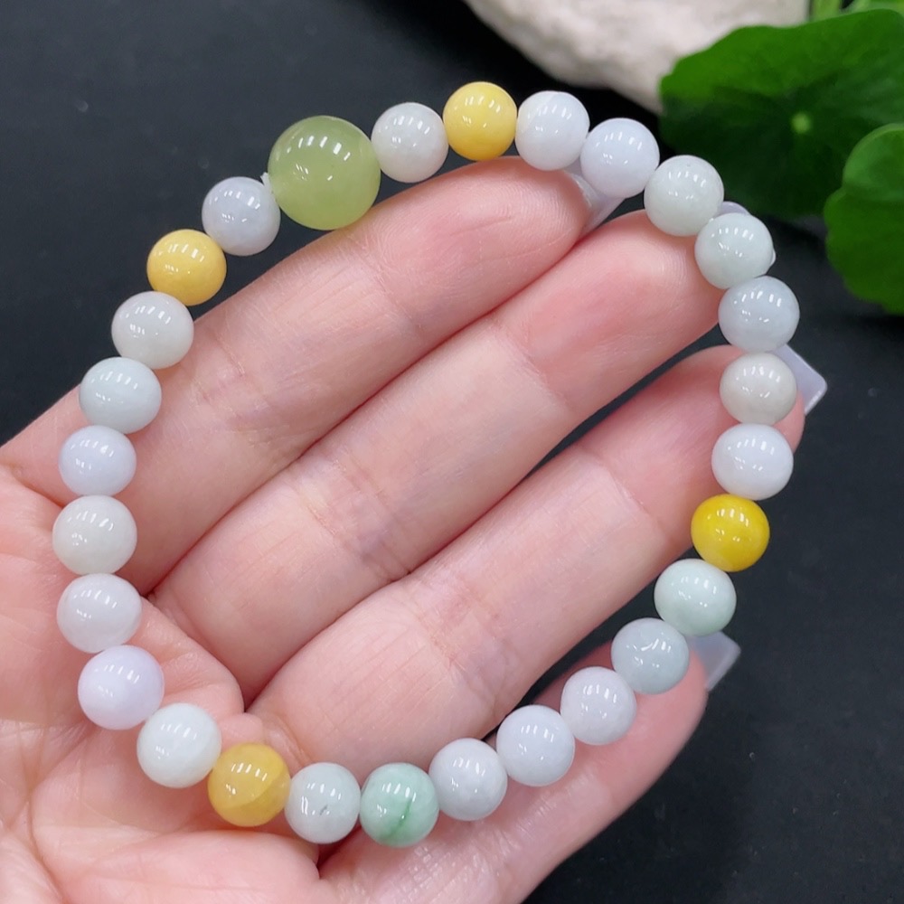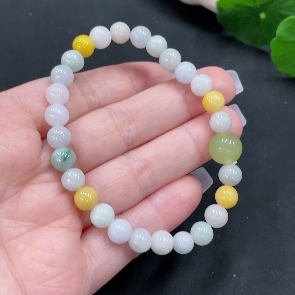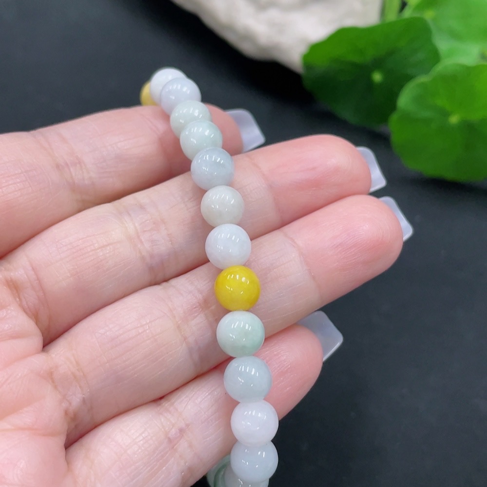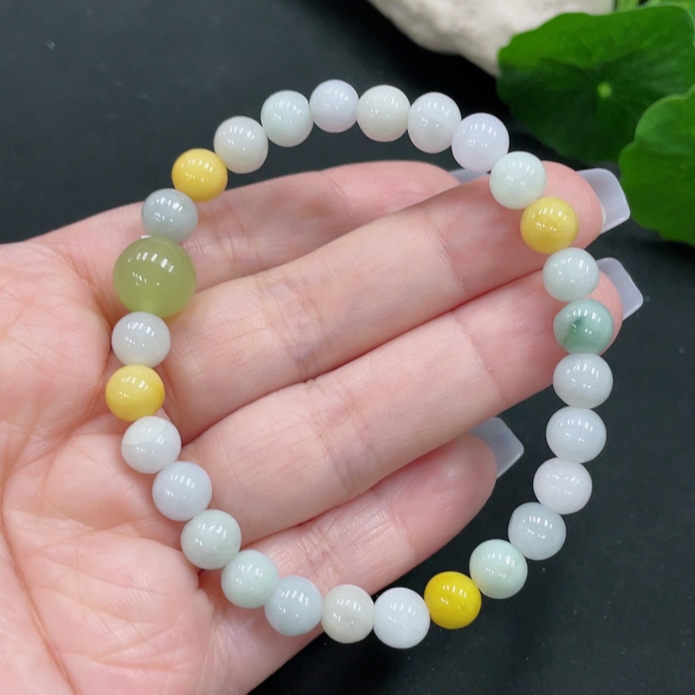 Jadeite Bracelet Approx.7mm Total Weight Approx.17.3g (Yellow Bead Color Origin Undetermined) (Matching Beads Not Grade A)