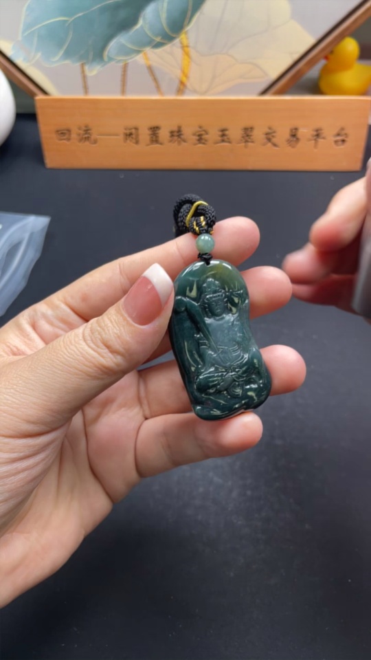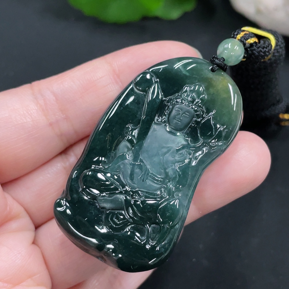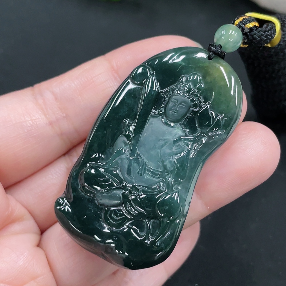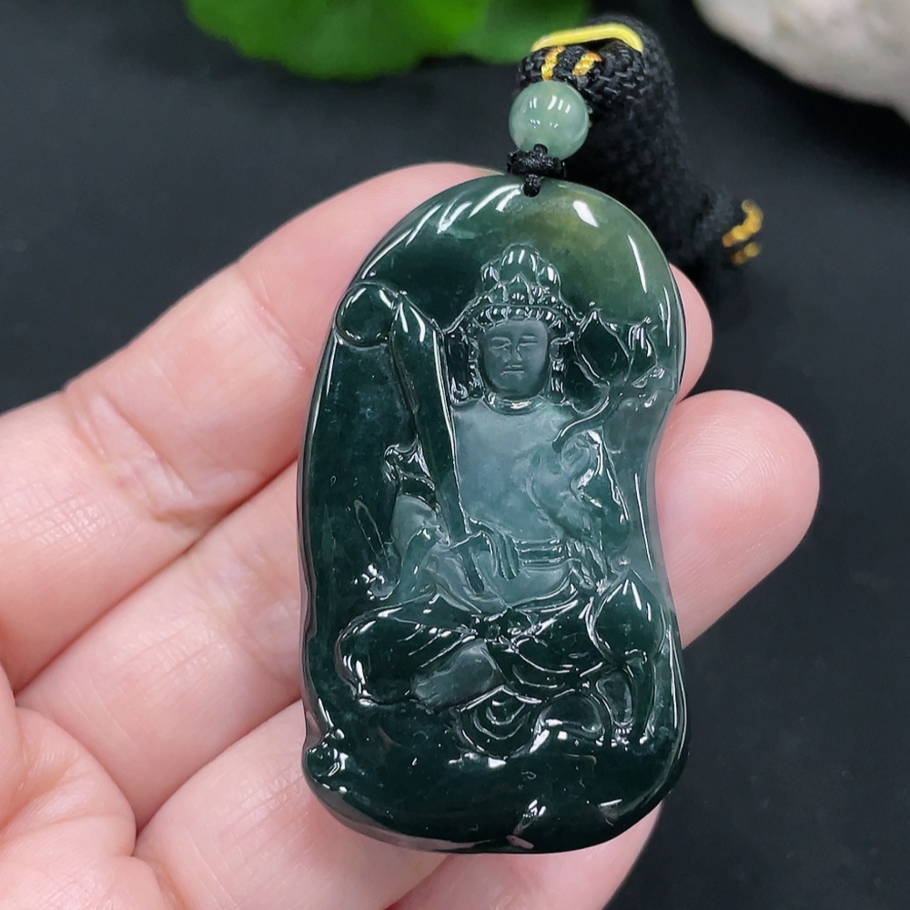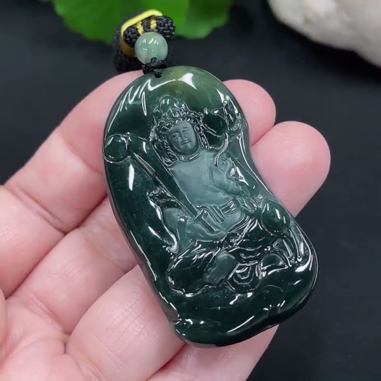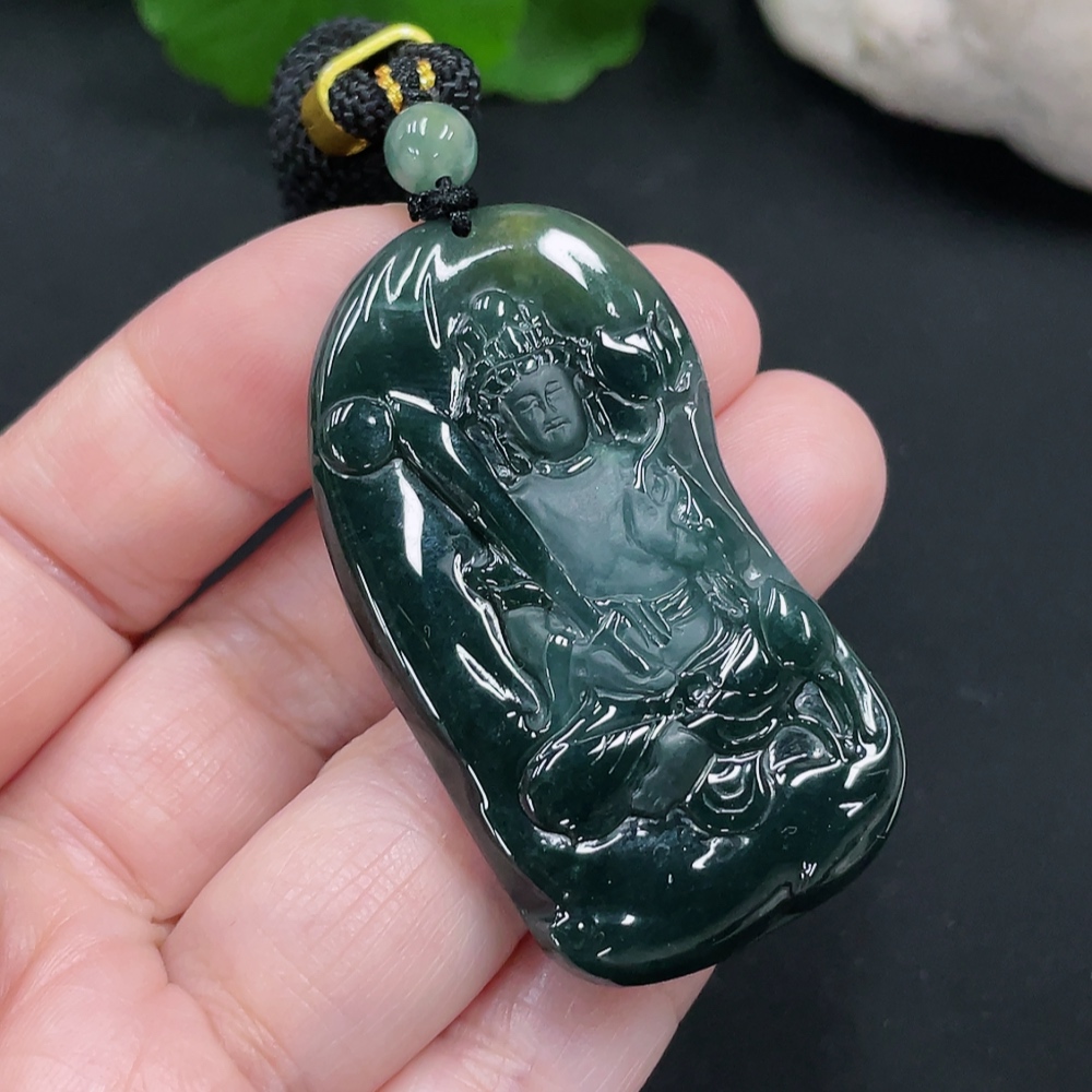 Jadeite Akashagarbha Bodhisattva Pendant Total Weight Including Rope Approximately 24.6g