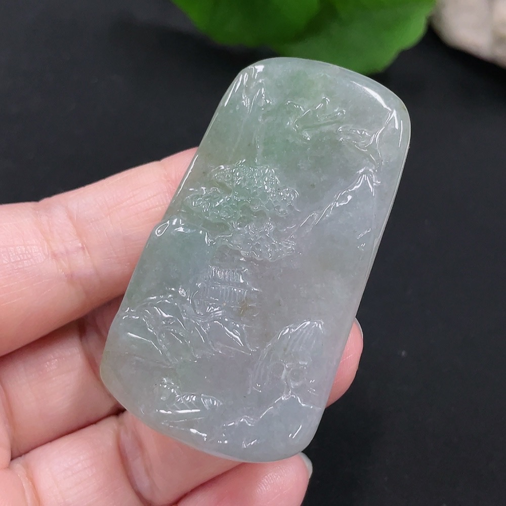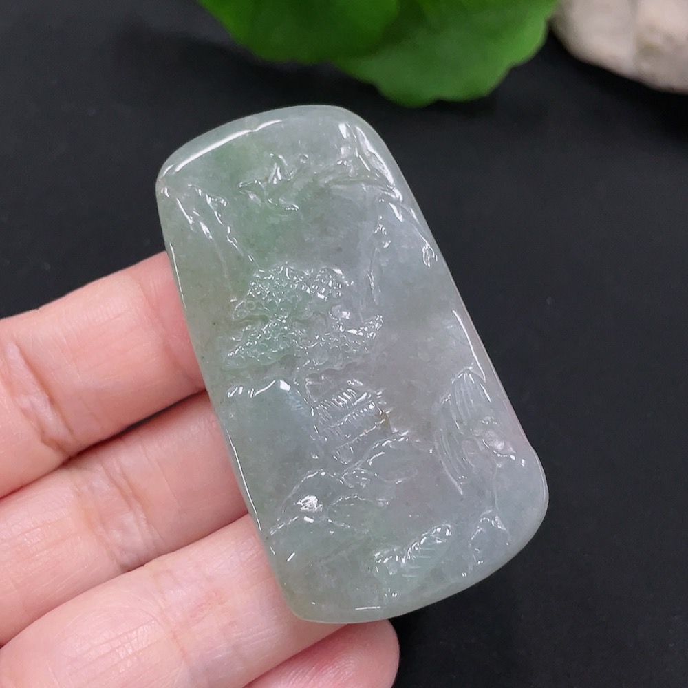 Jadeite Landscape Pendant, Total Weight Approx. 15.9g