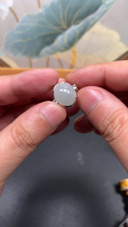 Jadeite Inlaid Ring Non-Gold Adjustable Total Weight Approx. 3.72g