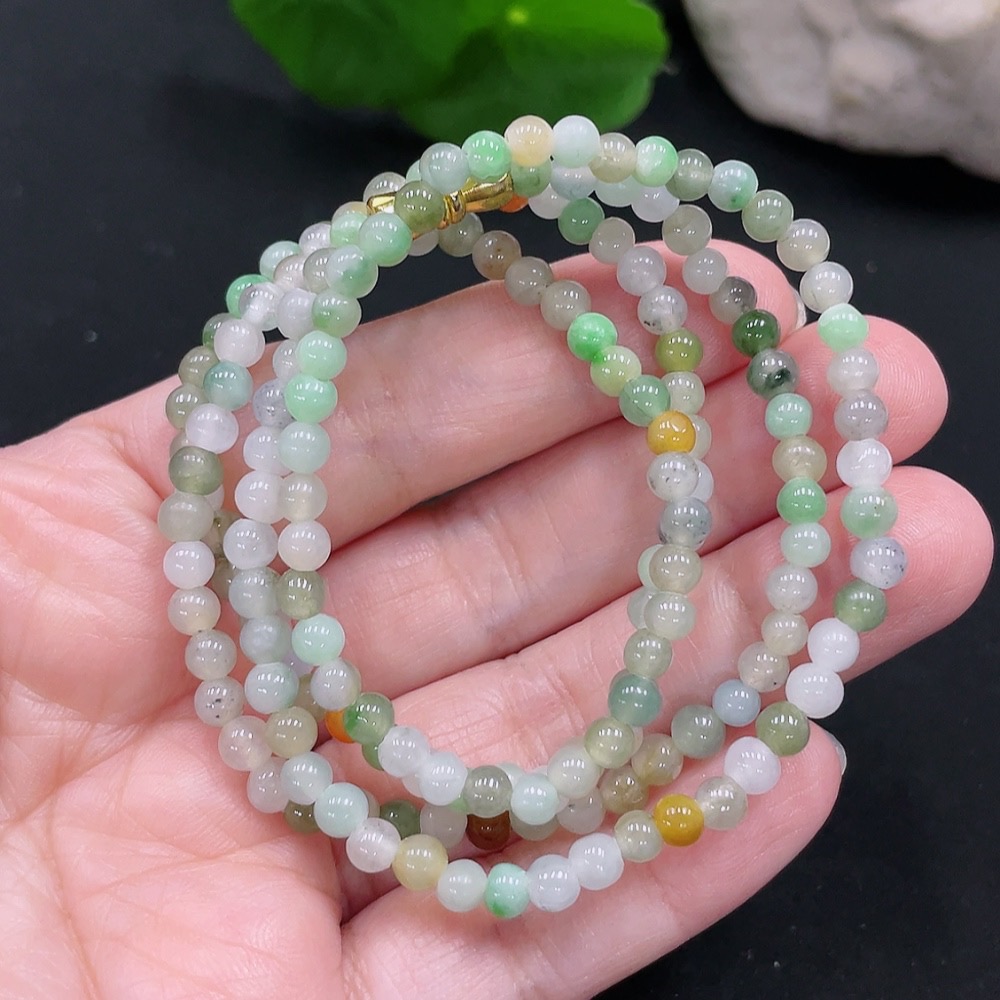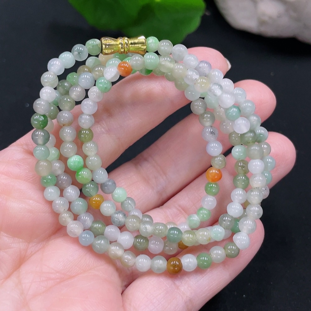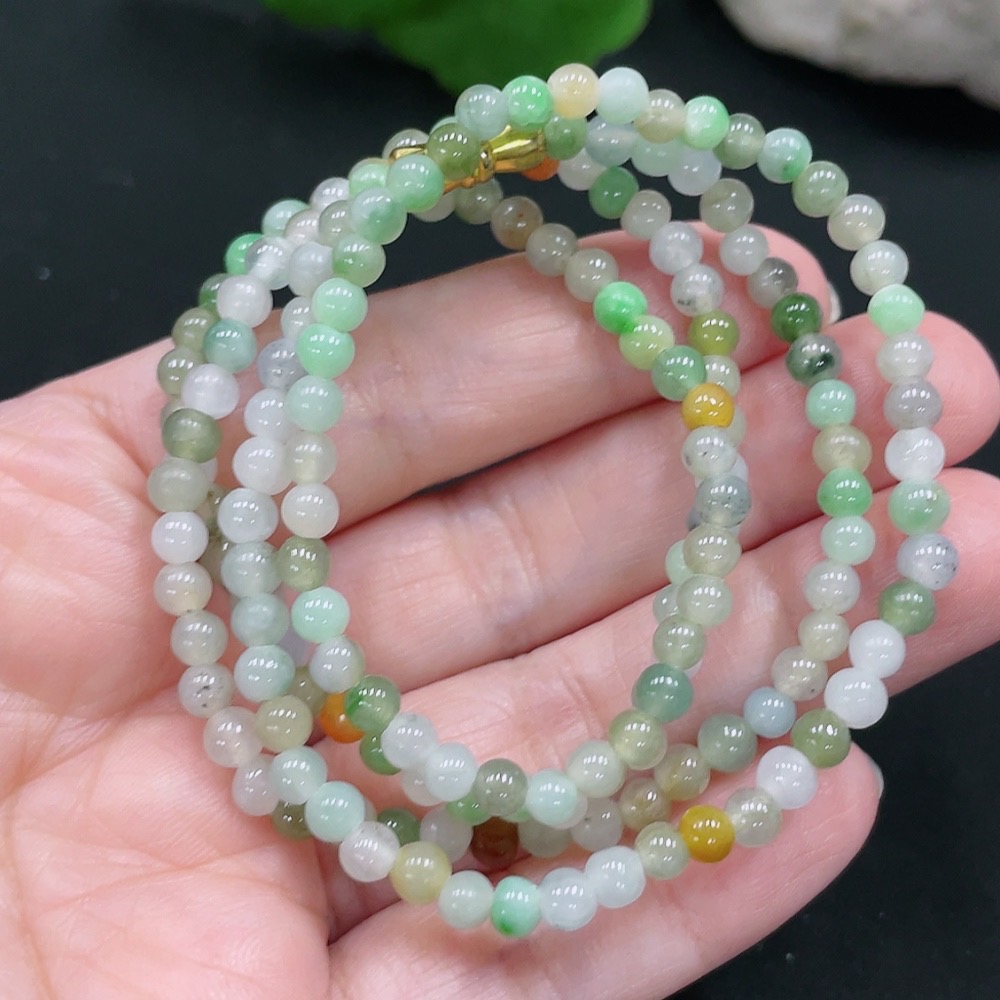 Jadeite Beaded Necklace Approx. 3.8mm Total Weight Approx. 17.6g (Non-gold-inlaid) (Color origin undetermined)