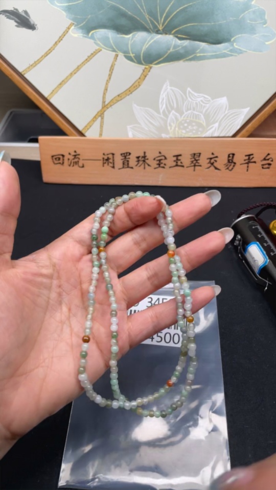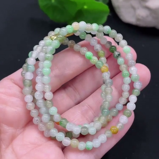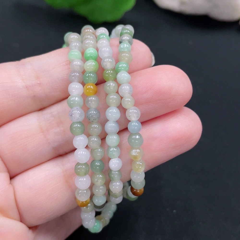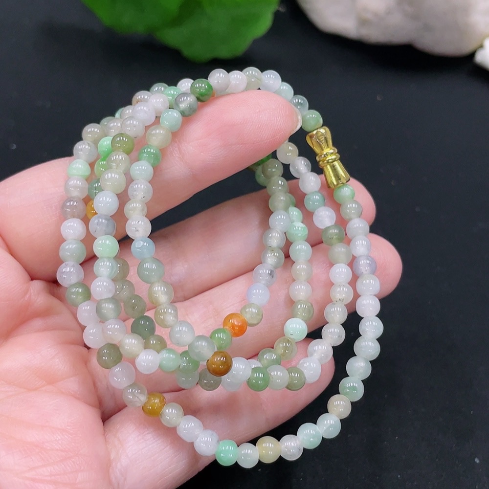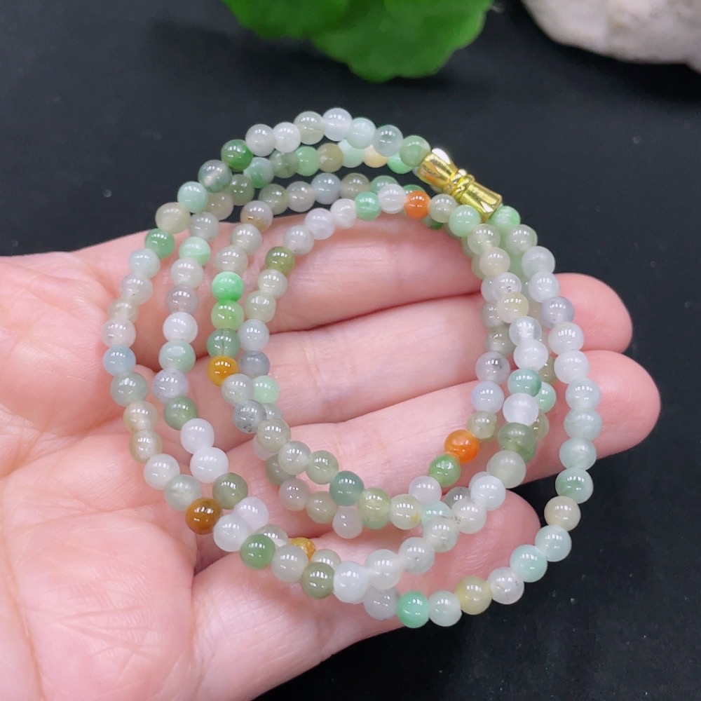 Jadeite Beaded Necklace Approx. 3.8mm Total Weight Approx. 17.6g (Non-gold-inlaid) (Color origin undetermined)