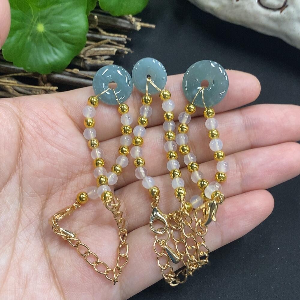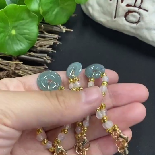 Jadeite Inlaid Hand Jewelry Set with Veins, Non-Gold Inlay