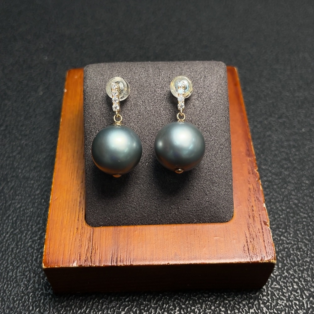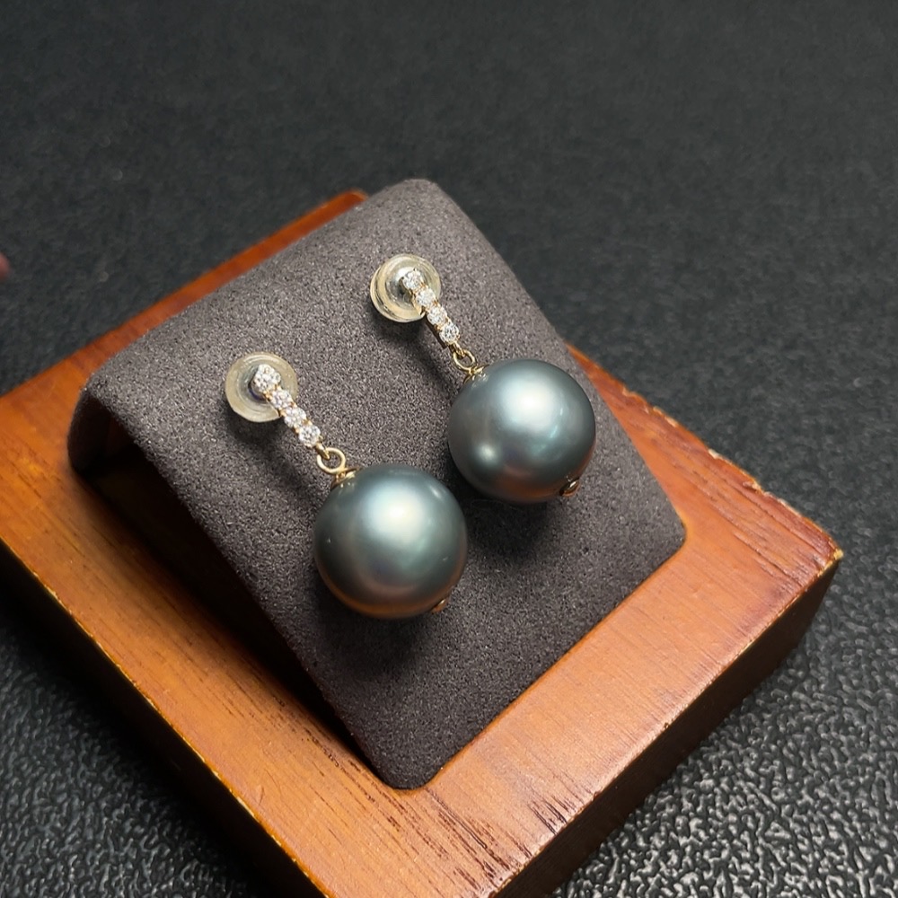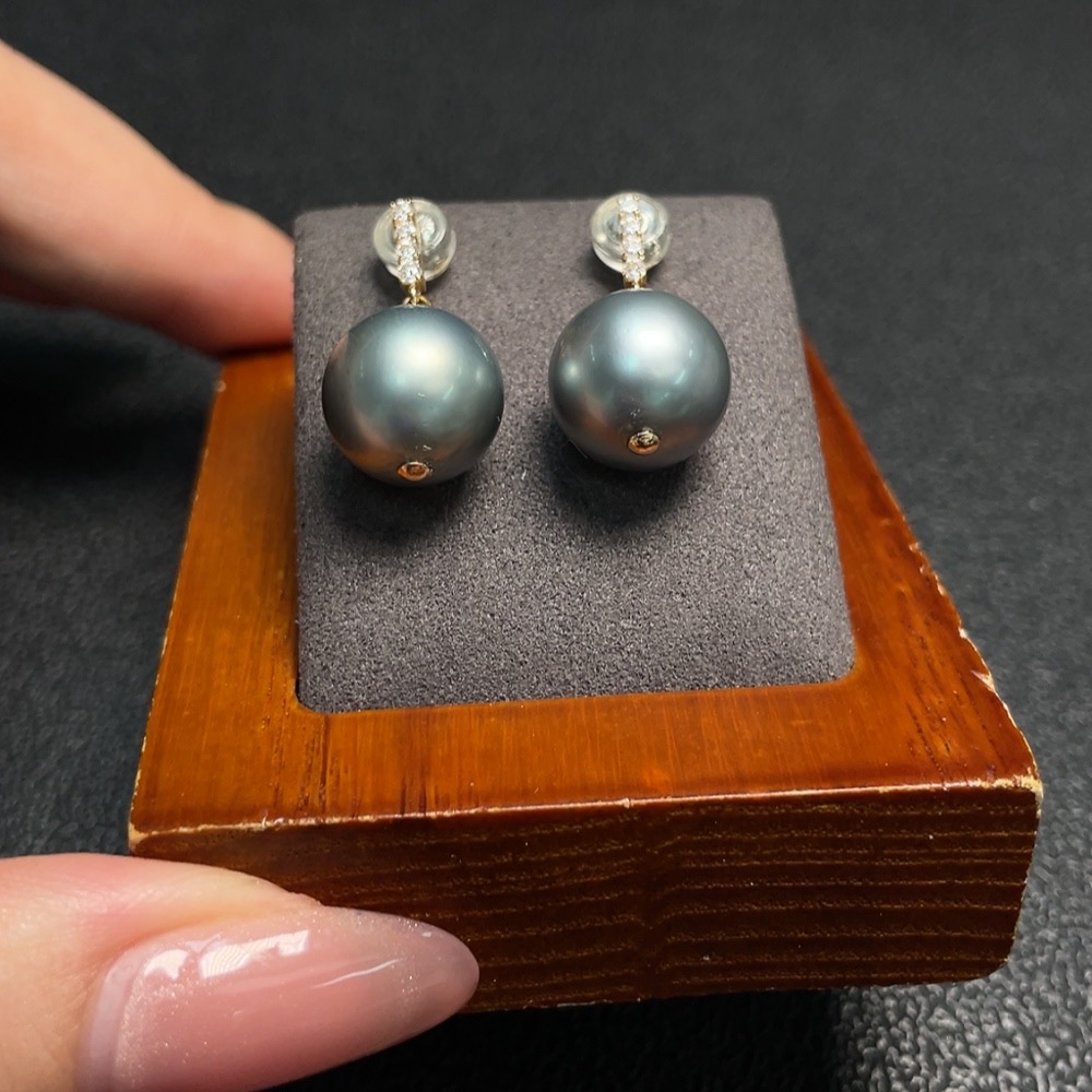 Seawater pearl earrings, color origin undetermined, 18K gold, total weight approximately 5.32g, size about 11.6mm