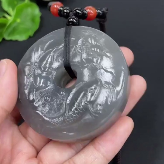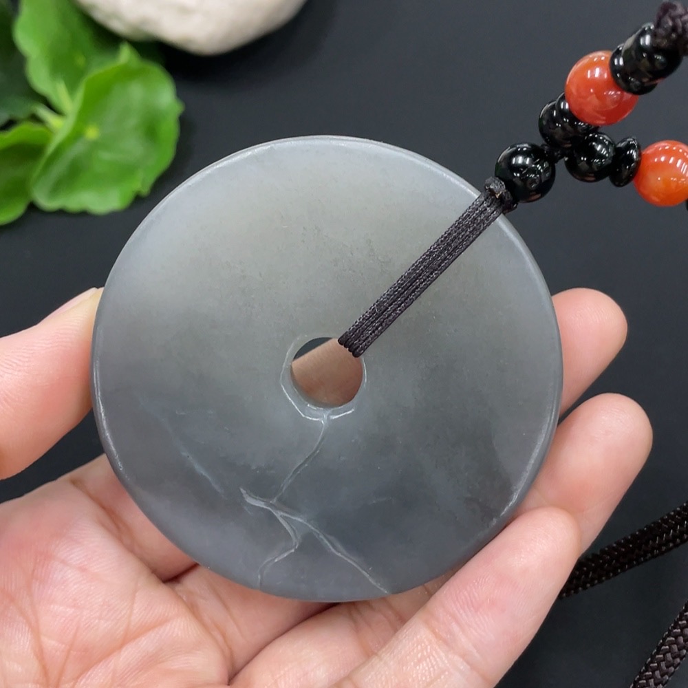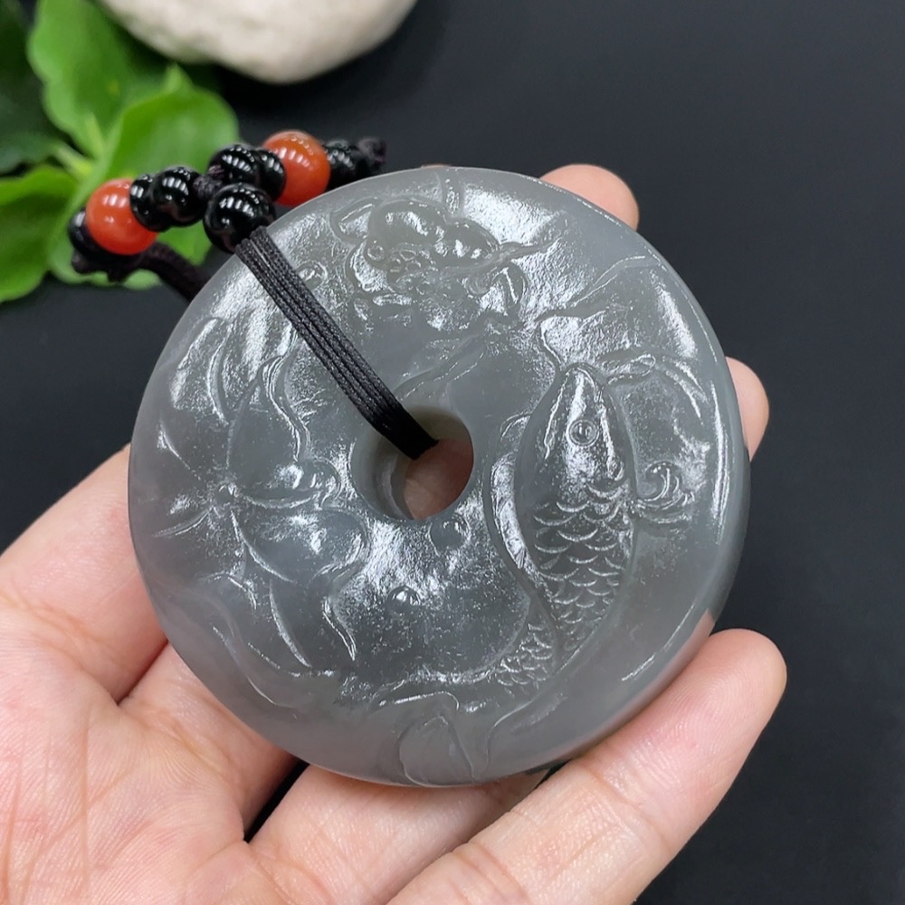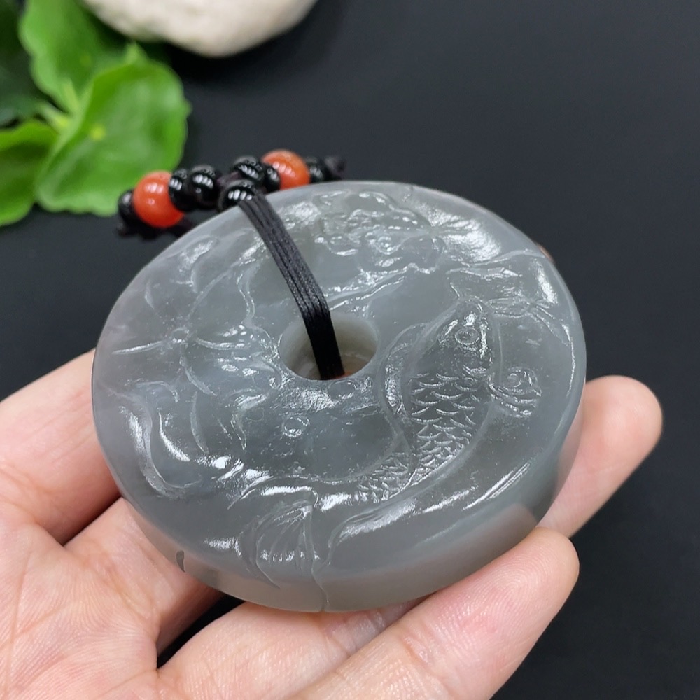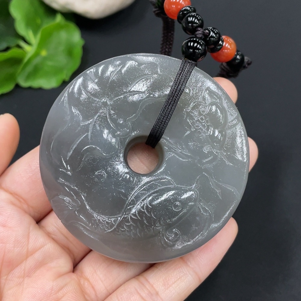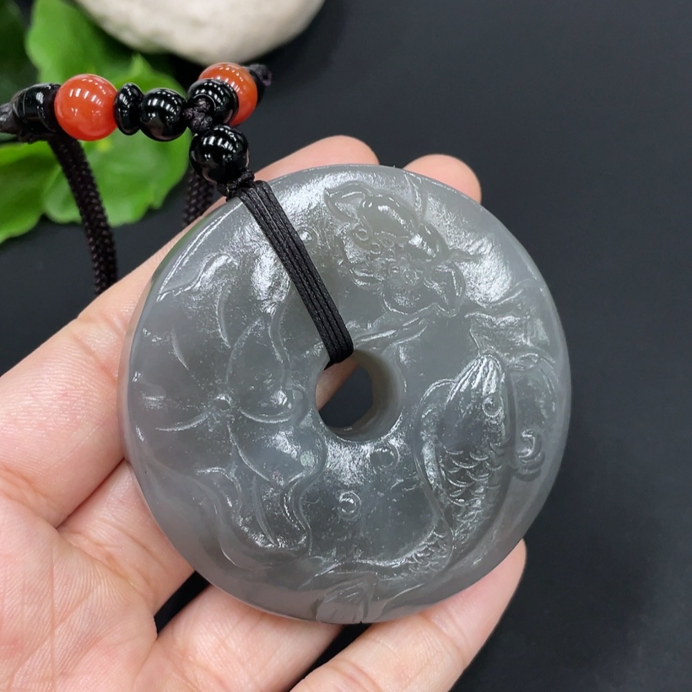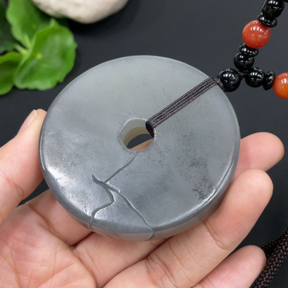 Hetian Jade Pendant - Year of Abundance Button with Non-Hetian Jade Beads