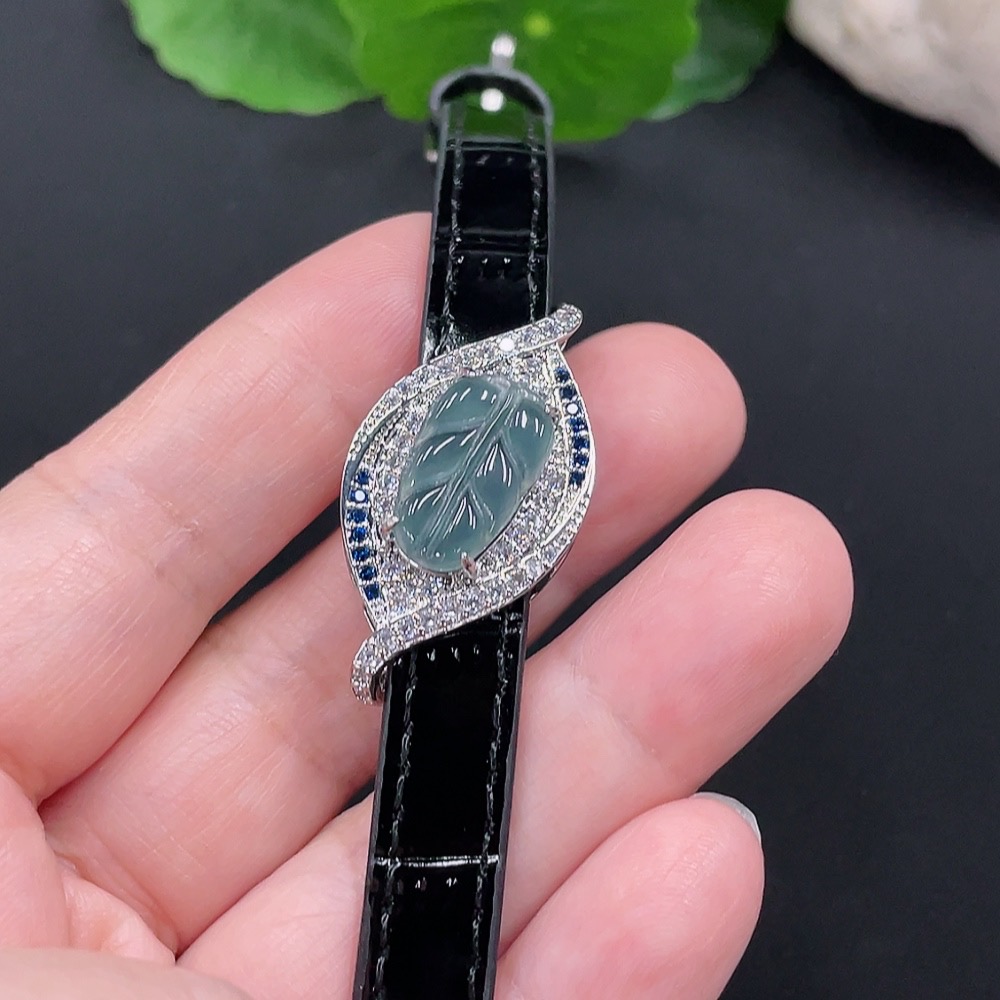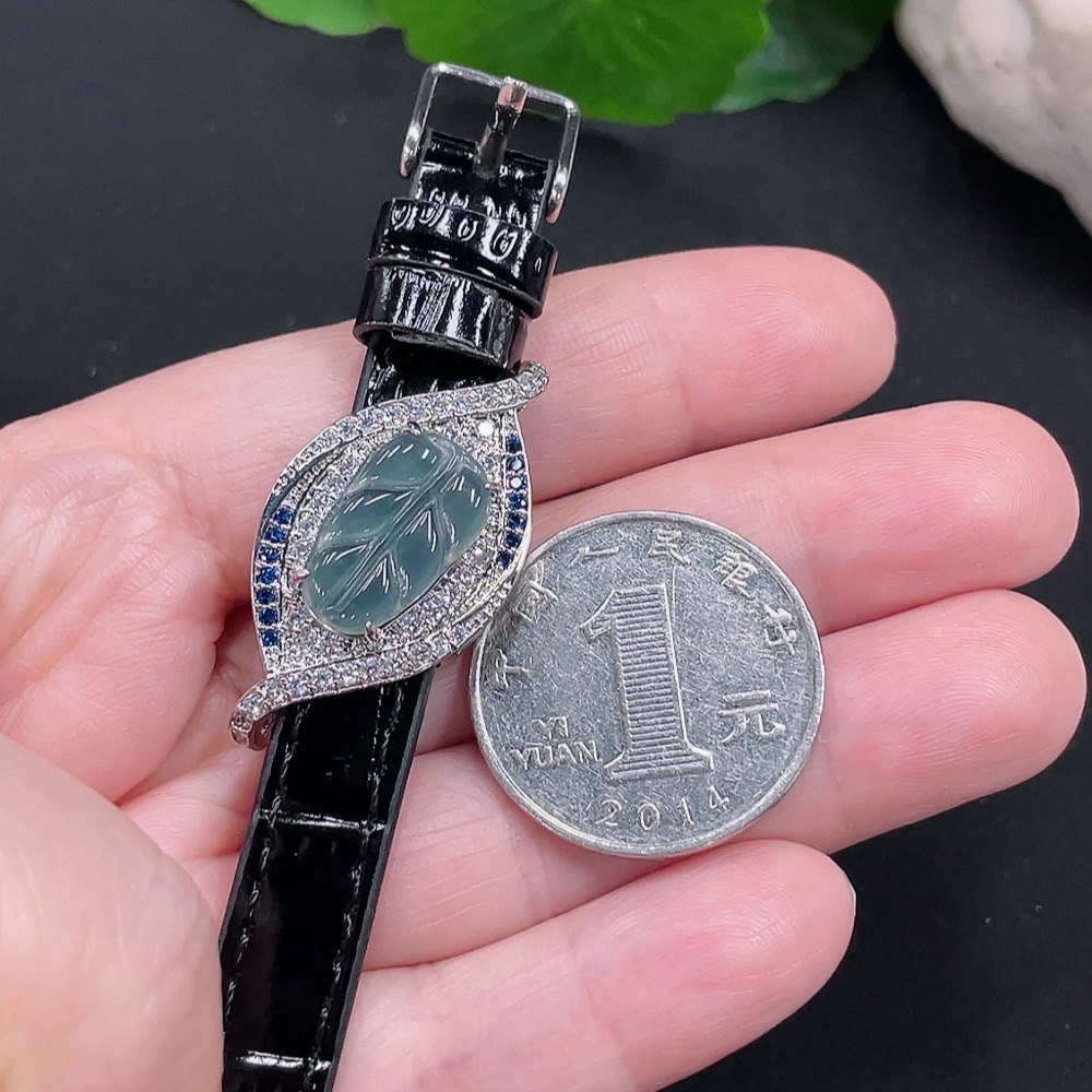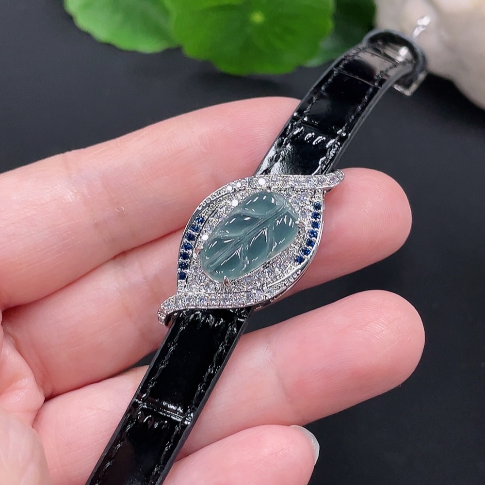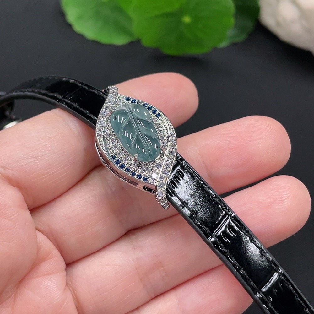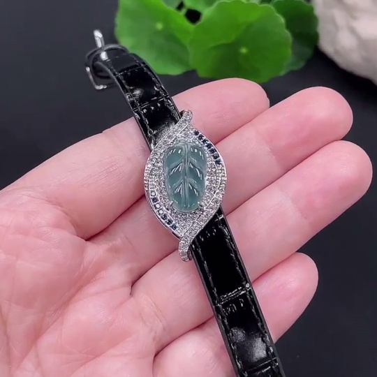 Jadeite Inlaid Bracelet Total Weight Approx. 8.1g (Including Strap Weight) (Non-Gold Inlaid)