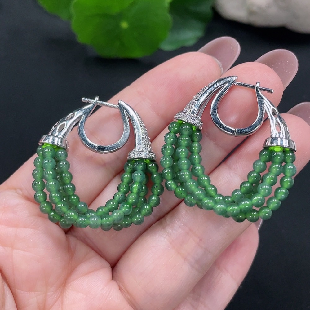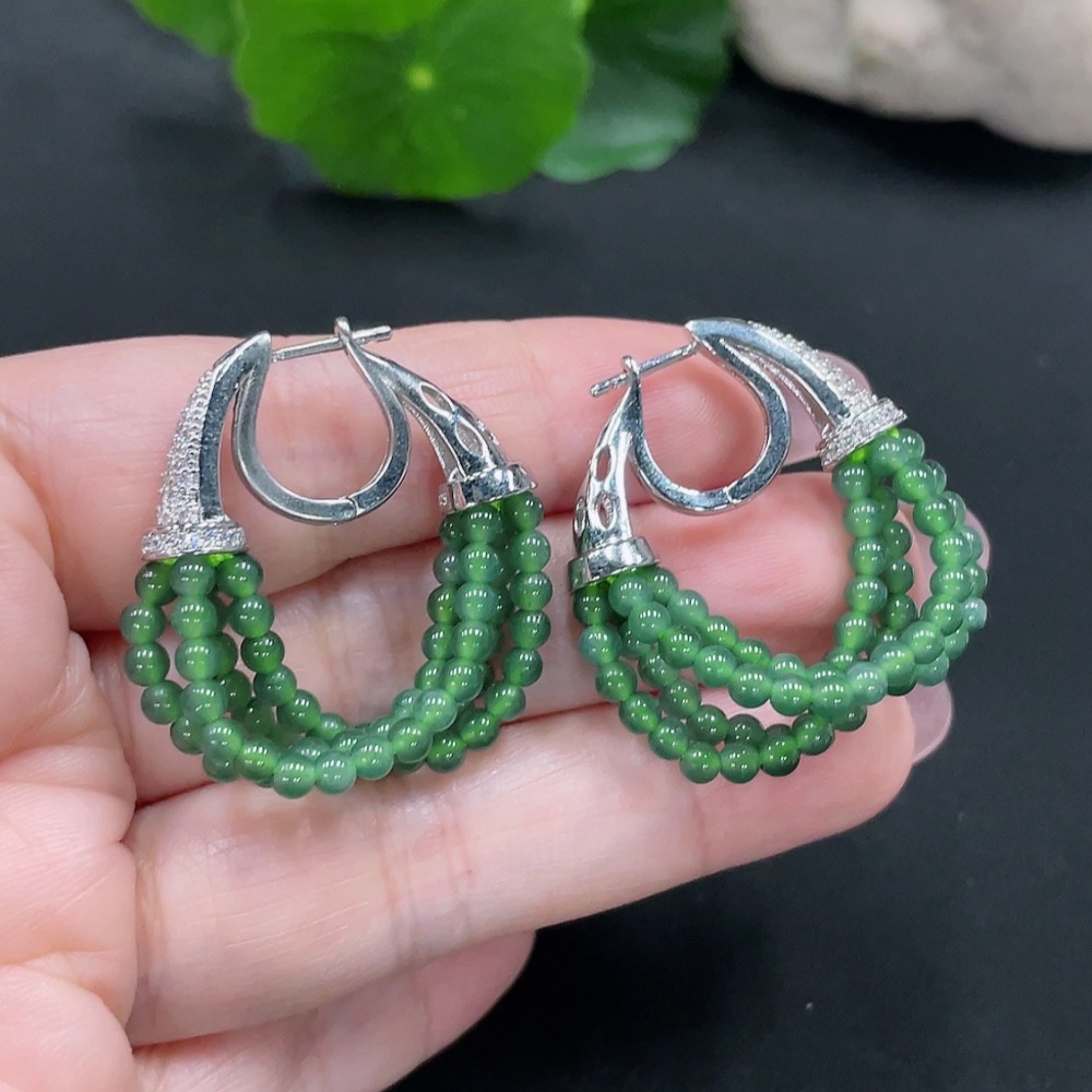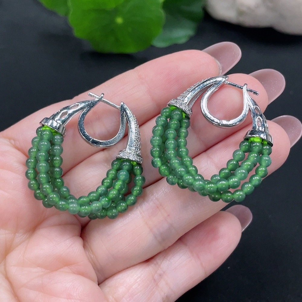 Jadeite Inlaid Earring Sell as a Lot Total Weight Approx. 10.4g (Non-Gold Inlaid)
