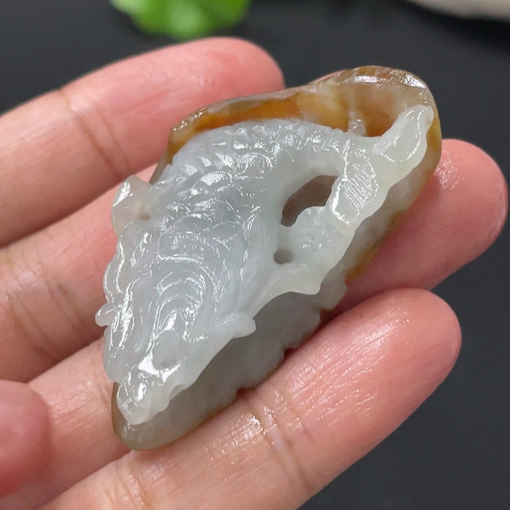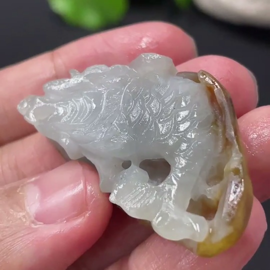 Jadeite Unpolished Fish Pendant Total Weight Approx.17.9g Color Origin Undetermined