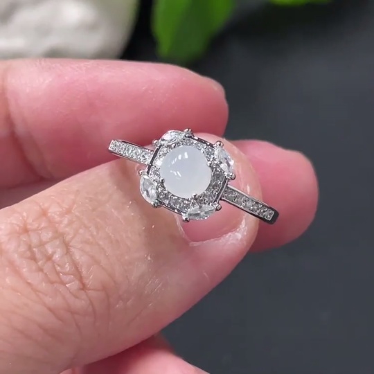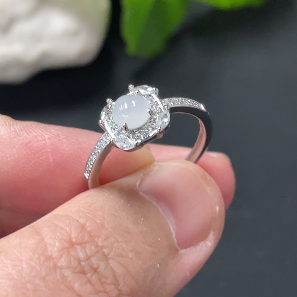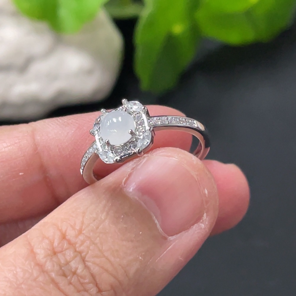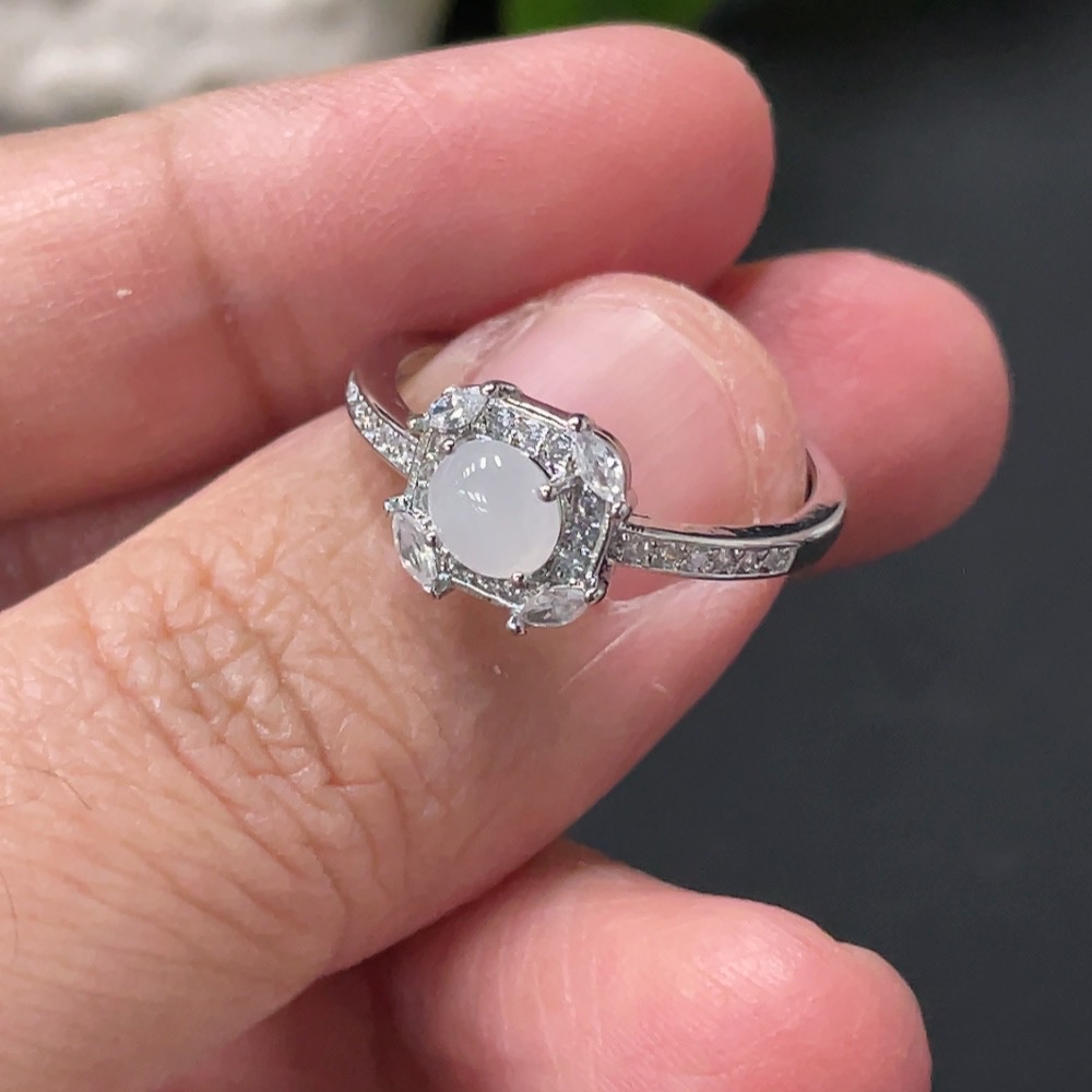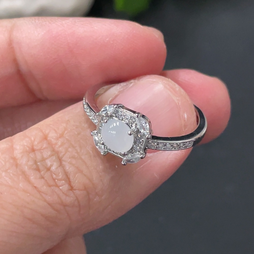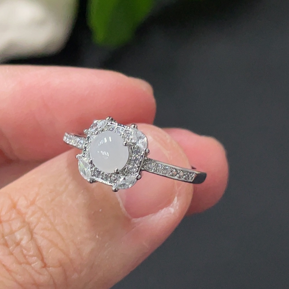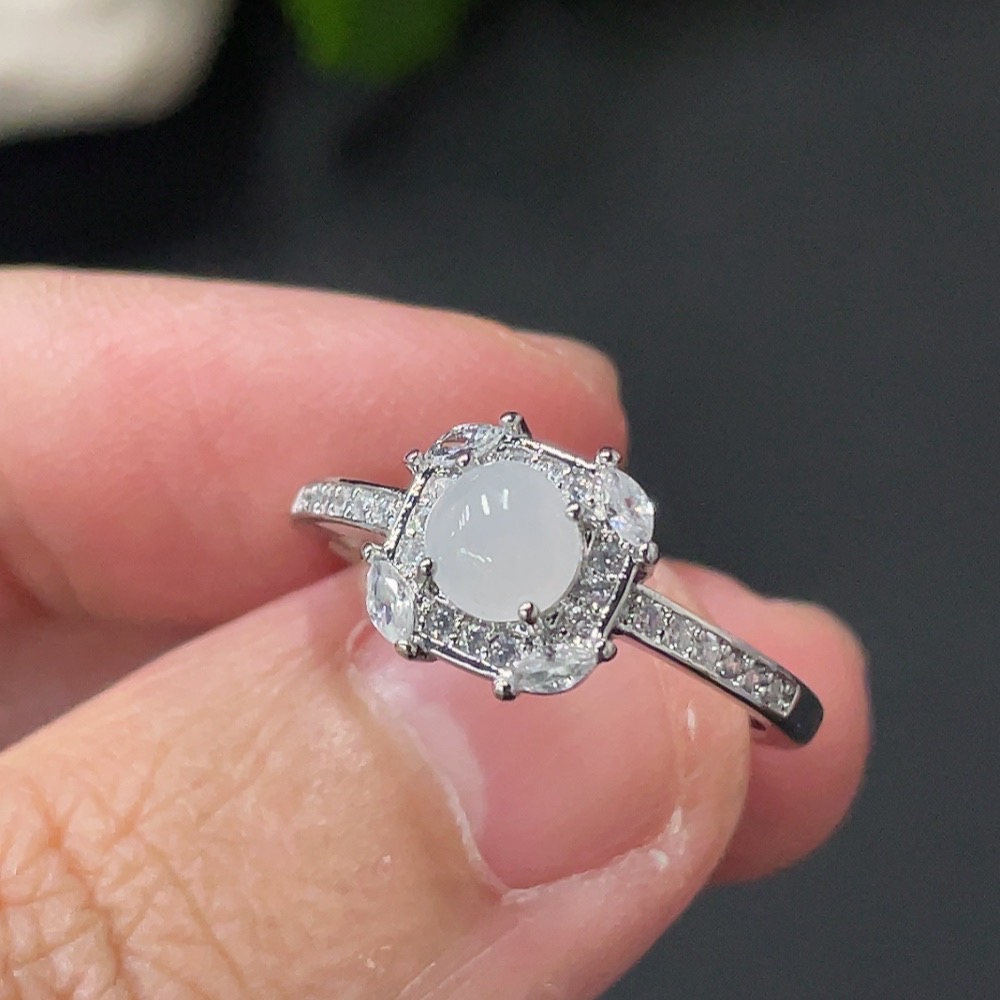 Jadeite Cabochon Ring Non-Gold Setting Adjustable Size Total Weight Approx. 1.7g