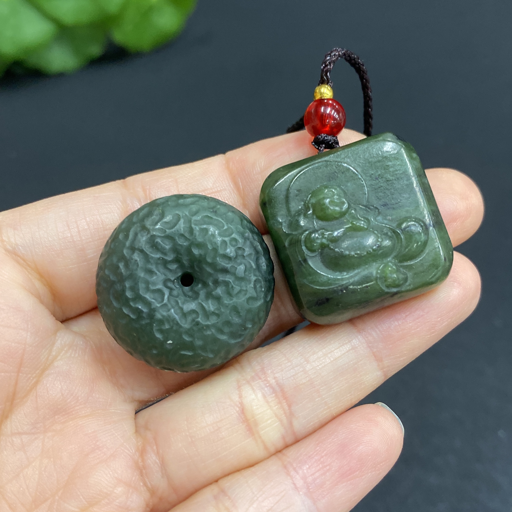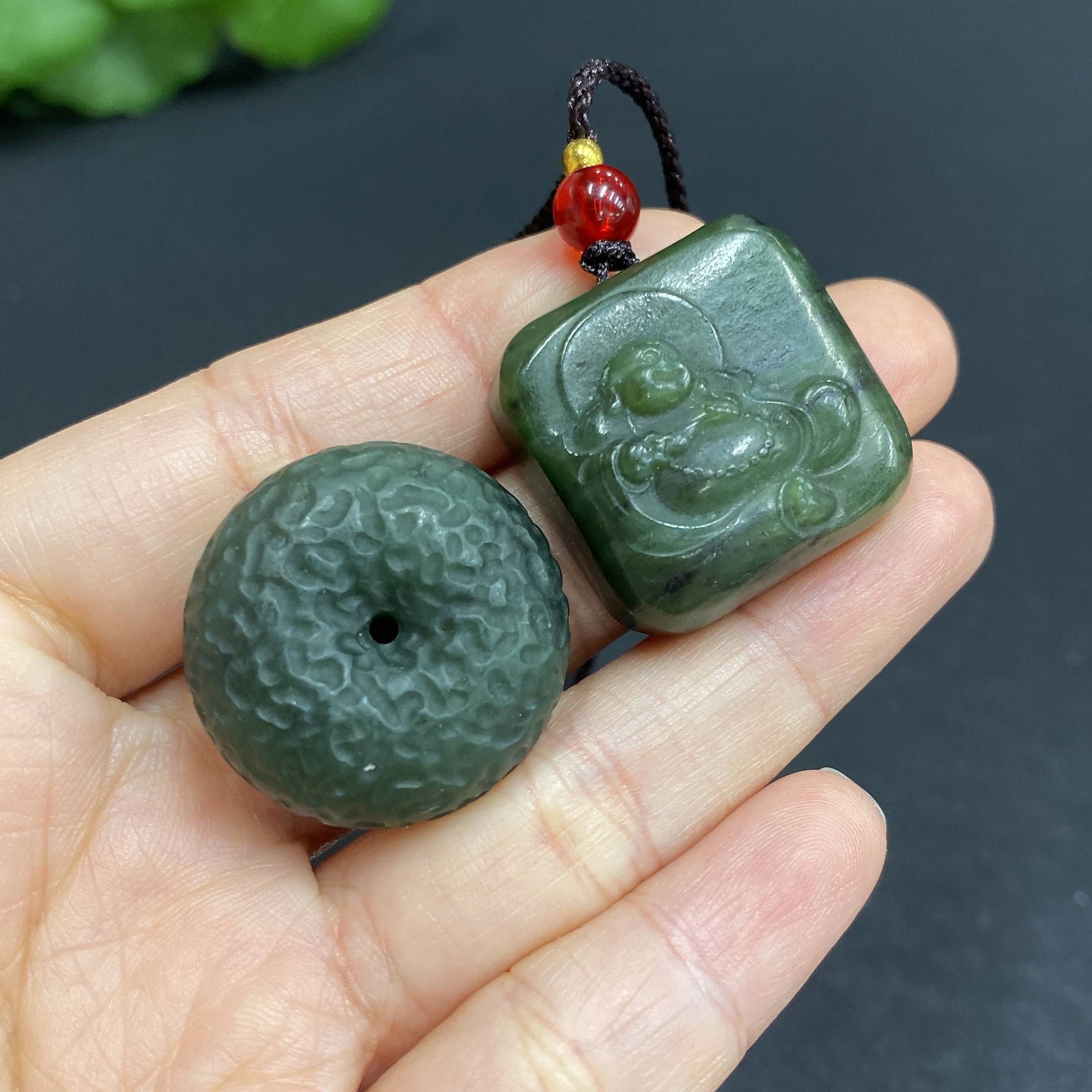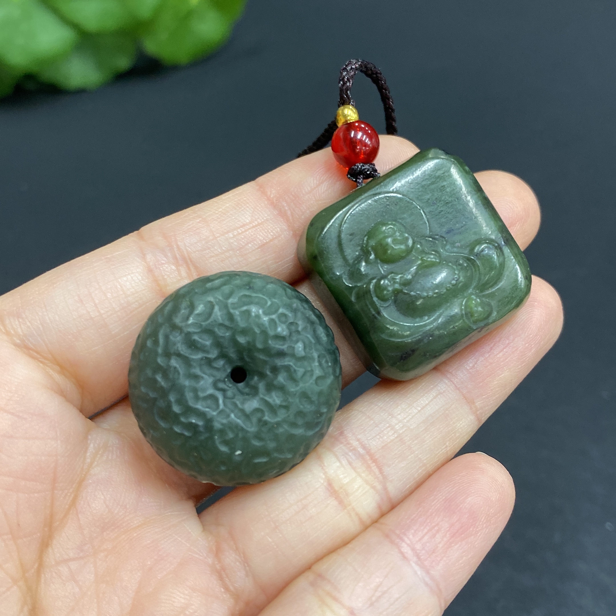 Hetian Jade Pendant, Peace Buckle, Buddha Figurine, Total Weight (including rope) approx. 28.5g