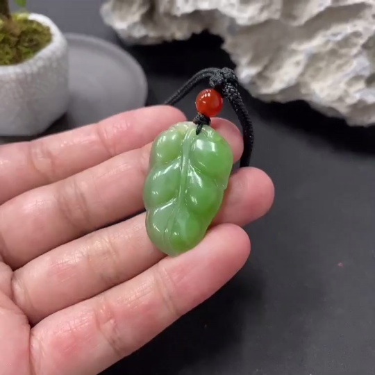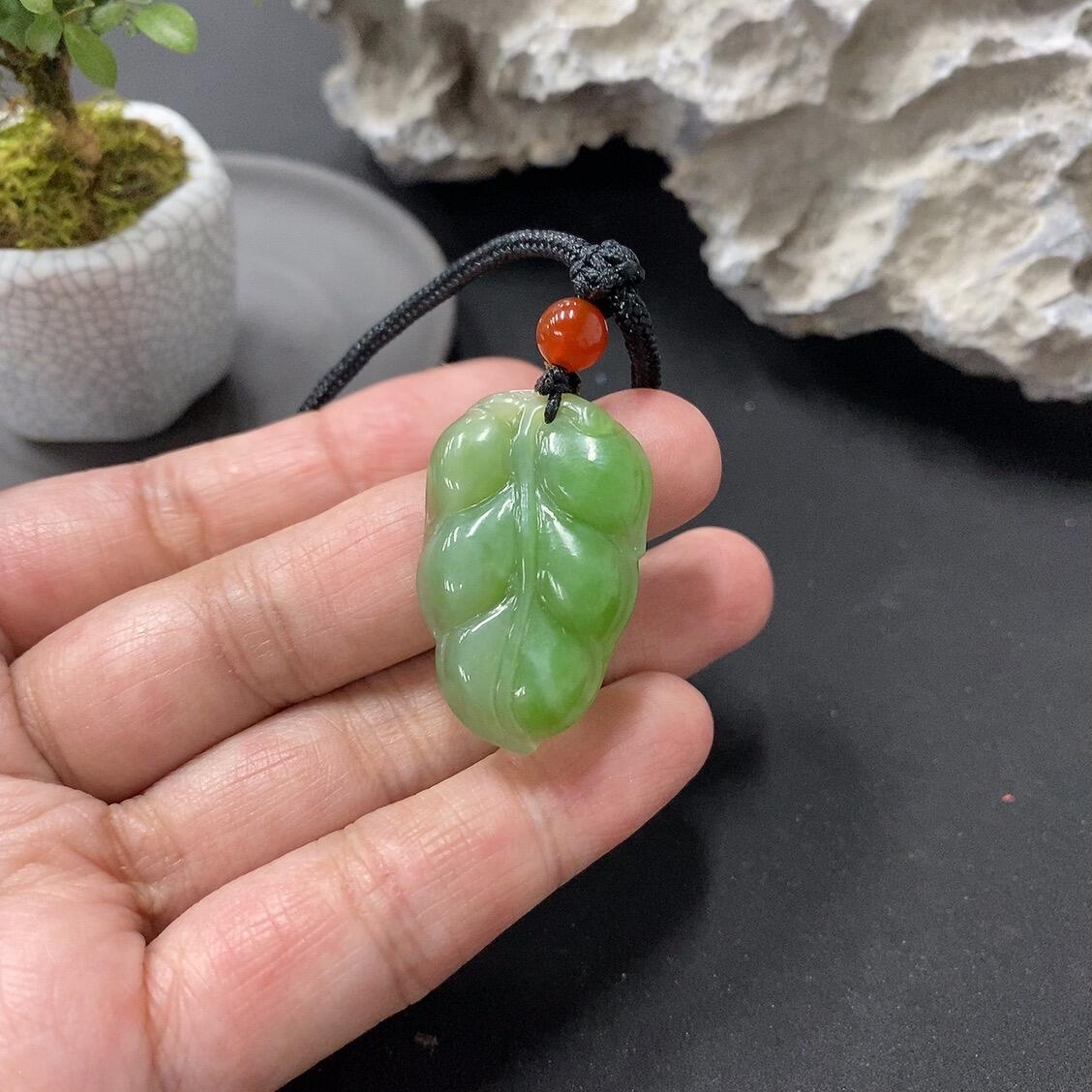 Hetian Jade Pendant Leaf with Crack Total Weight 6.8g