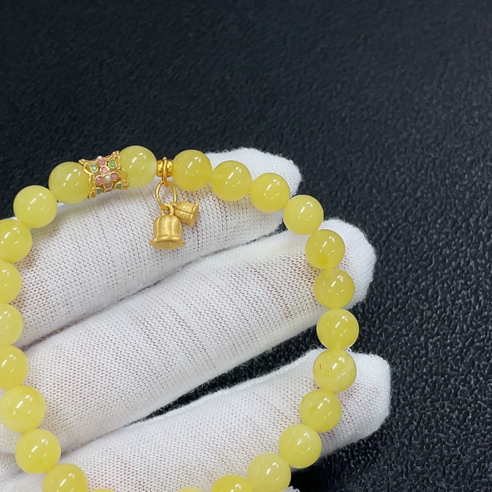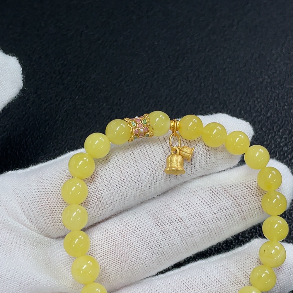 Amber Beeswax Bracelet, total weight about 5.58g, size approx. 6.8mm, non-gold