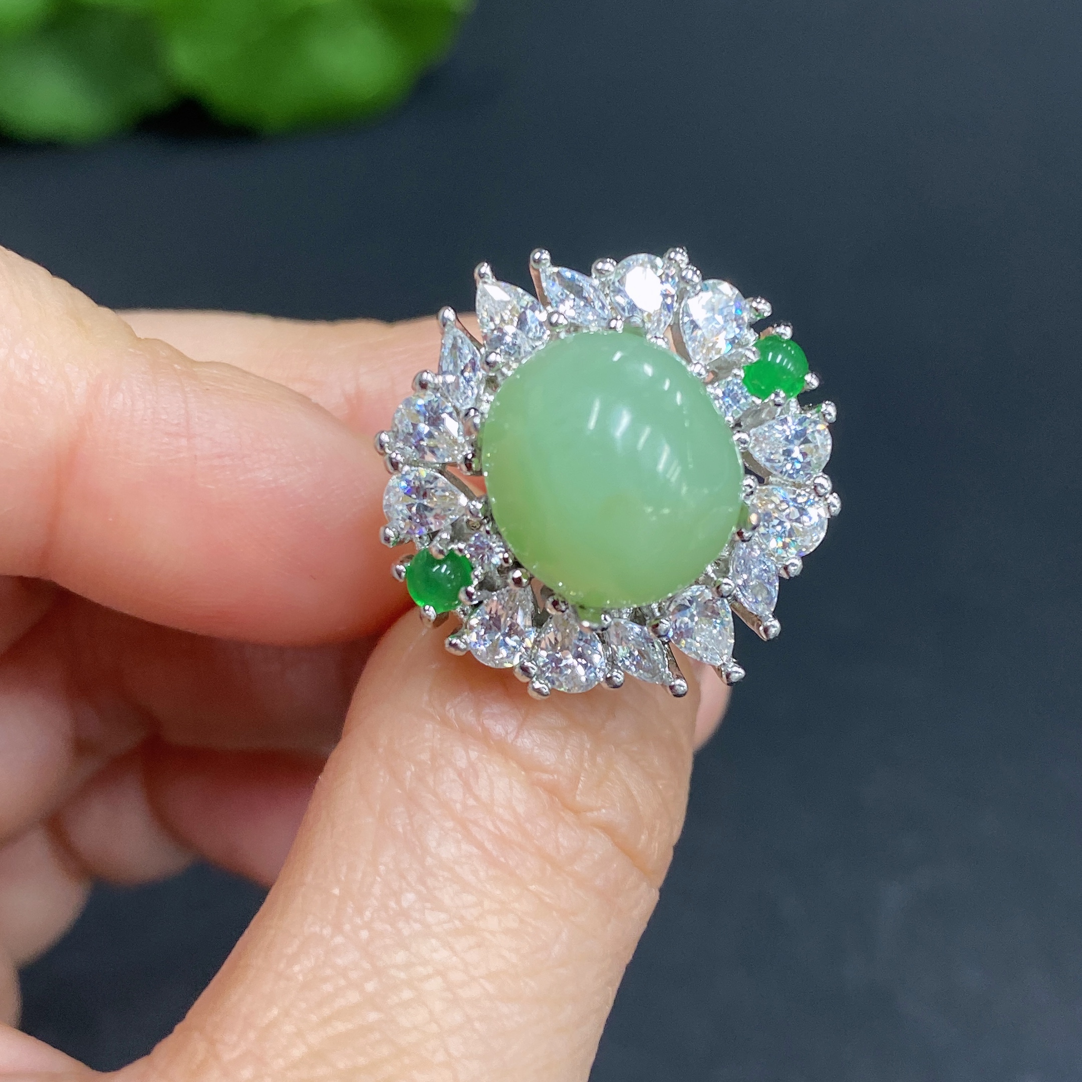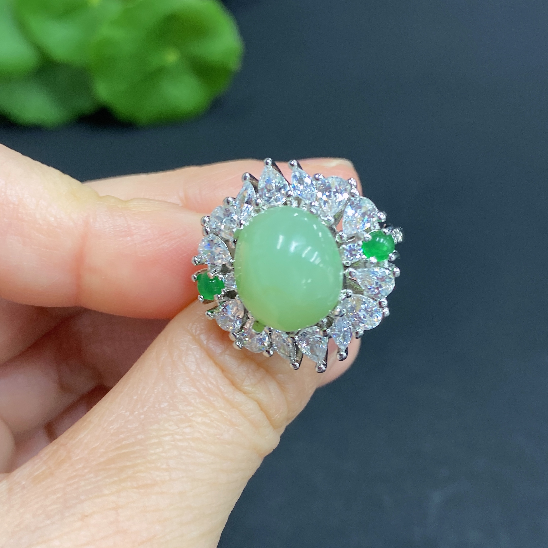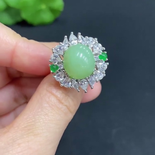 Hetian Jade inlaid adjustable ring (non-gold inlaid, total weight approx. 8.3g, accessories not Hetian Jade)