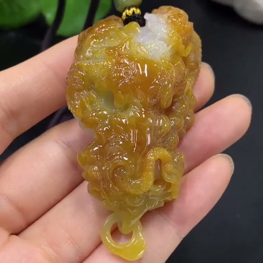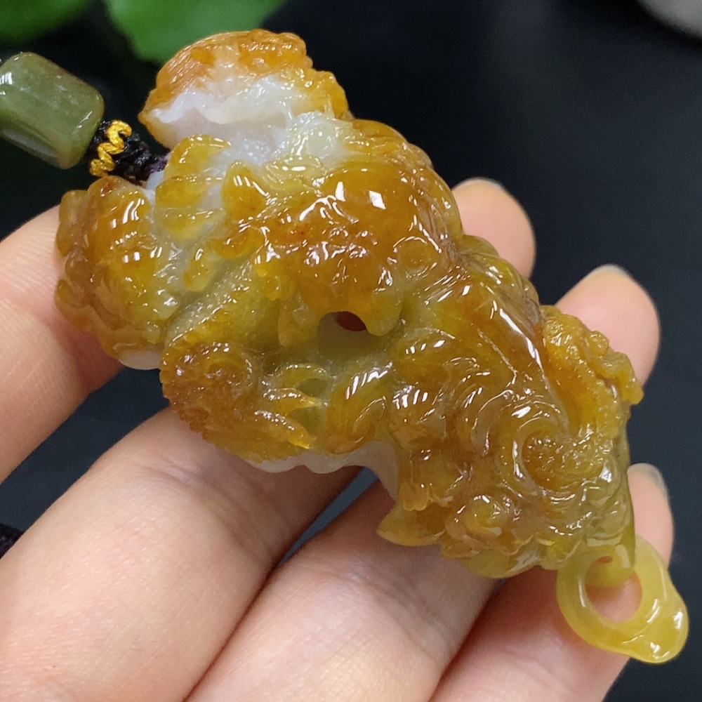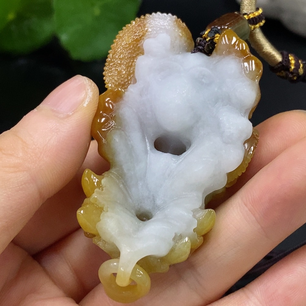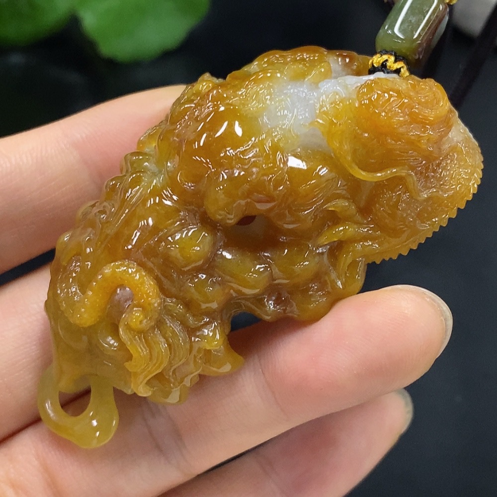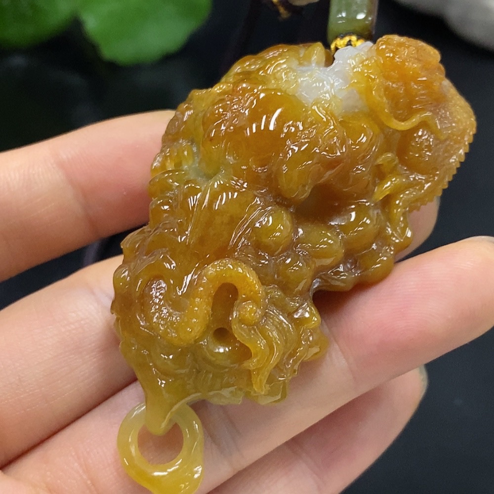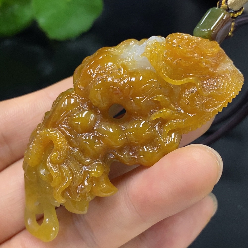 Jadeite Dragon Pendant Total Weight Approx. 67.51g (Including Rope Weight) Color Origin Undetermined