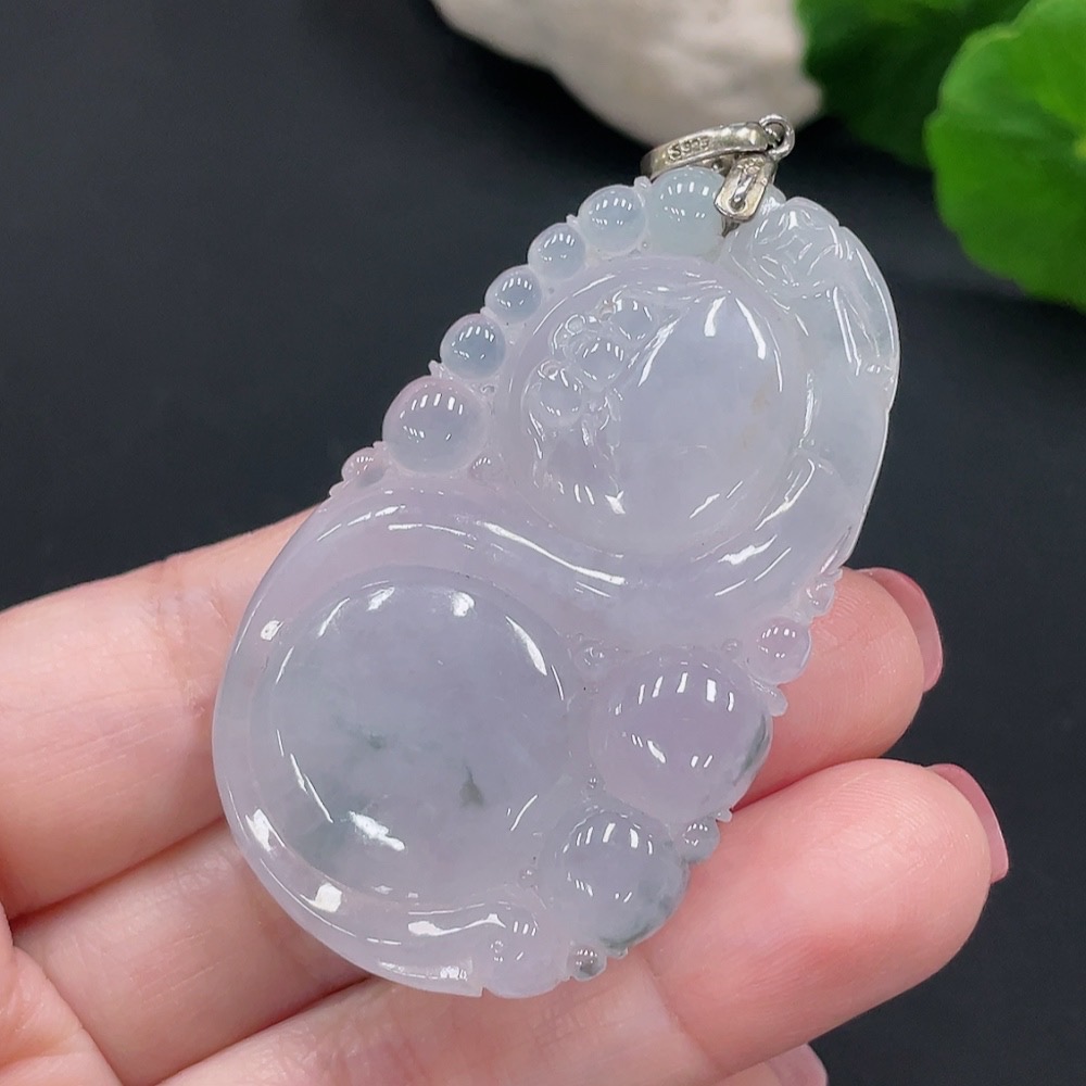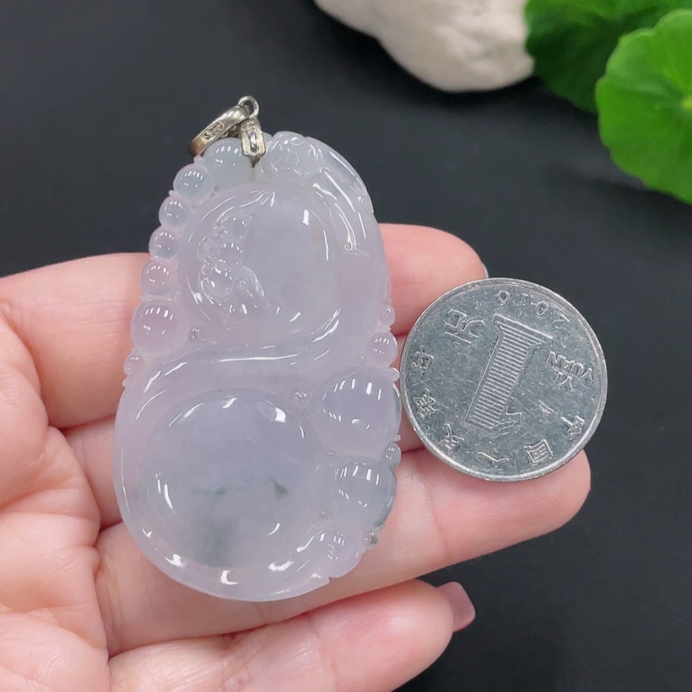 Jadeite Auspicious Longevity Pendant, Total Weight Approximately 30.8g (Non-Gold Inlaid)