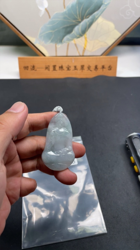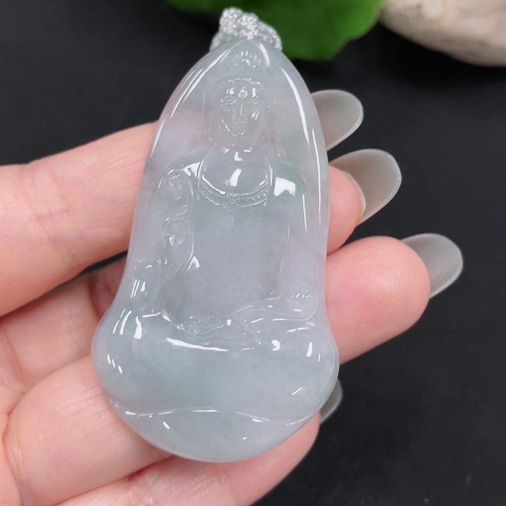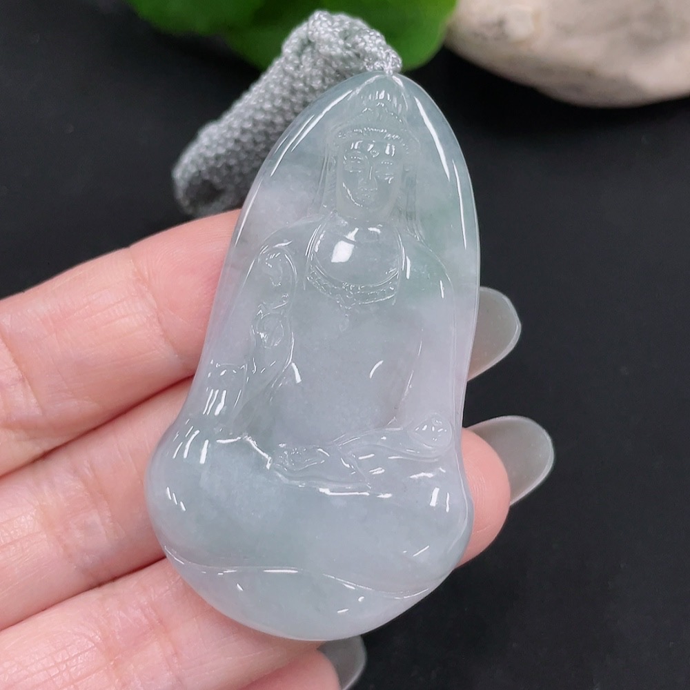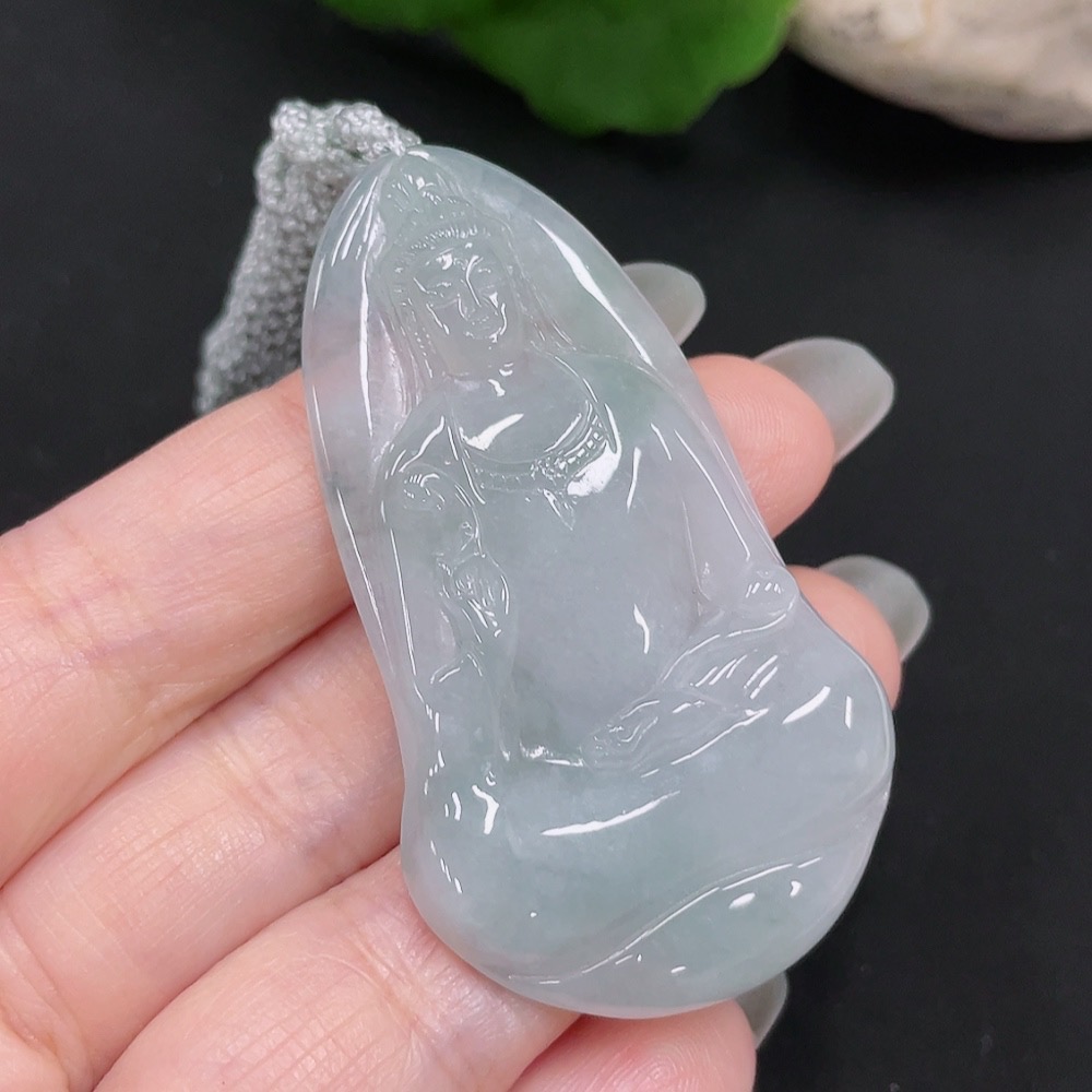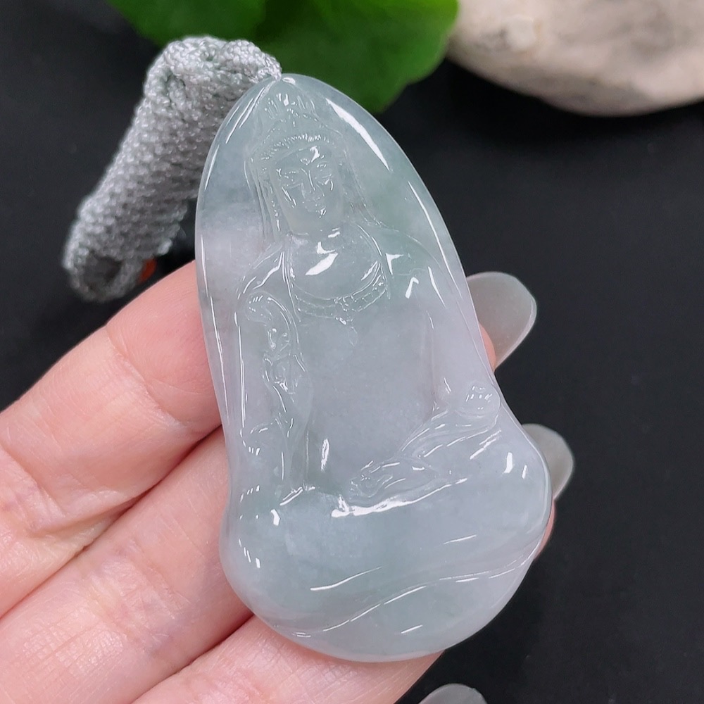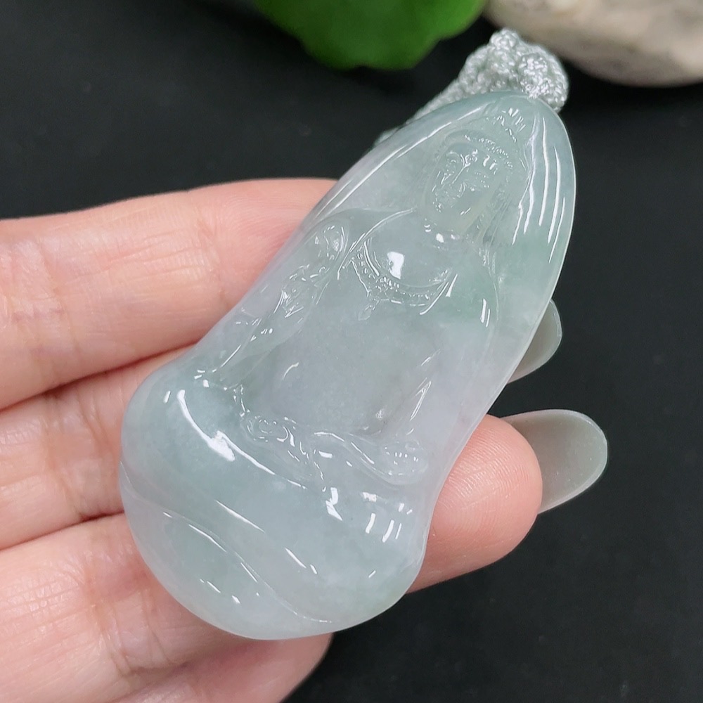 Jadeite Pendant Guanyin Total Weight: Approx. 17.9g Including Rope