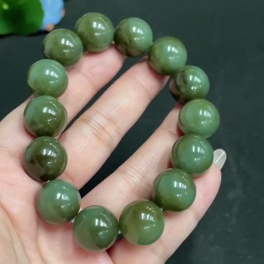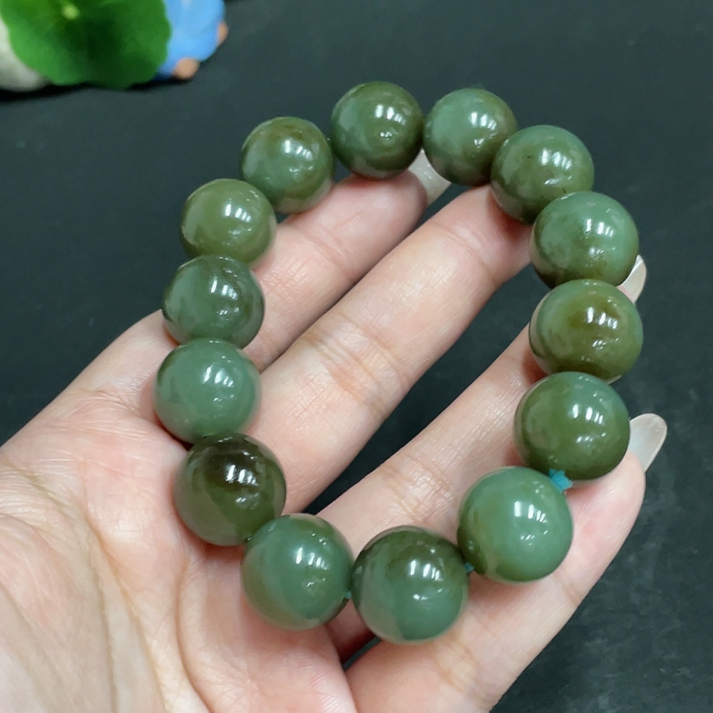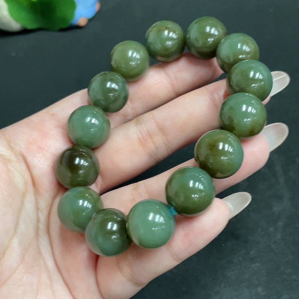 Hetian Jade Bracelet, Approx. 15mm Beads, Total Weight About 84.9g