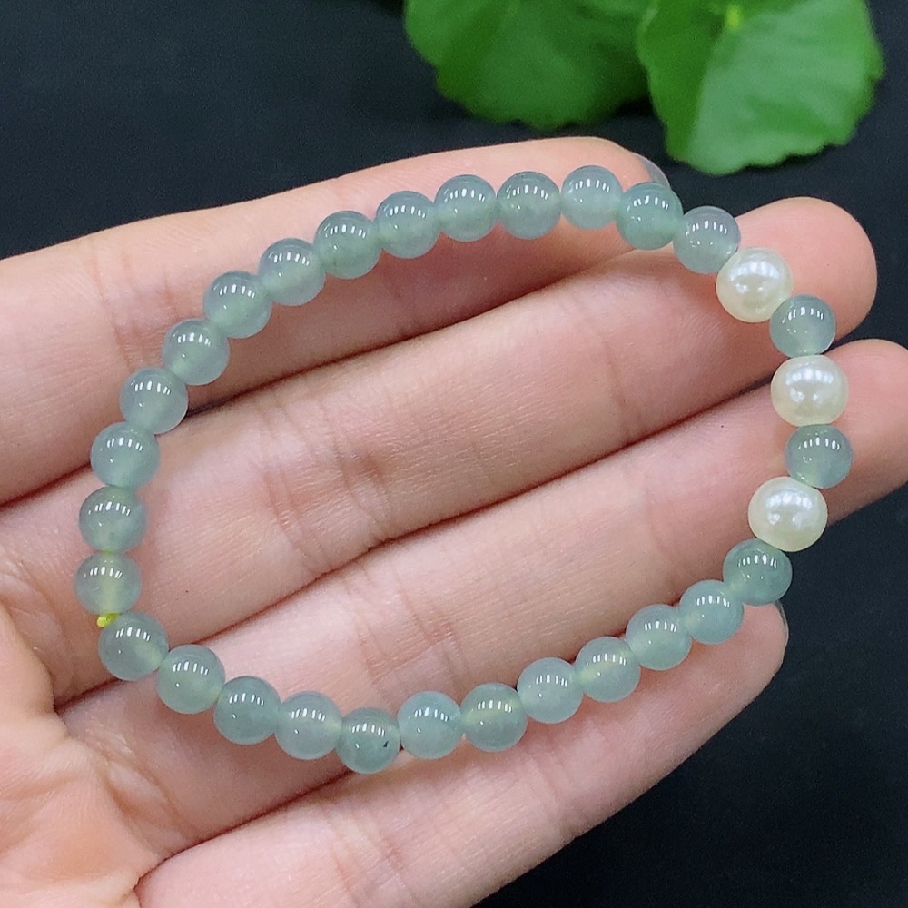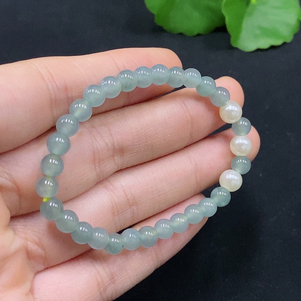 Jadeite Beads Bracelet Approx. 5.2mm Total Weight Approx. 6.6g with Non-Grade A Beads