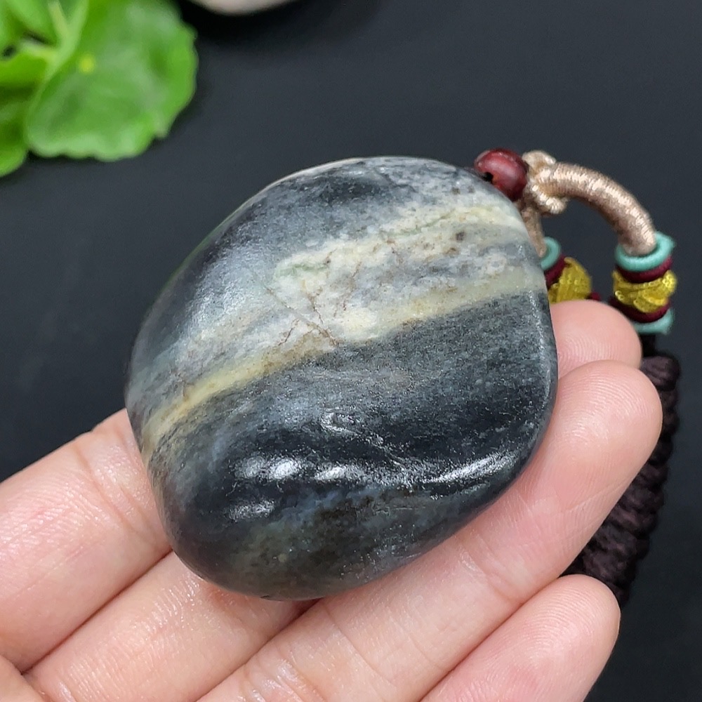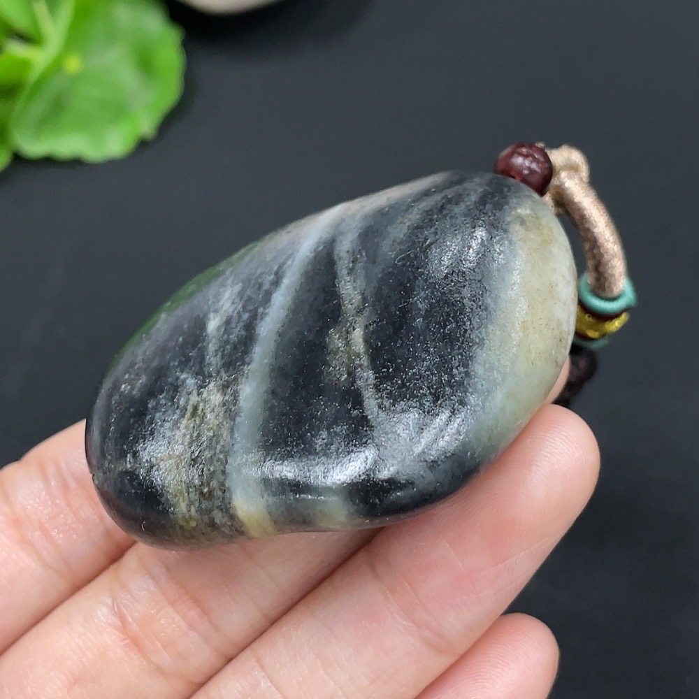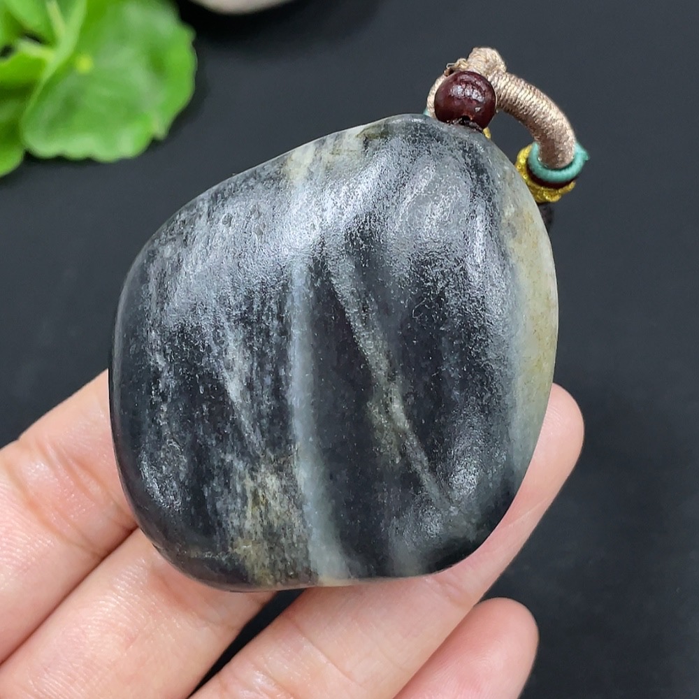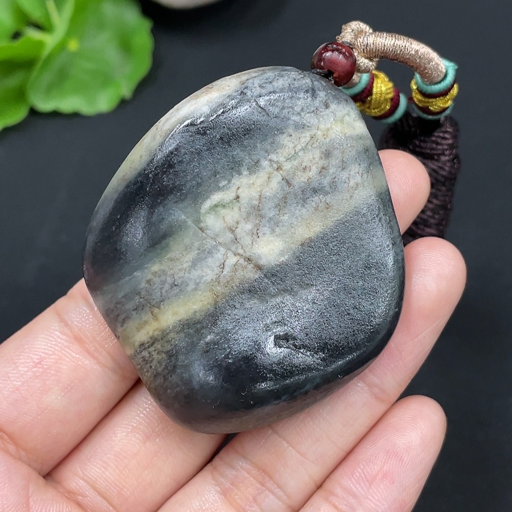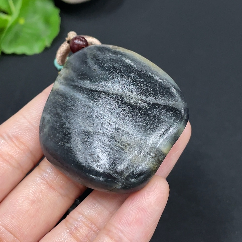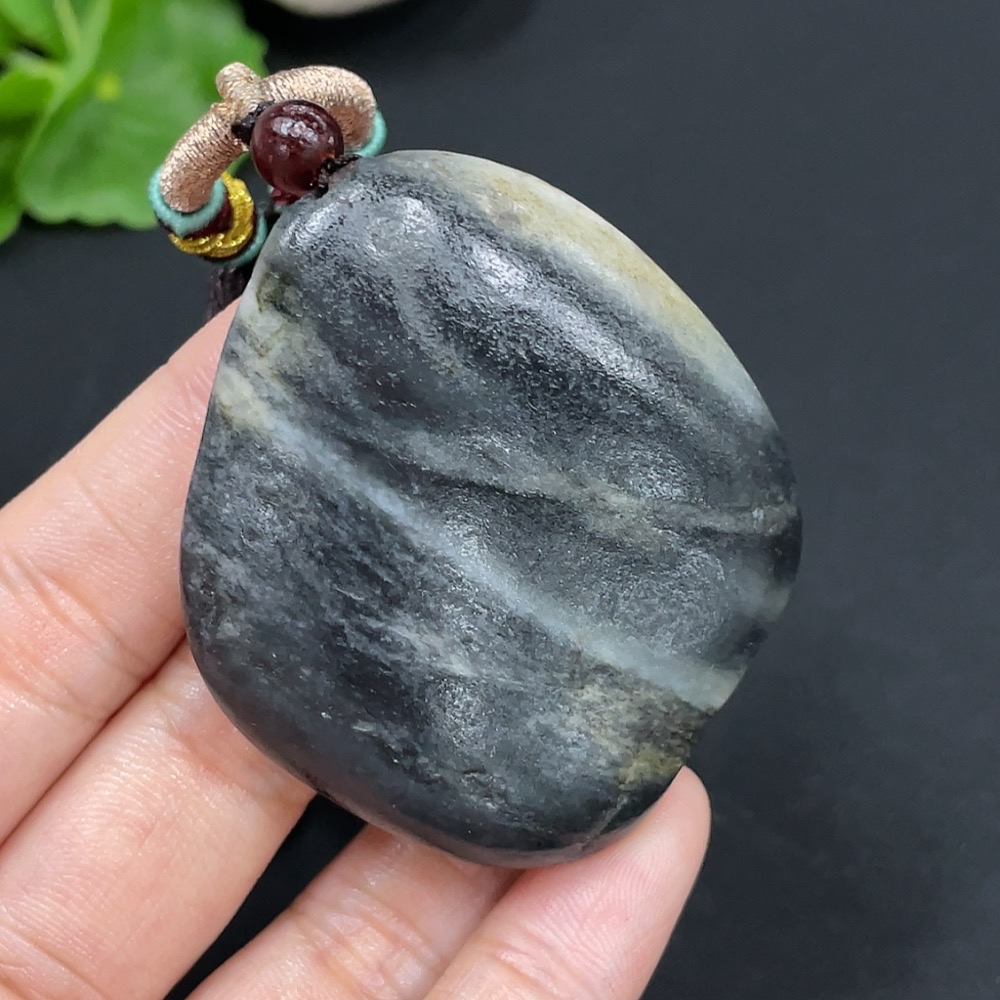 Hetian Jade Pendant, Undetermined Skin Color Origin, Containing Other Mineral Components, Total Weight Approximately (Including String) 57.8g