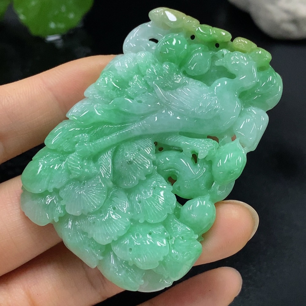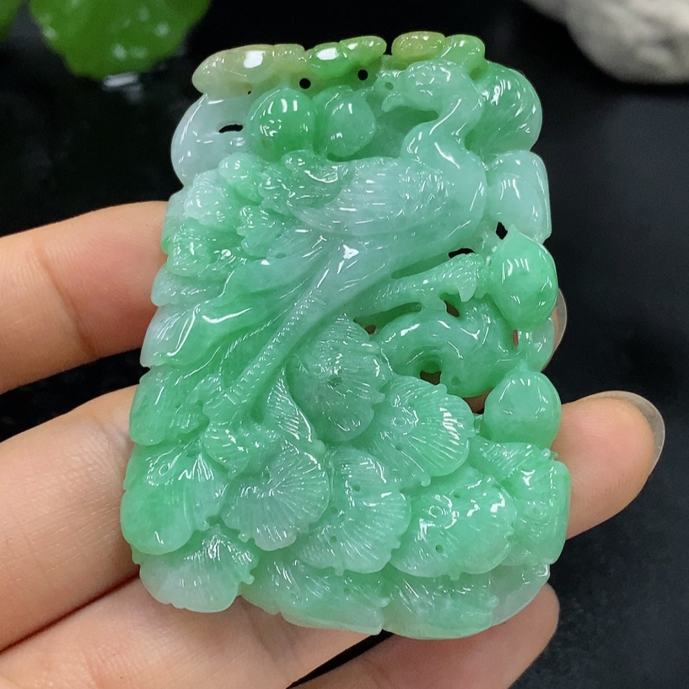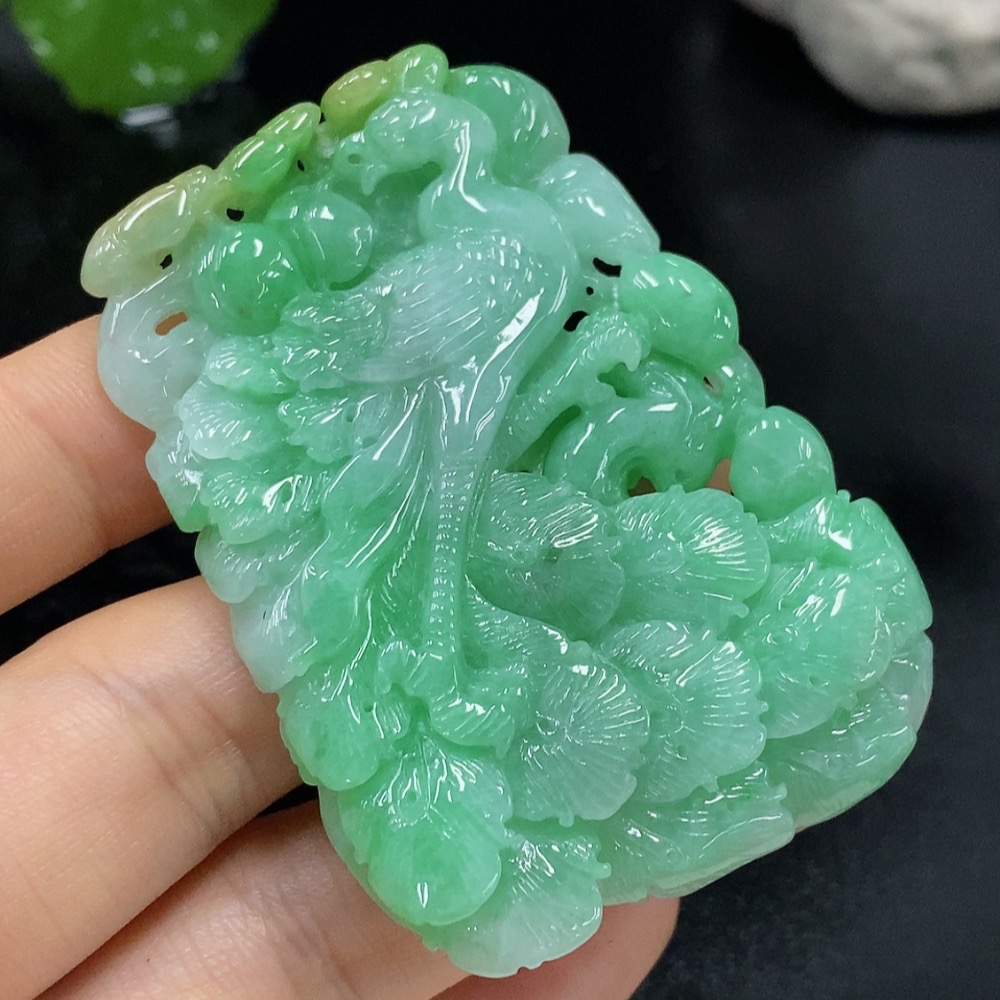 Jadeite Peacock Pendant Total Weight Approx. 38.77g Color Origin Undetermined