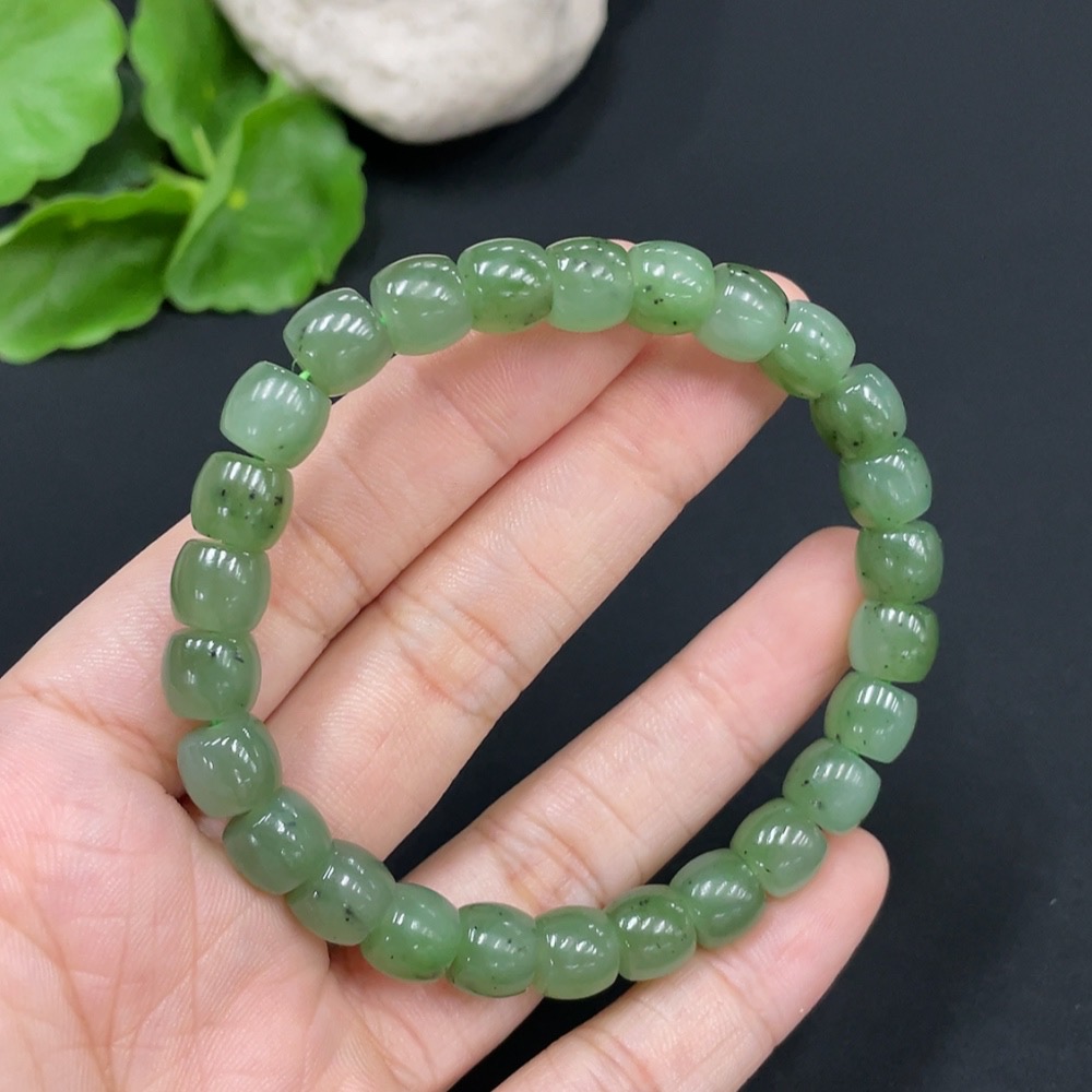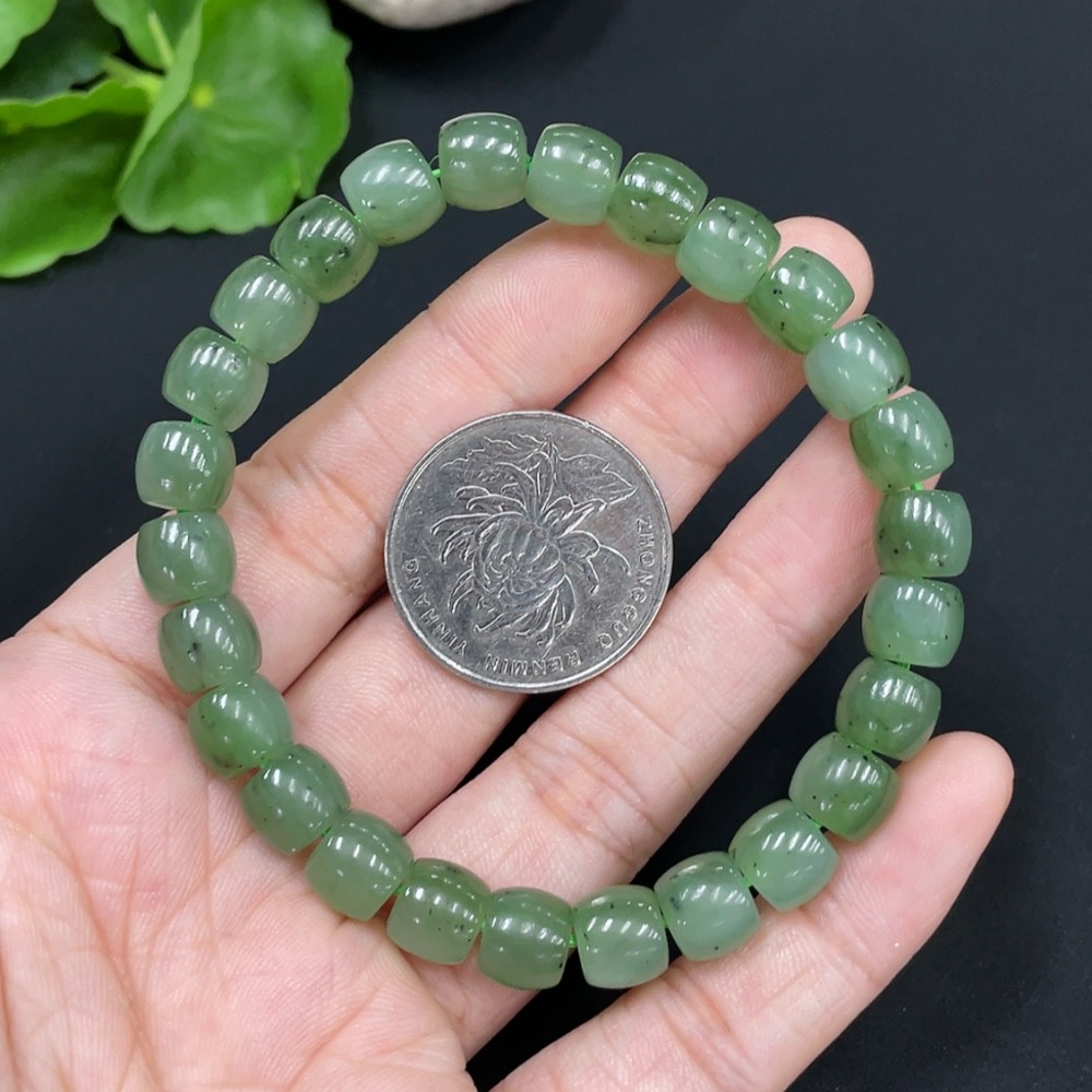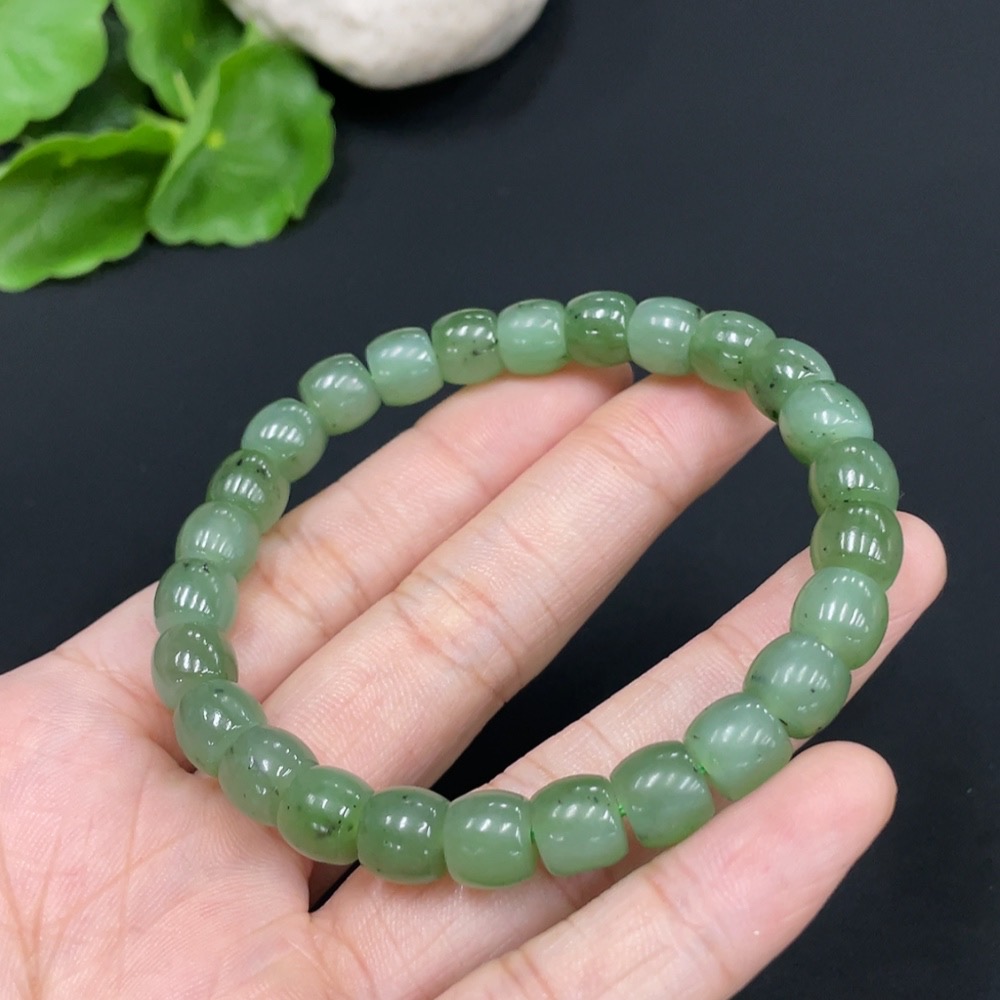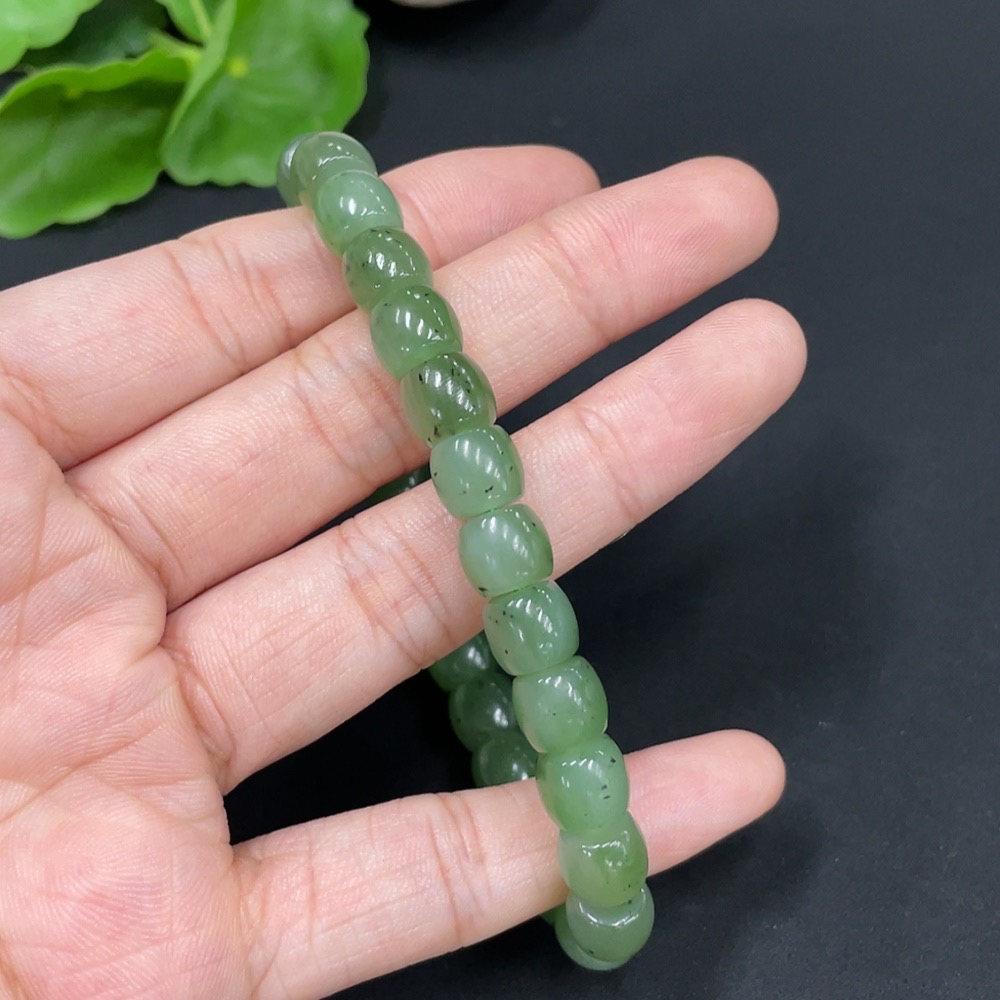 Hetian Jade Beaded Bracelet, Approx. 7.8mm, Total Weight Approx. 23.3g