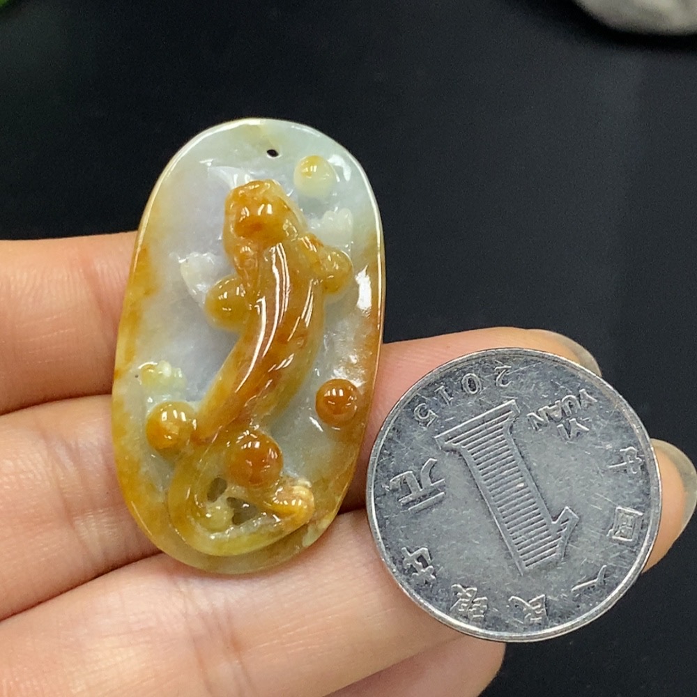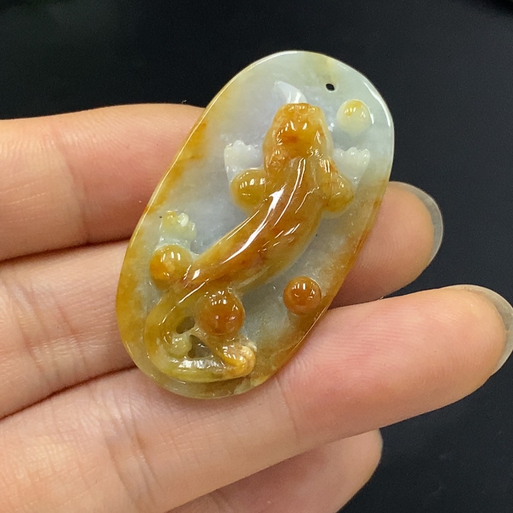 Jadeite Pi Xiu Pendant, total weight about 11.1g, color origin undetermined