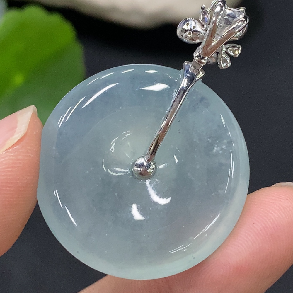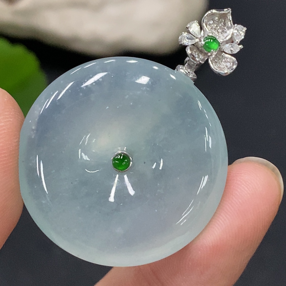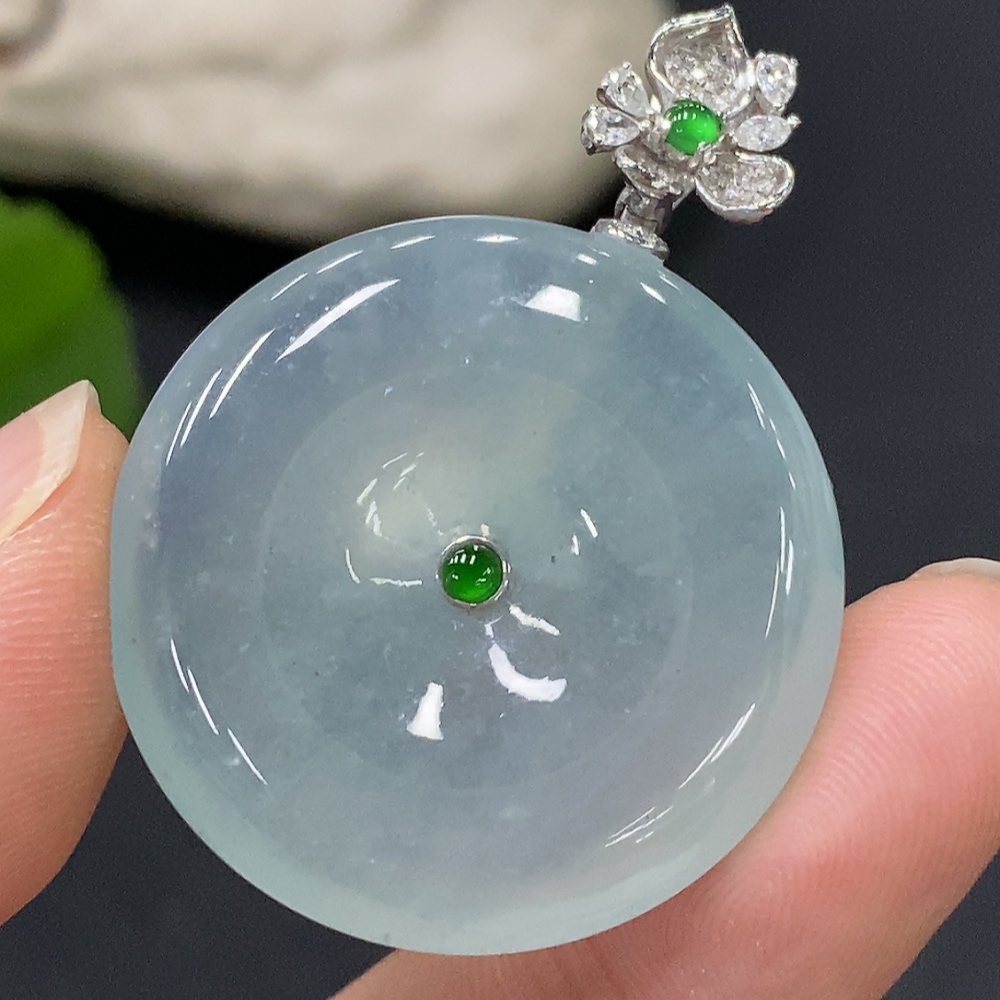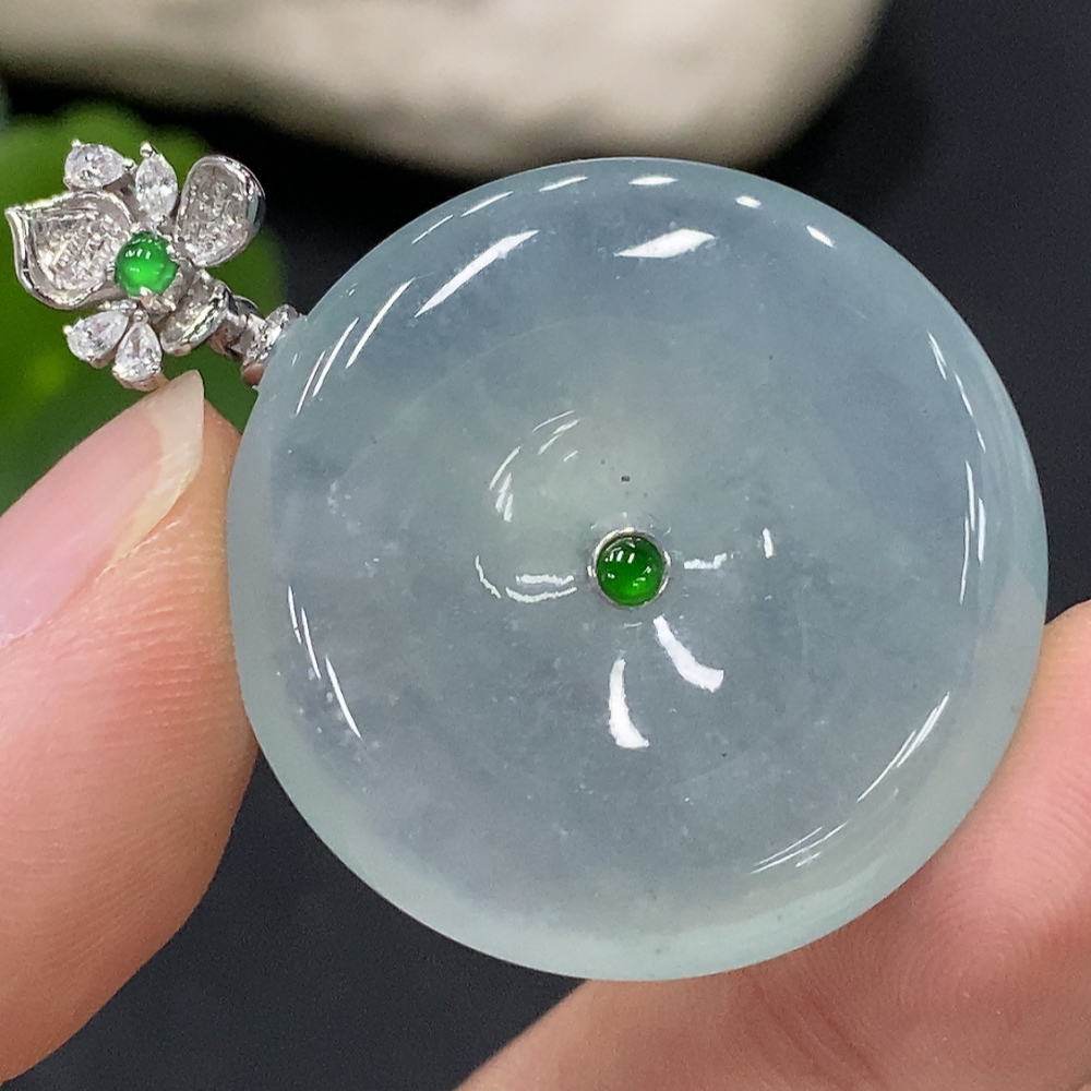 Jadeite Pendant Peace Buckle with 18K Gold and Diamond Accents, Total Weight Approx. 11.61g