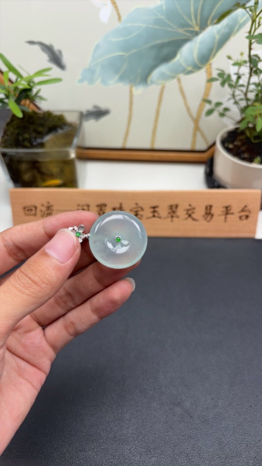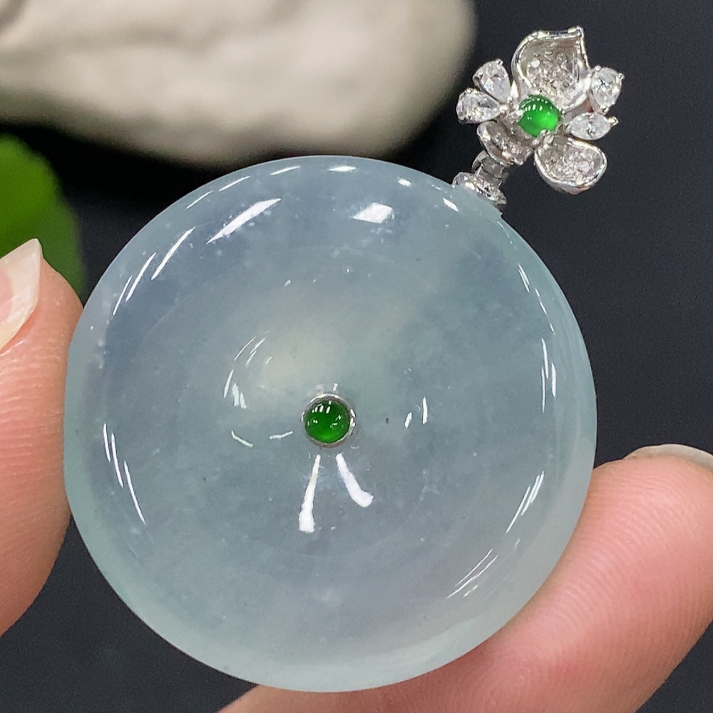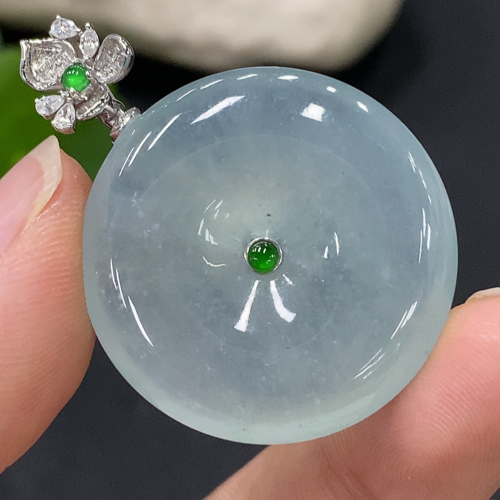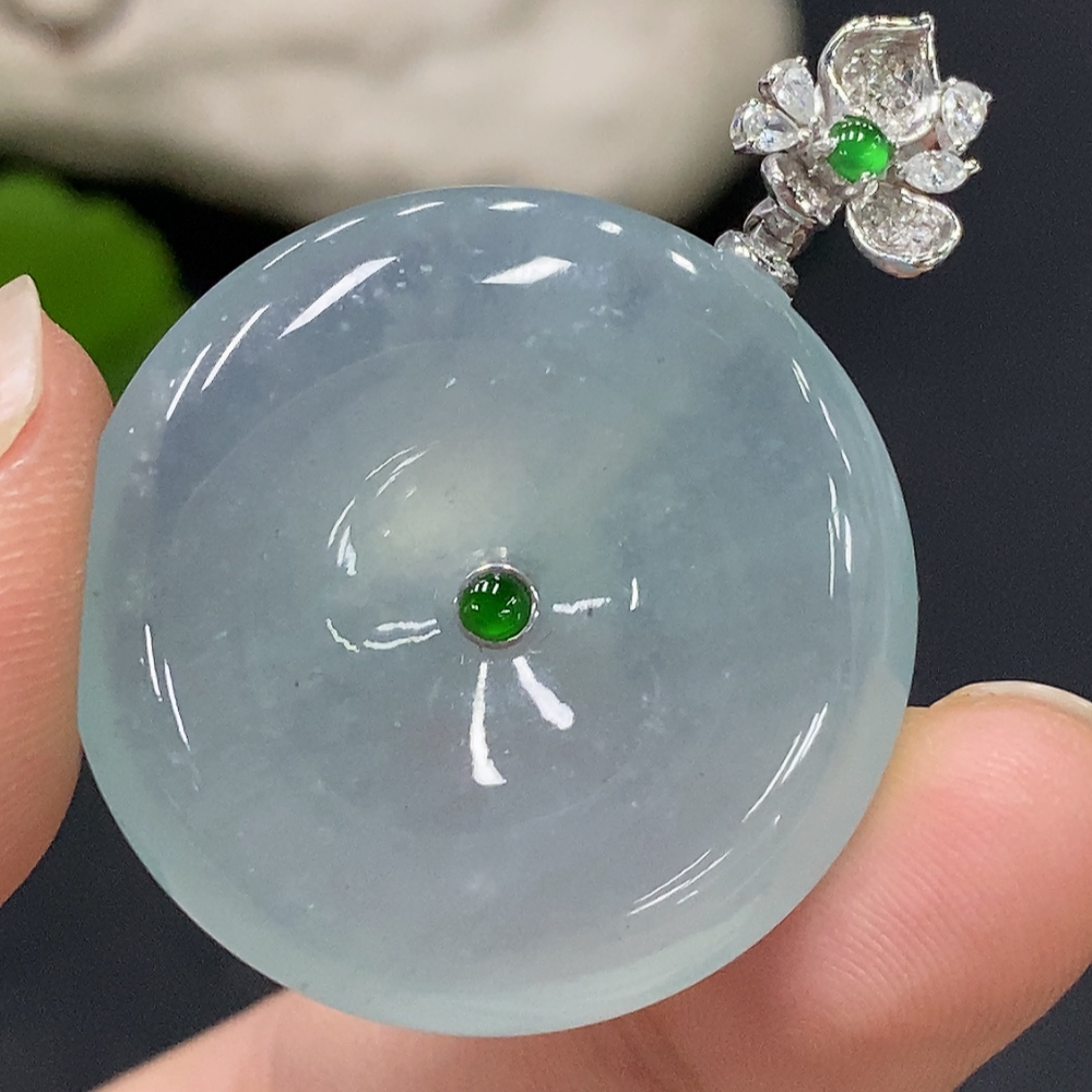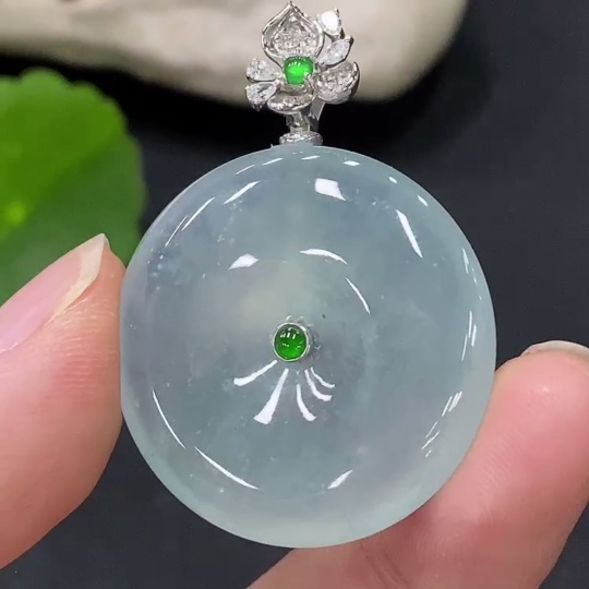 Jadeite Pendant Peace Buckle with 18K Gold and Diamond Accents, Total Weight Approx. 11.61g