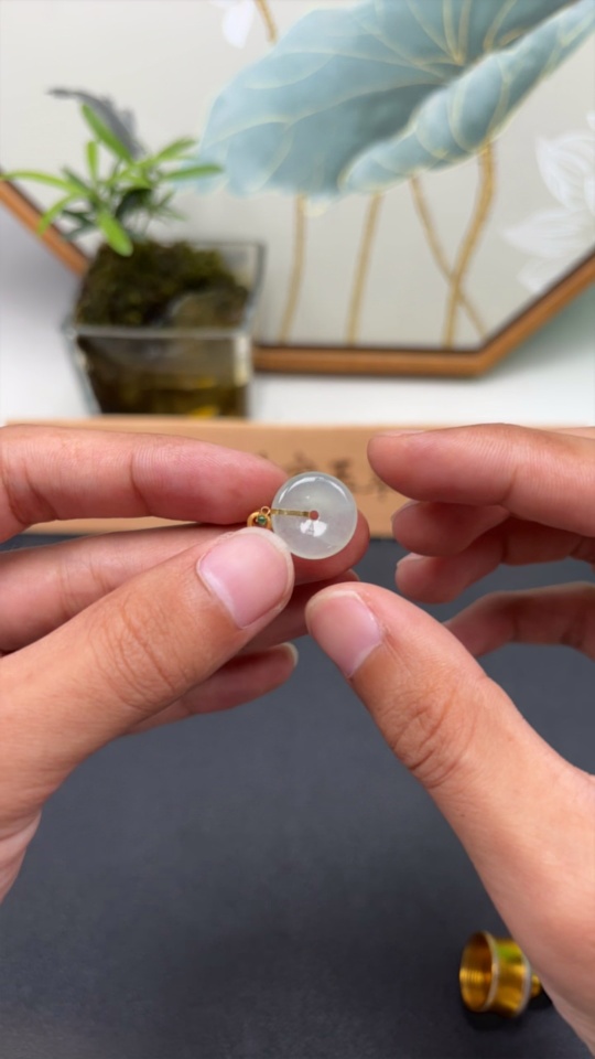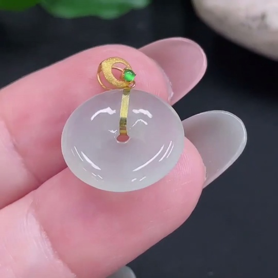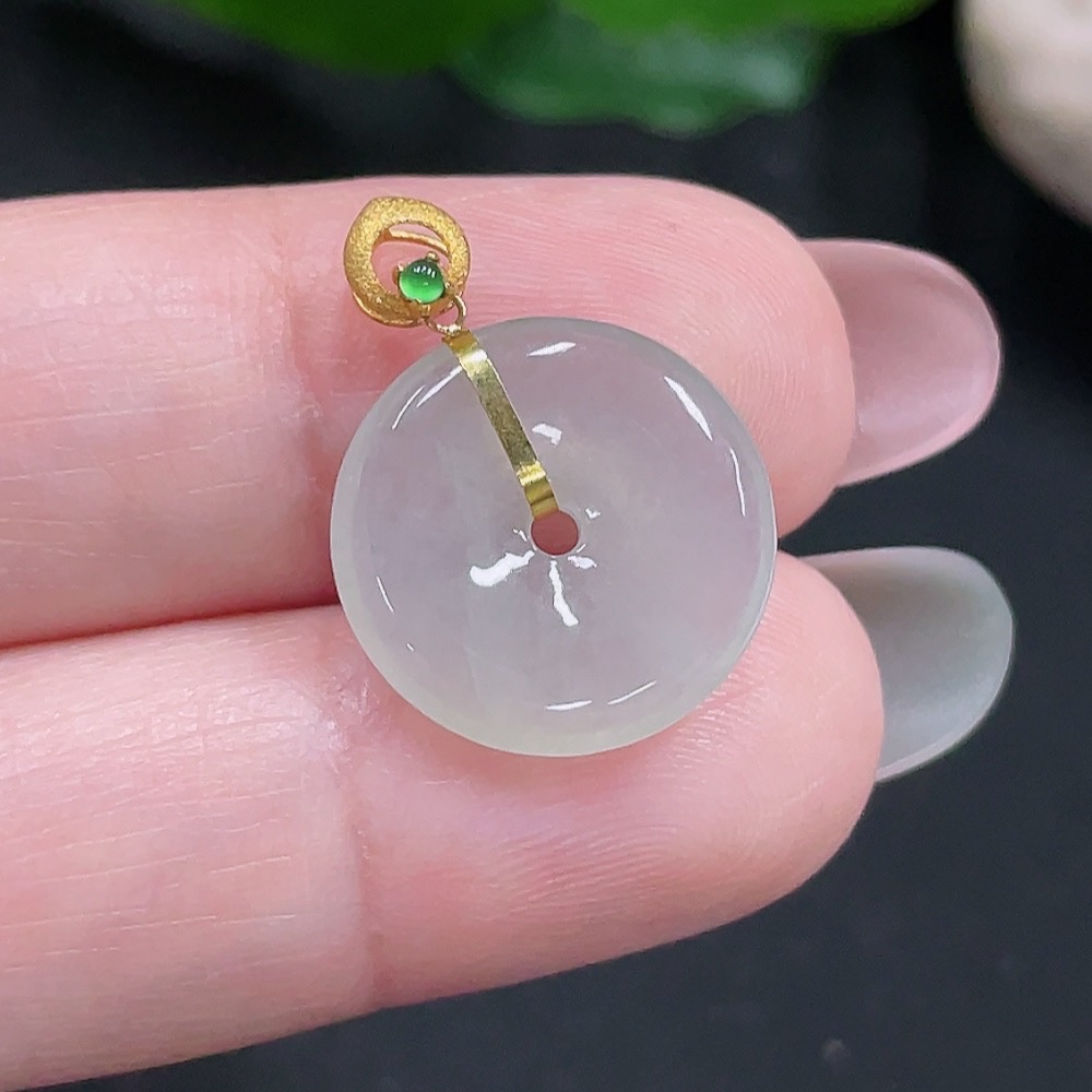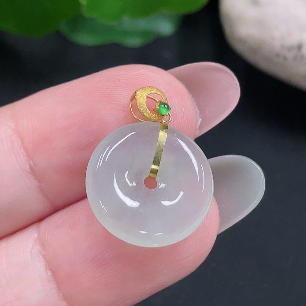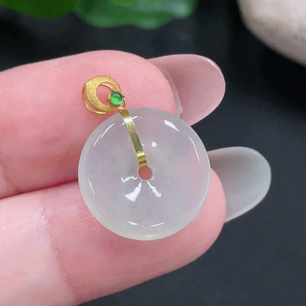 Jadeite Safety Buckle Pendant with 18K Gold, Total Weight Approximately 1.5g