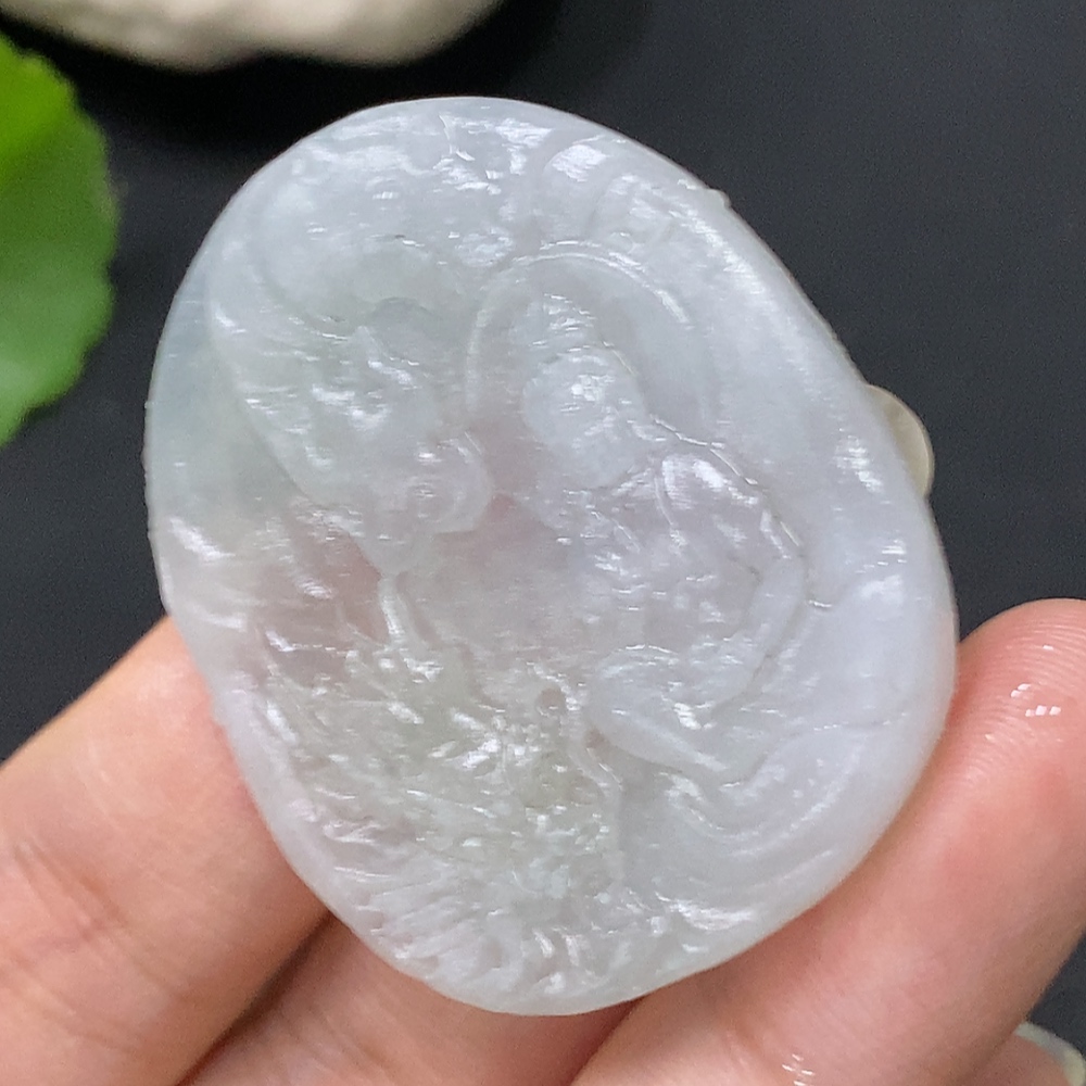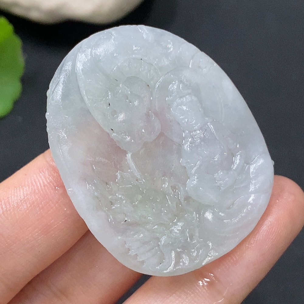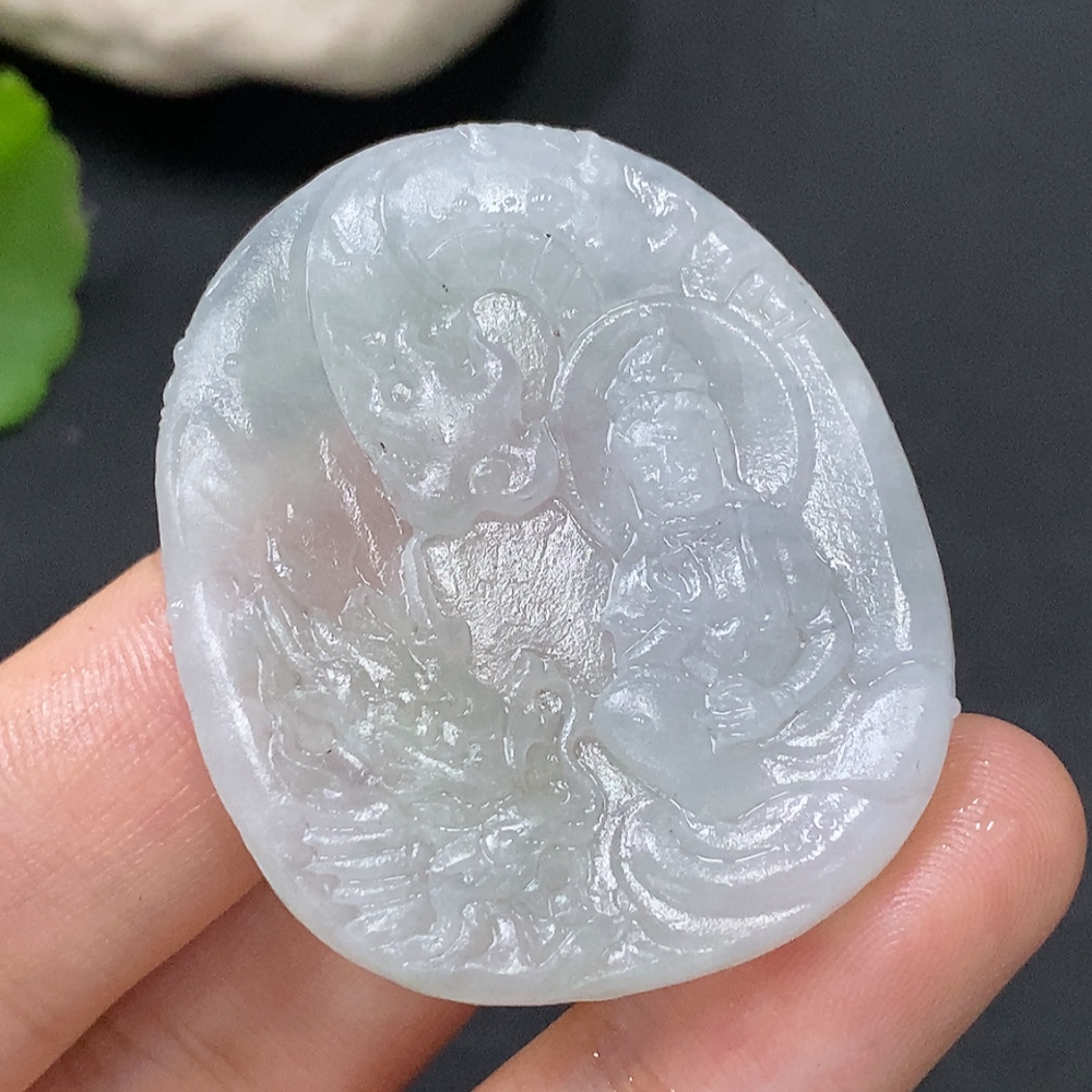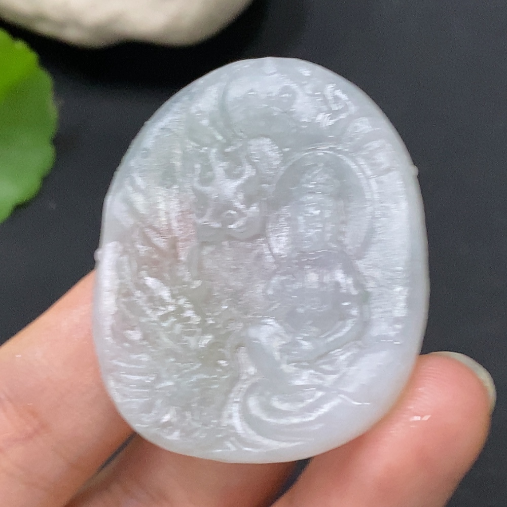Jadeite Pendant Imperial Dragon Guanyin Unpolished Total Weight Approx. 16.49g