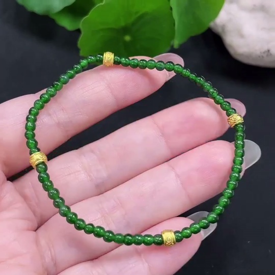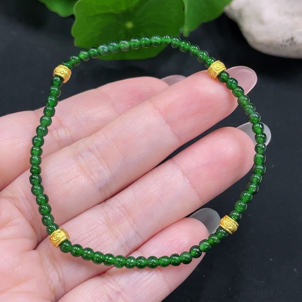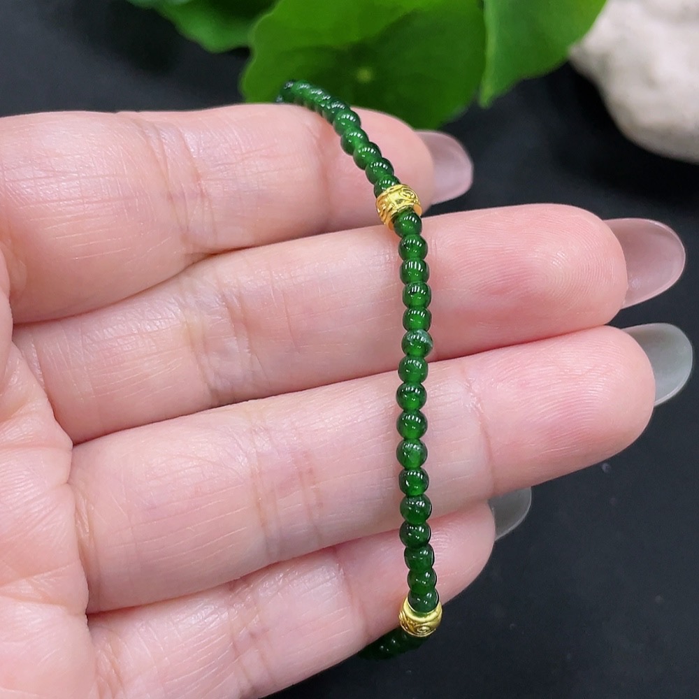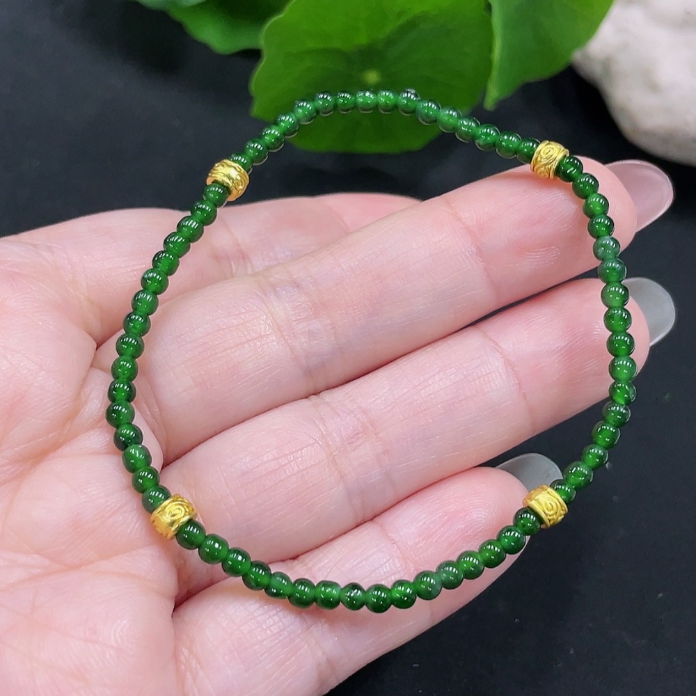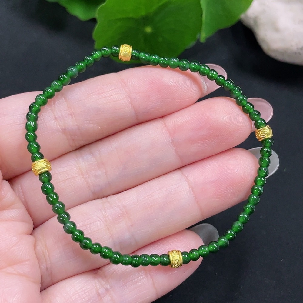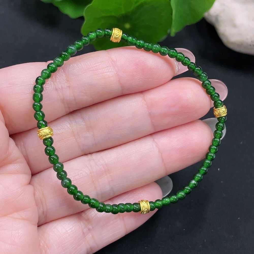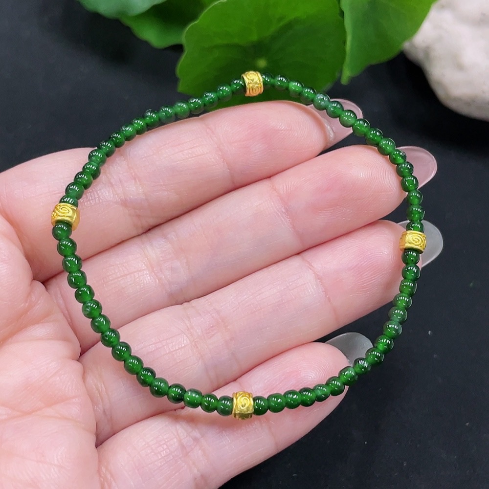 Jadeite Bracelet Approx. 3mm Beads Total Weight About 3.2g Non-Gold-Inlaid