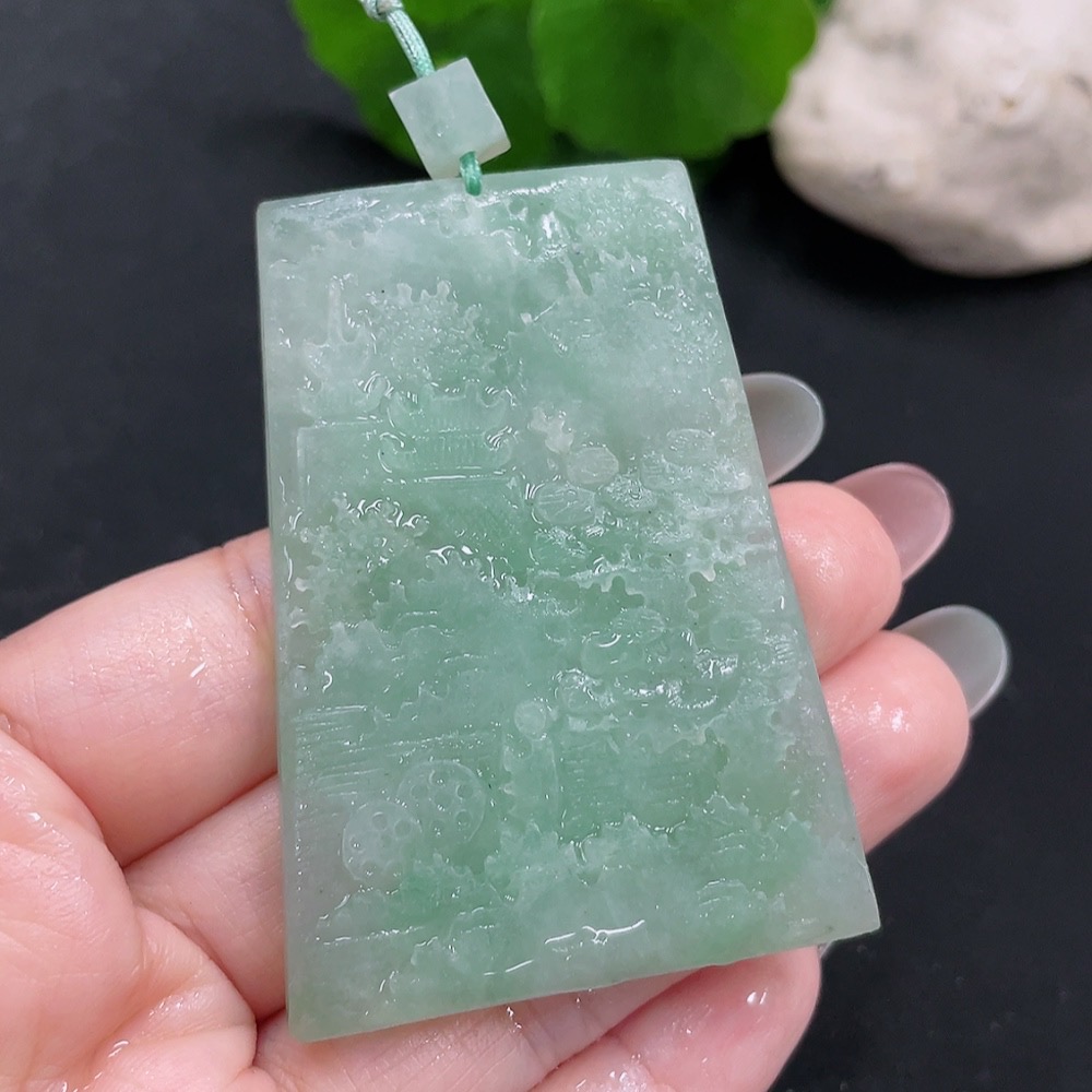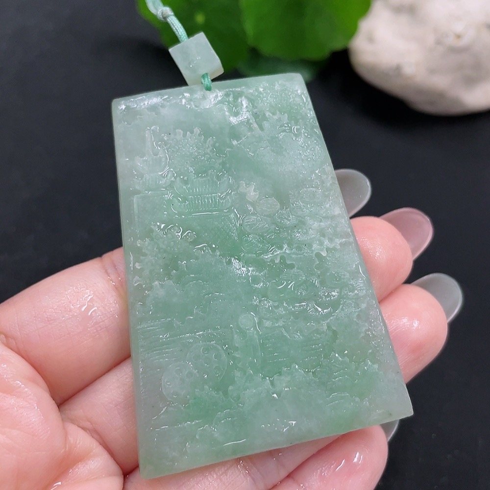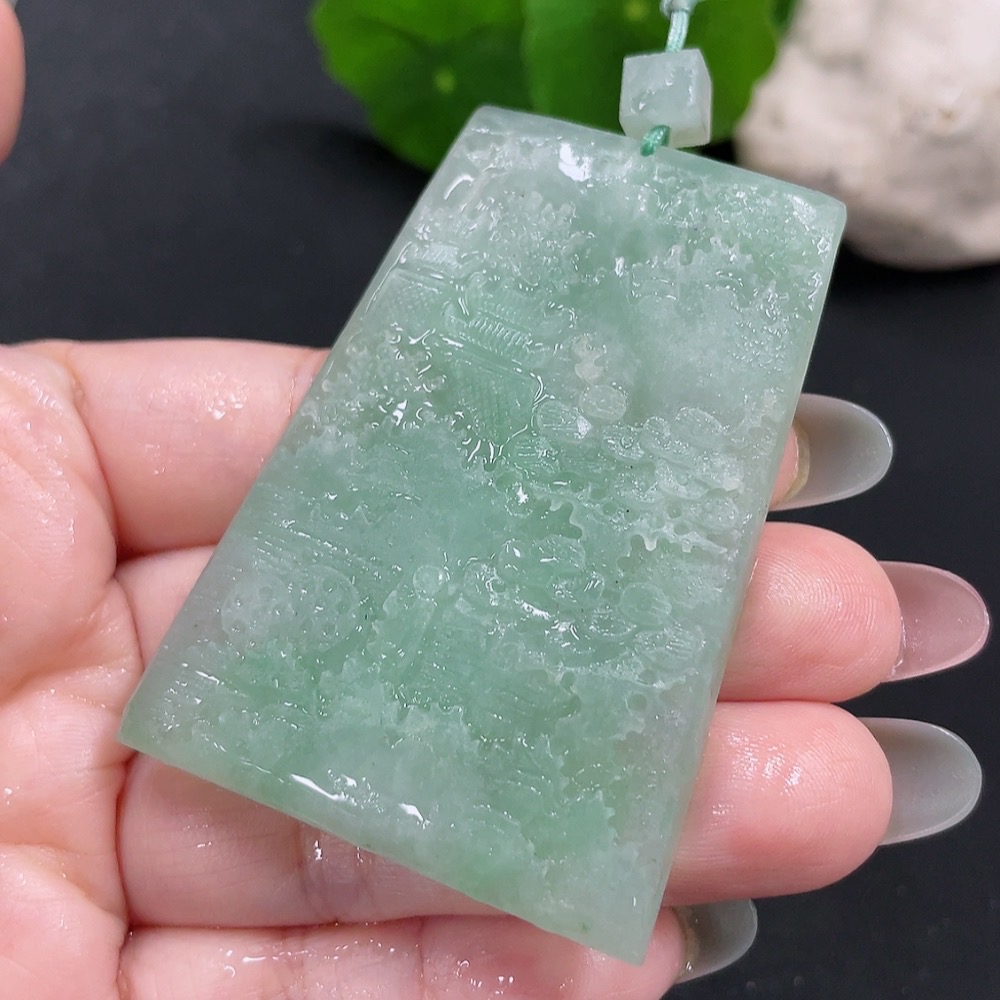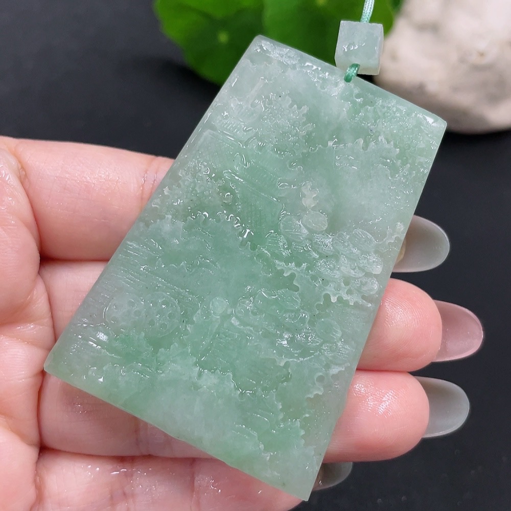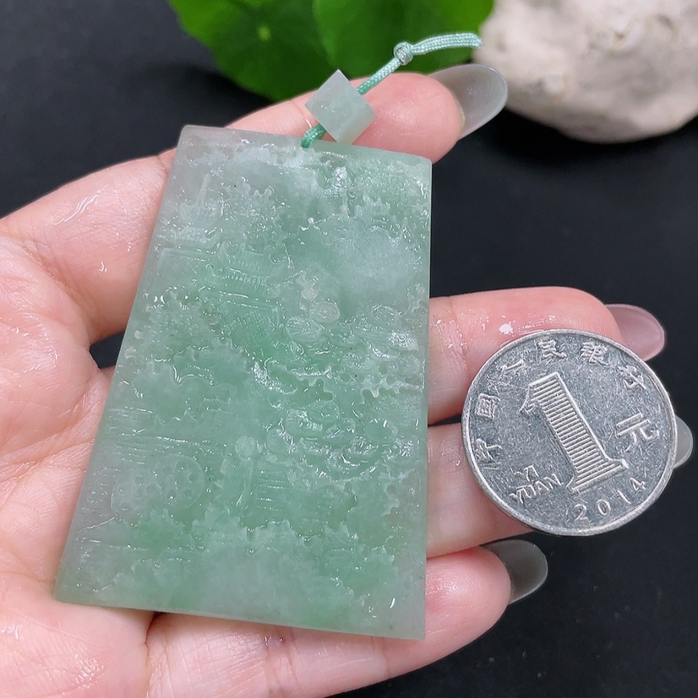 Jadeite Rough Landscape Pendant, Total Weight Approx. 39.9g