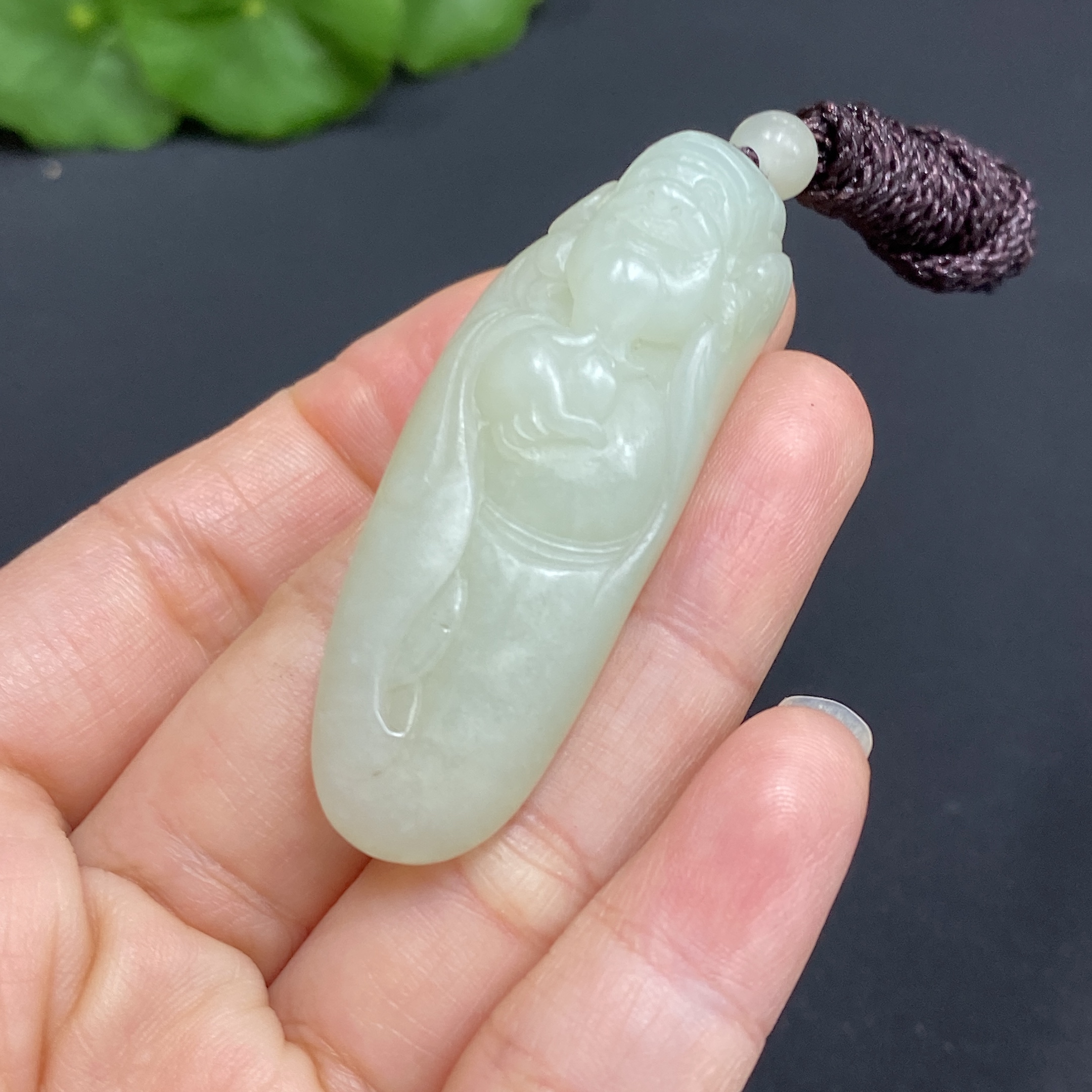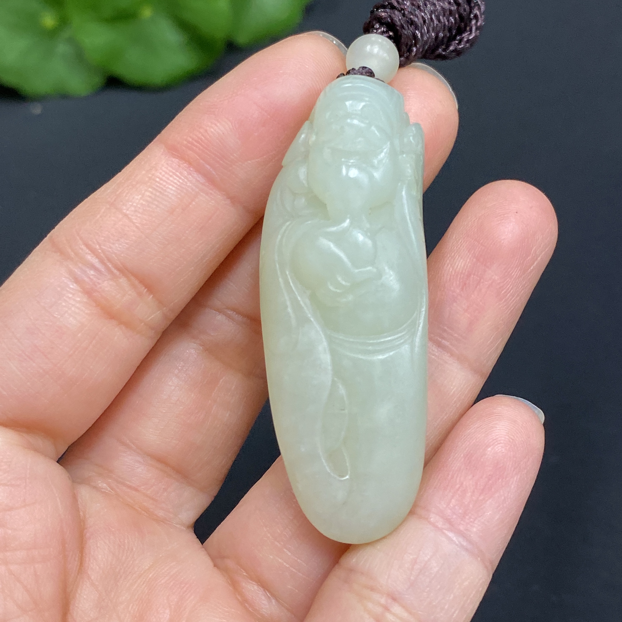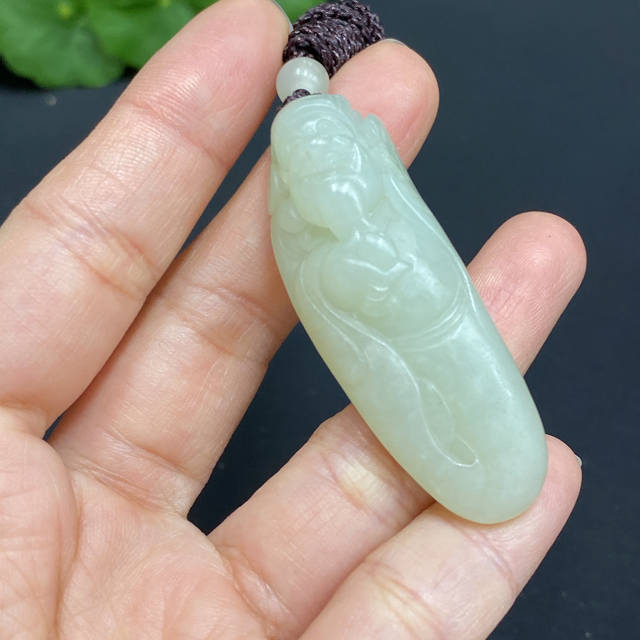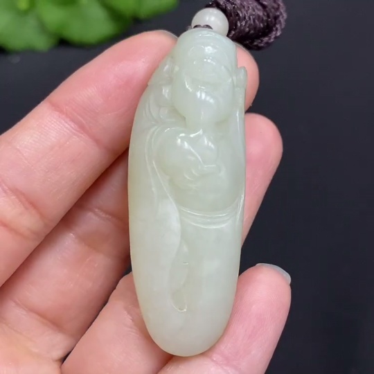 Hetian Jade Pendant God of Wealth Total Weight (including rope): approx. 18.5g Undetermined skin color origin