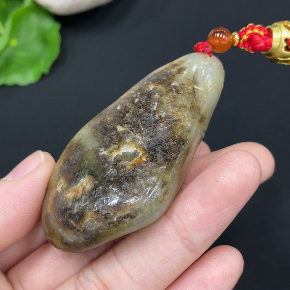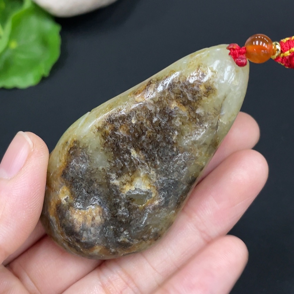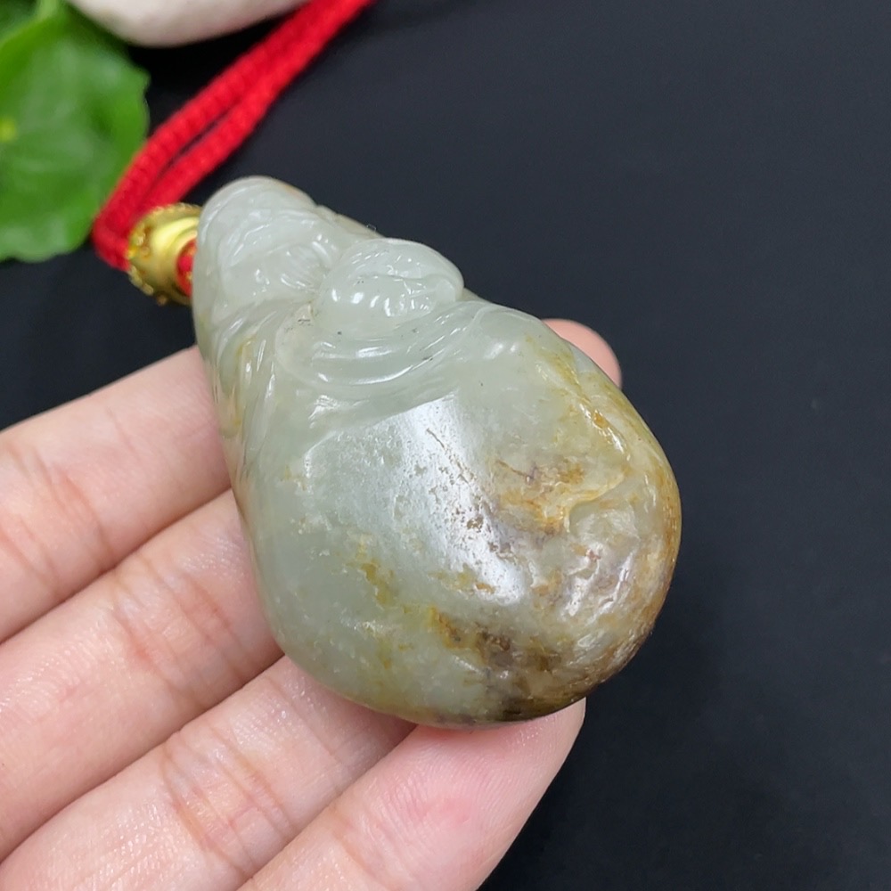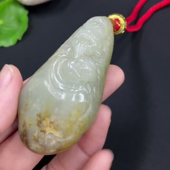 Hetian Jade Seed Material Pendant - God of Wealth - Undetermined Skin Color Origin - Total Weight (Including Rope): 60.8g