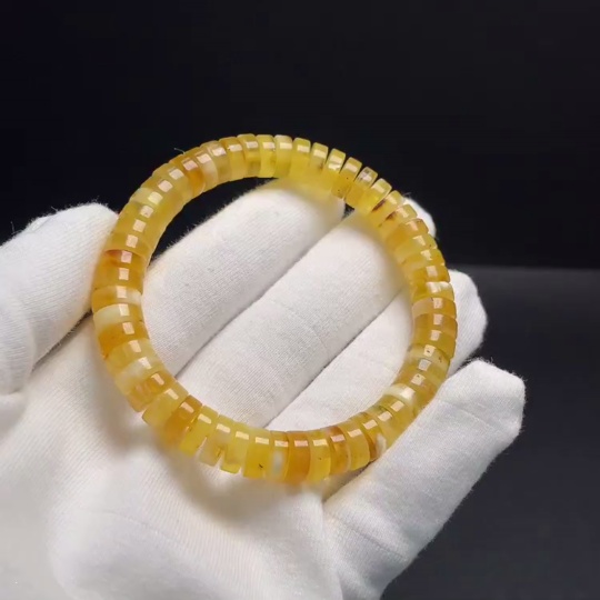 Amber Beeswax Beaded Bracelet Approx. 8.6mm Total Weight Approx. 10.80g